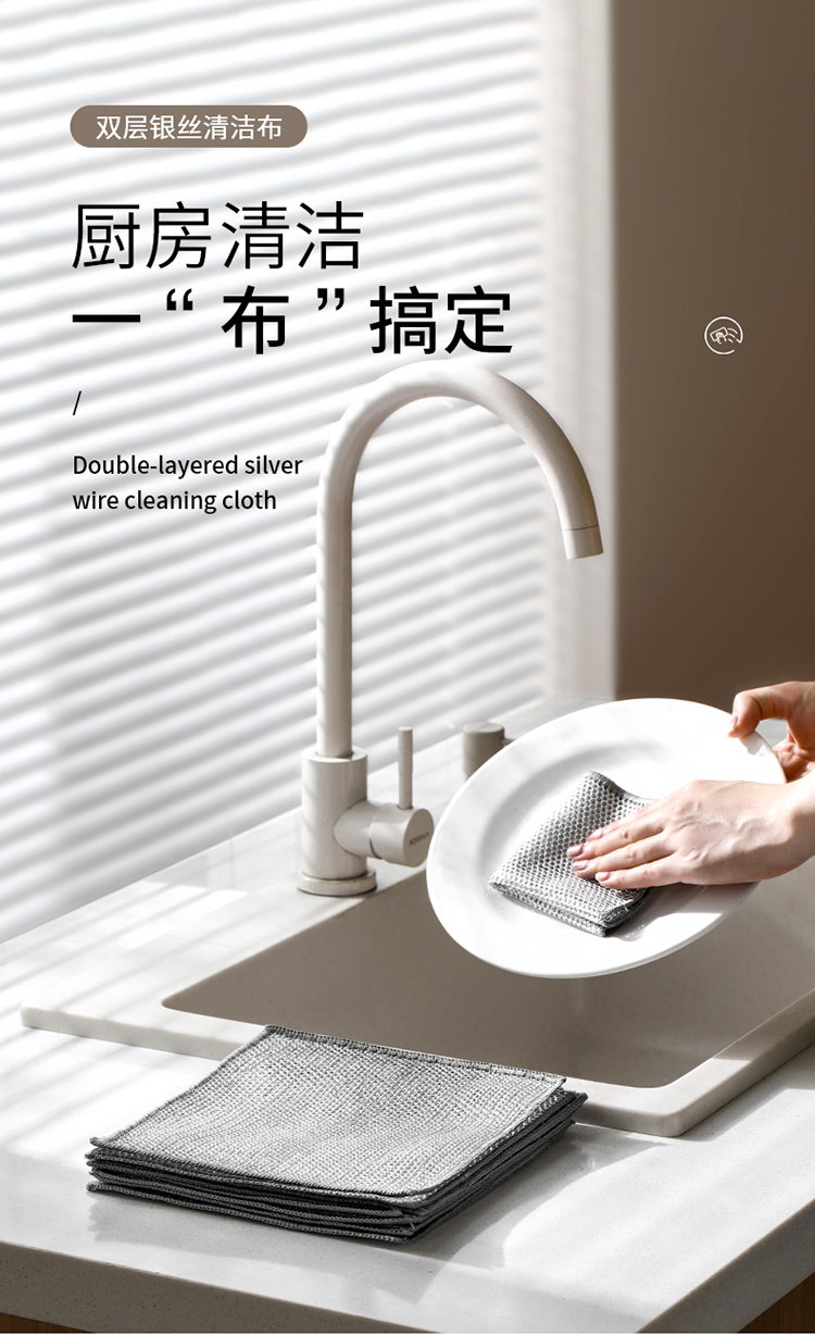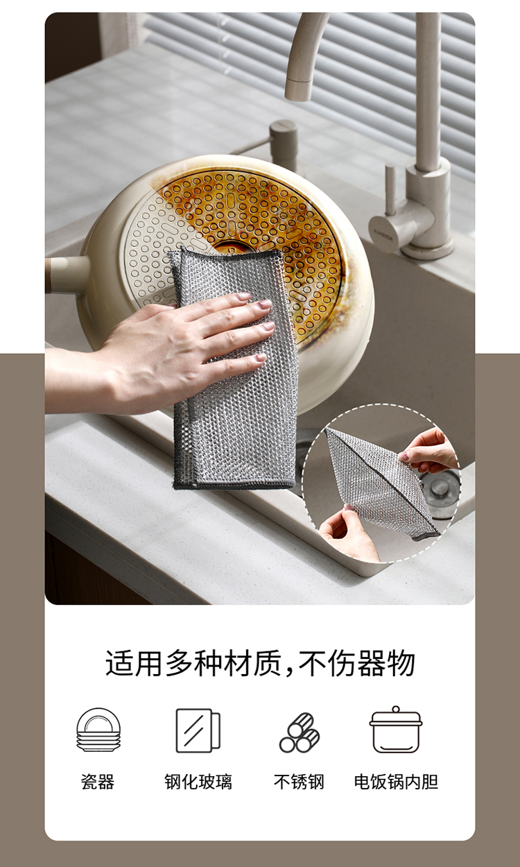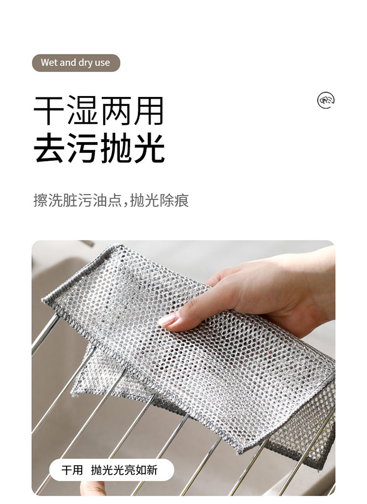 FaSoLa钢丝洗碗布不沾油钢丝球抹布厨房专用金属丝清洁布双面银丝