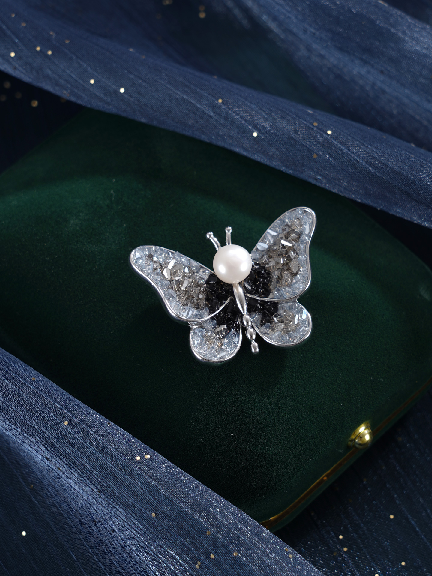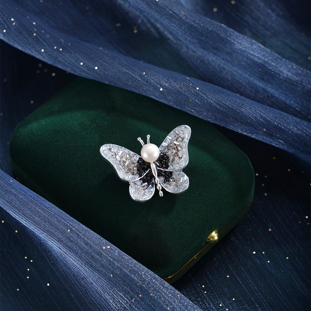 子佩集【蝴蝶沧海】珍珠惜王妃胸针【ZXXZ004】7.5mm珠黑蝶2601