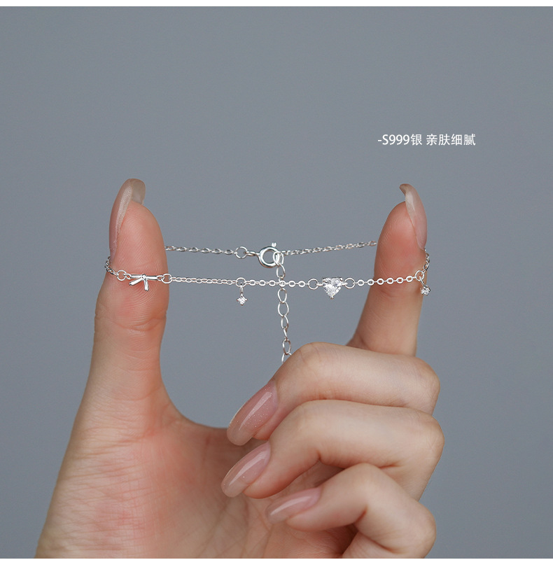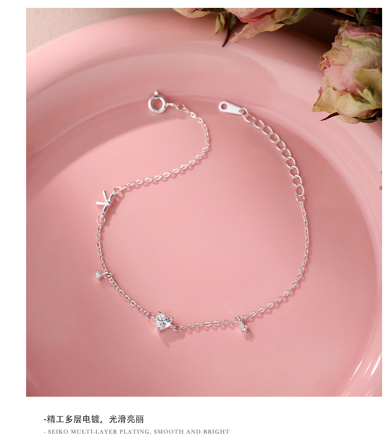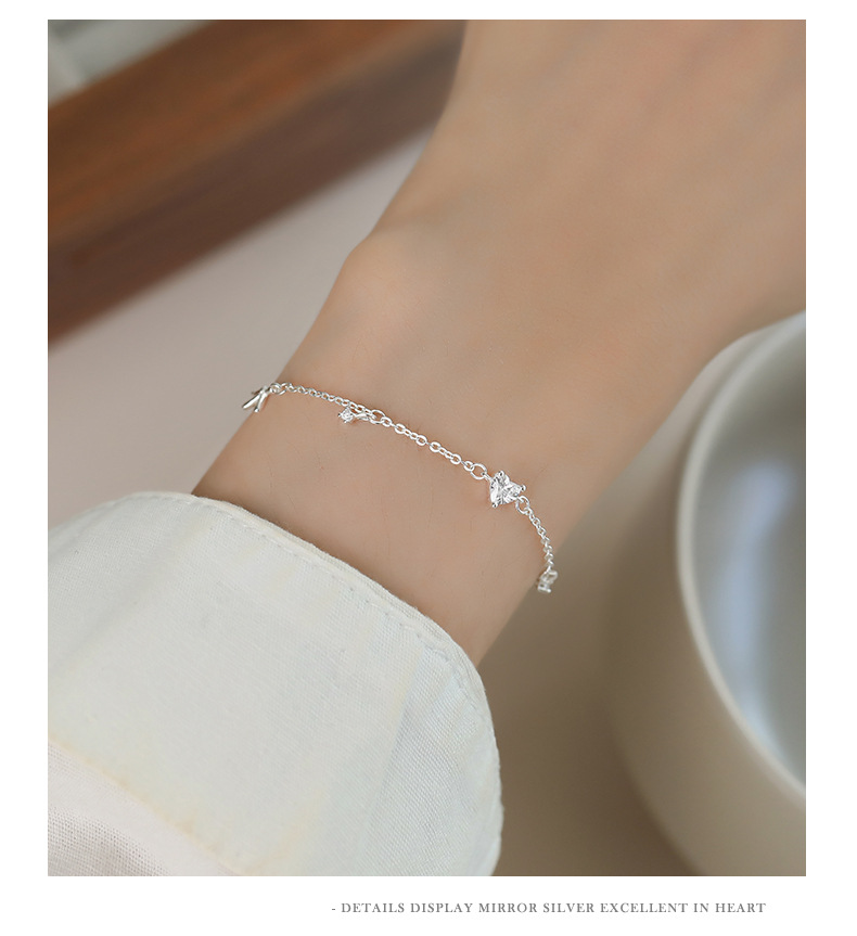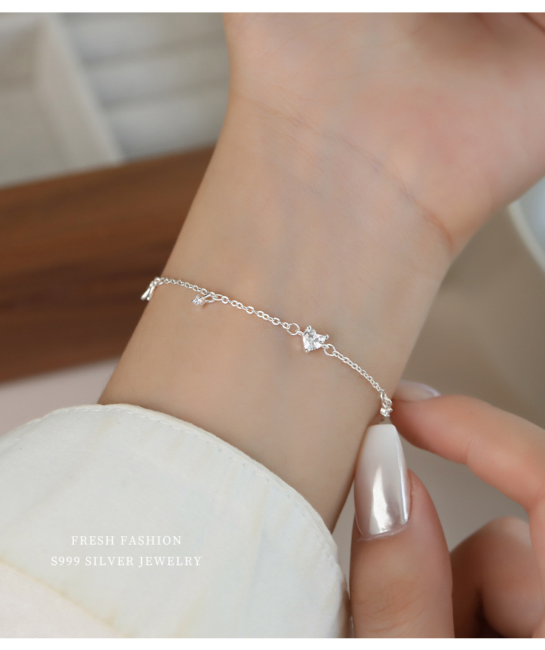 【简单爱】S999纯银锆石爱心手链【YXS-L1117】