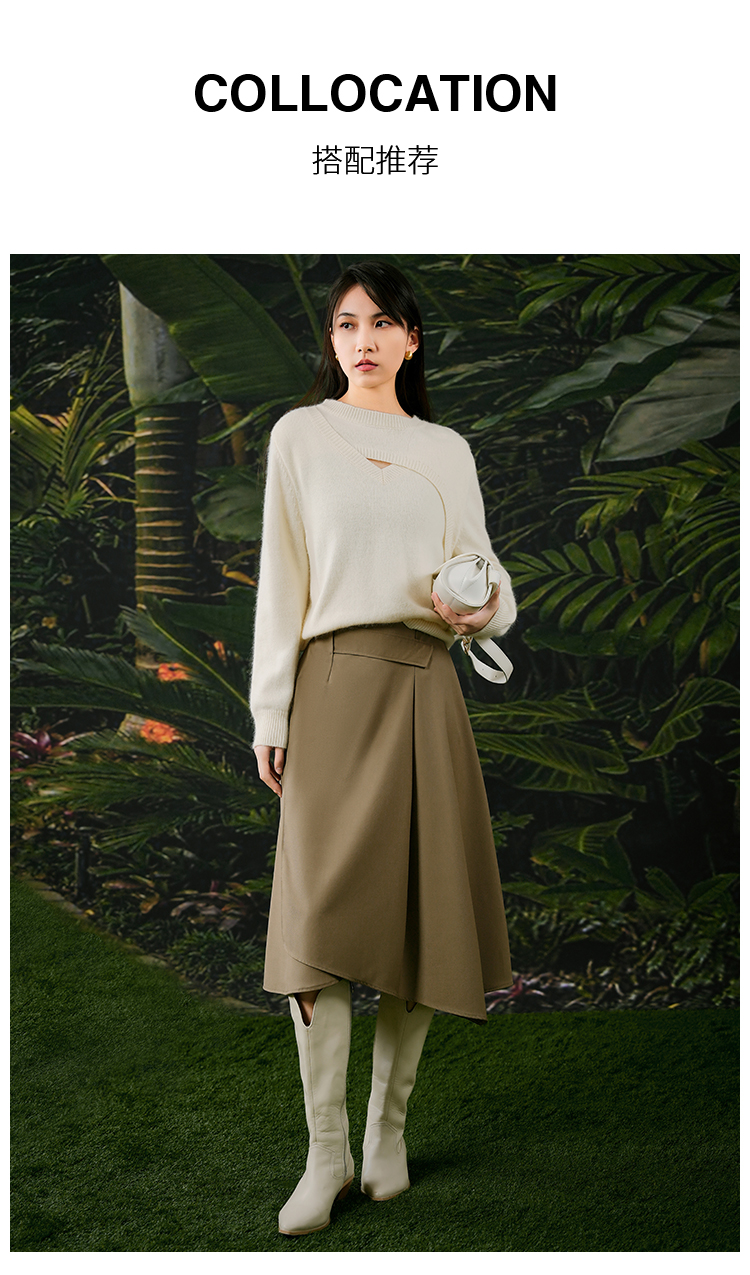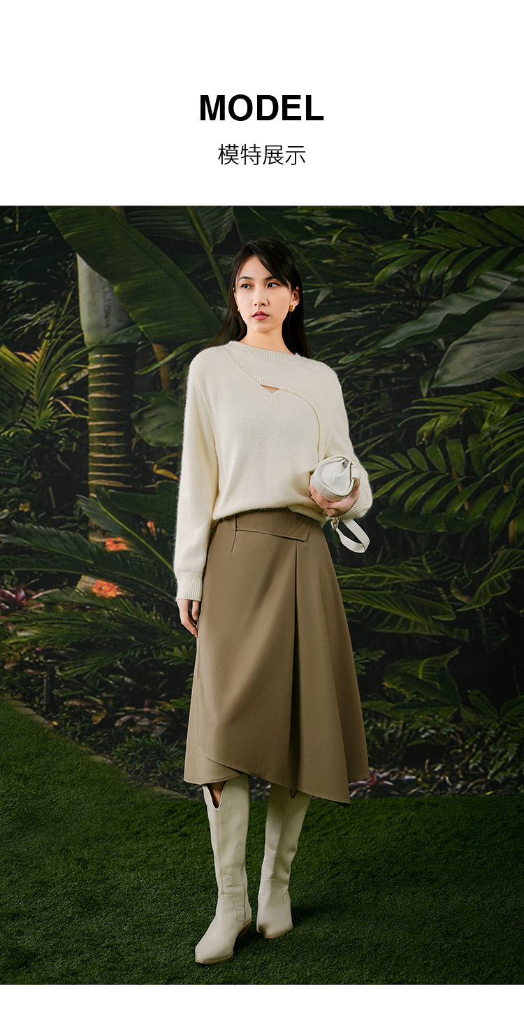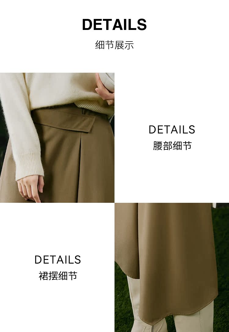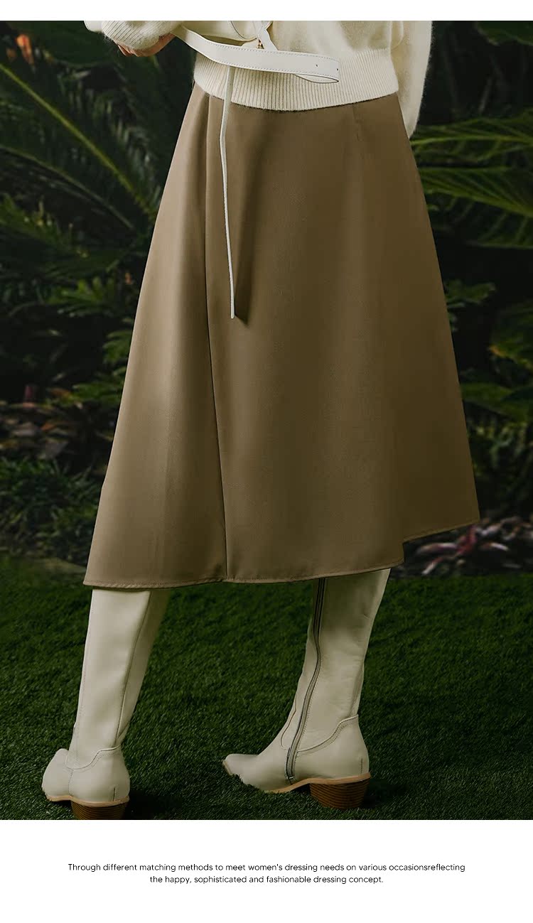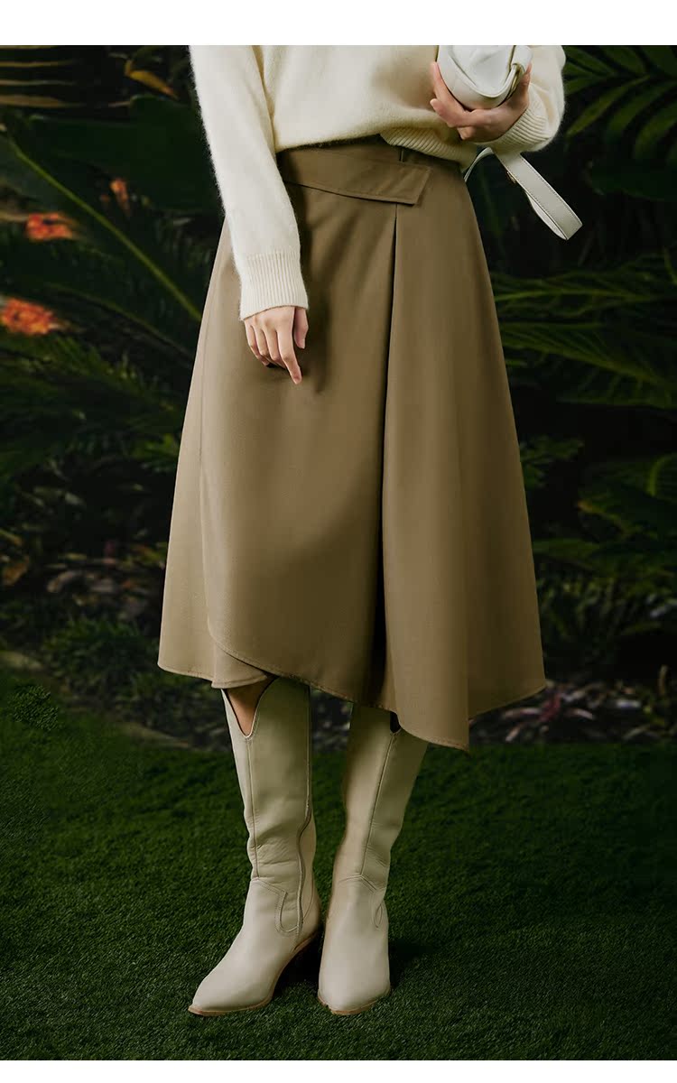 NUTS春秋季新款复古通勤高腰显瘦不规则中长款半身裙女411061012