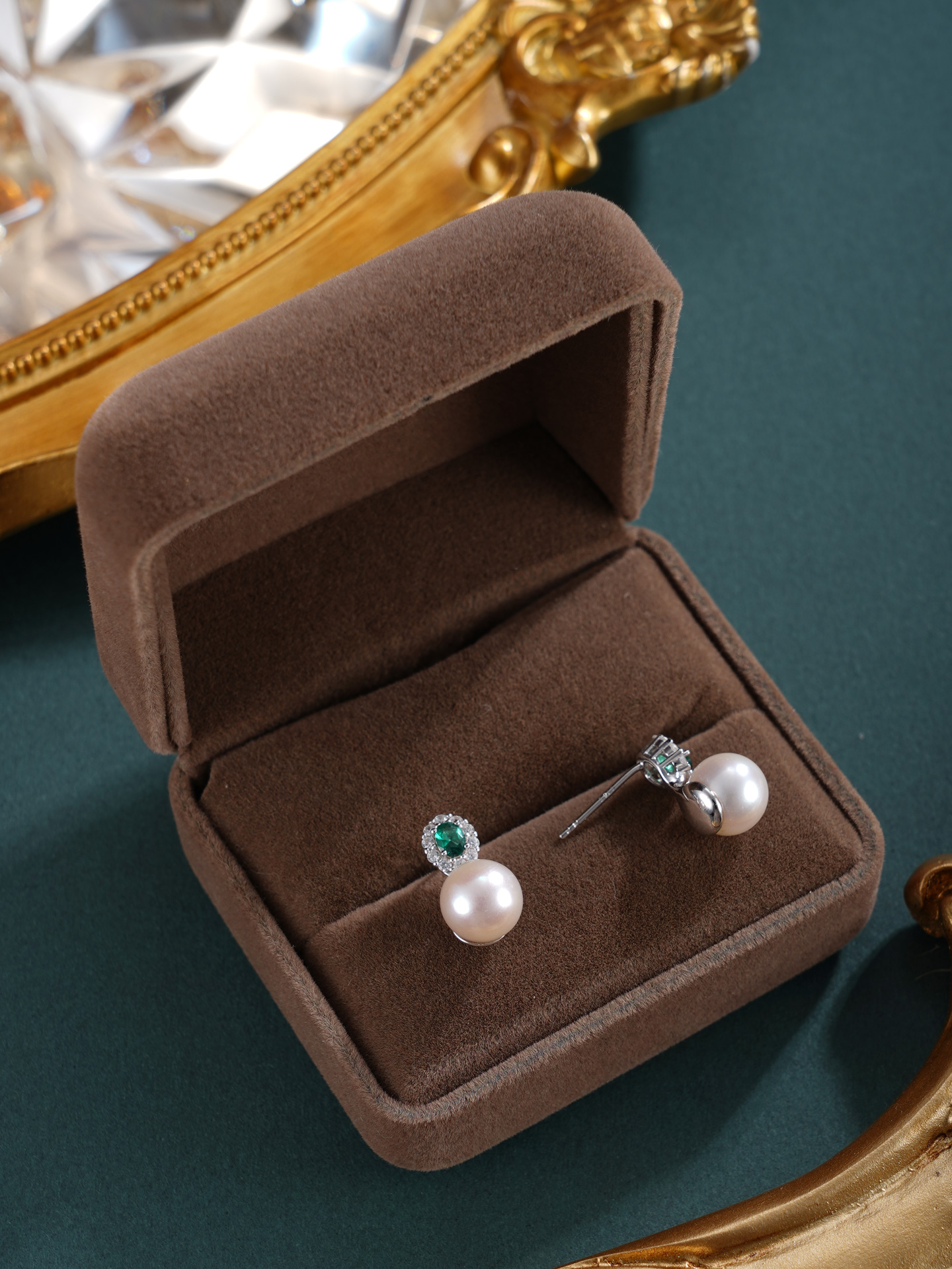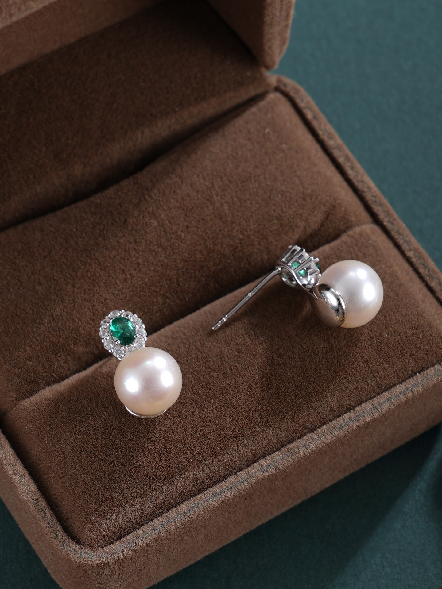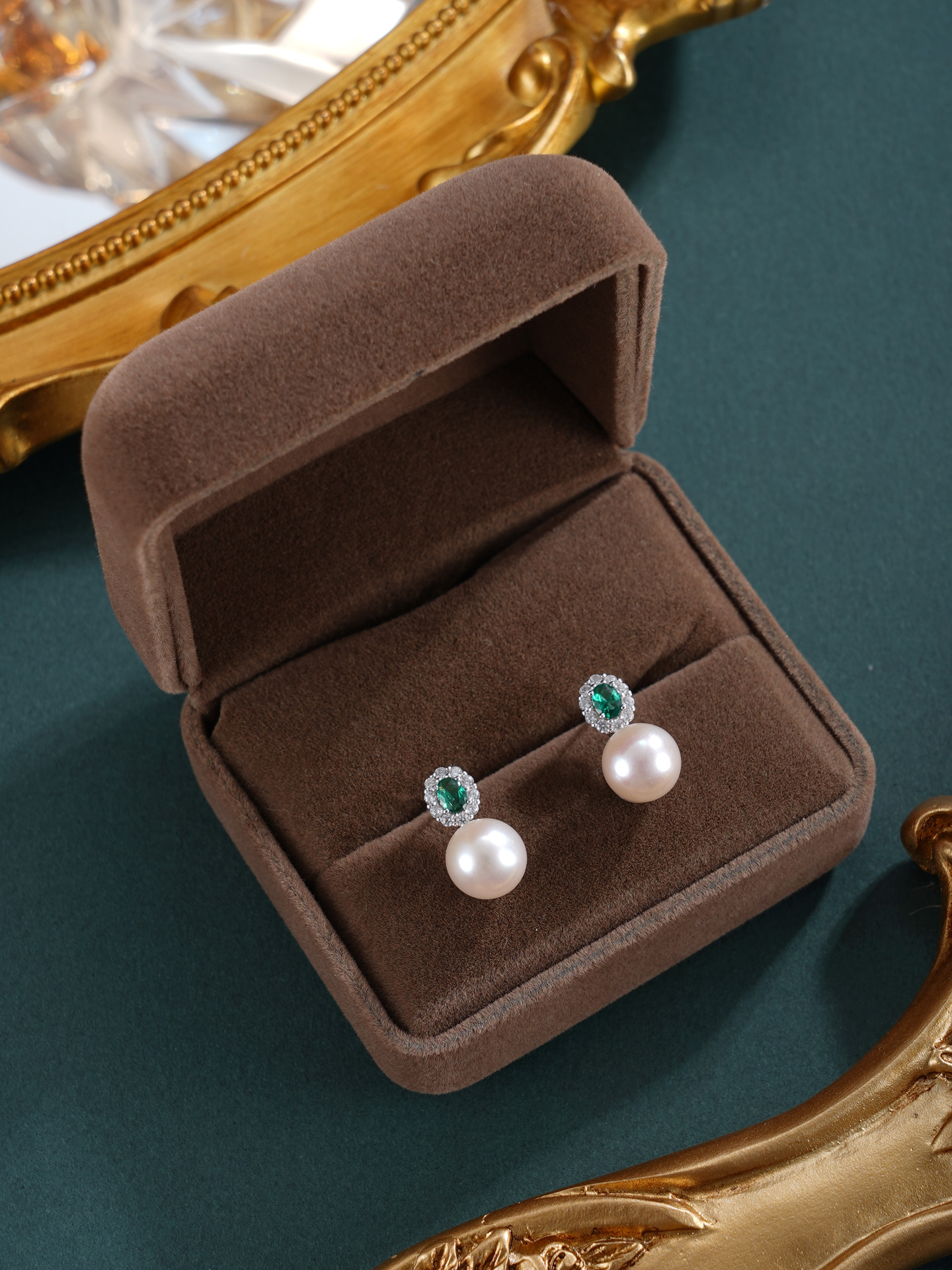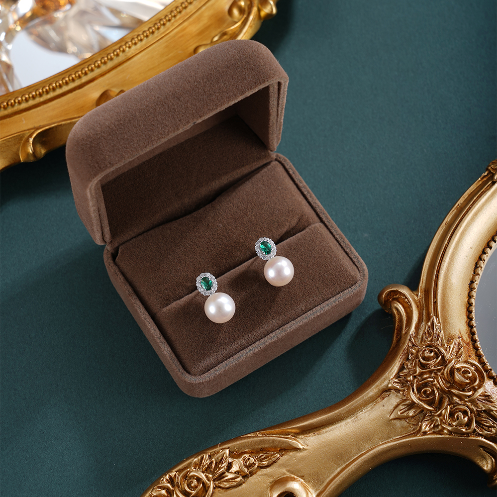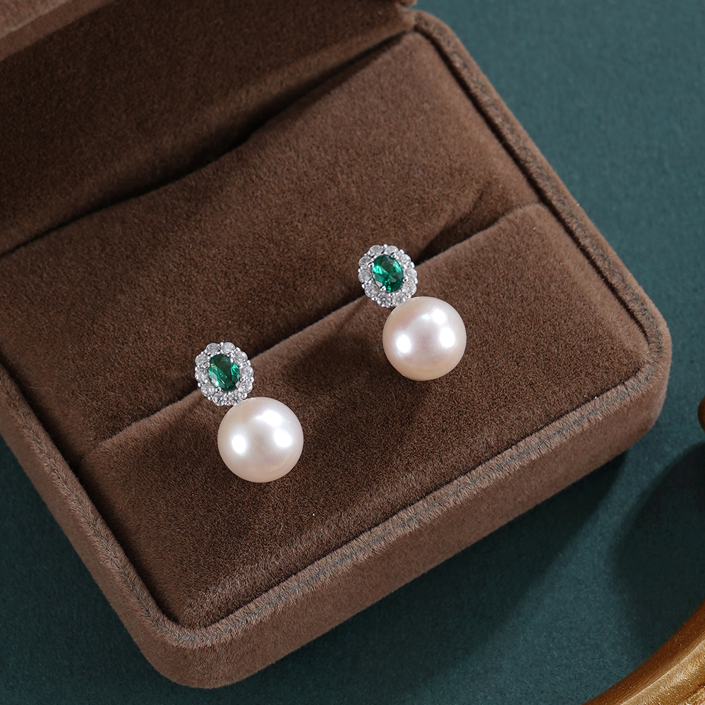 子佩集【花海寄情】银S925珍珠惜王妃耳钉【EM3079-XF】8.5mm珠绿点2601