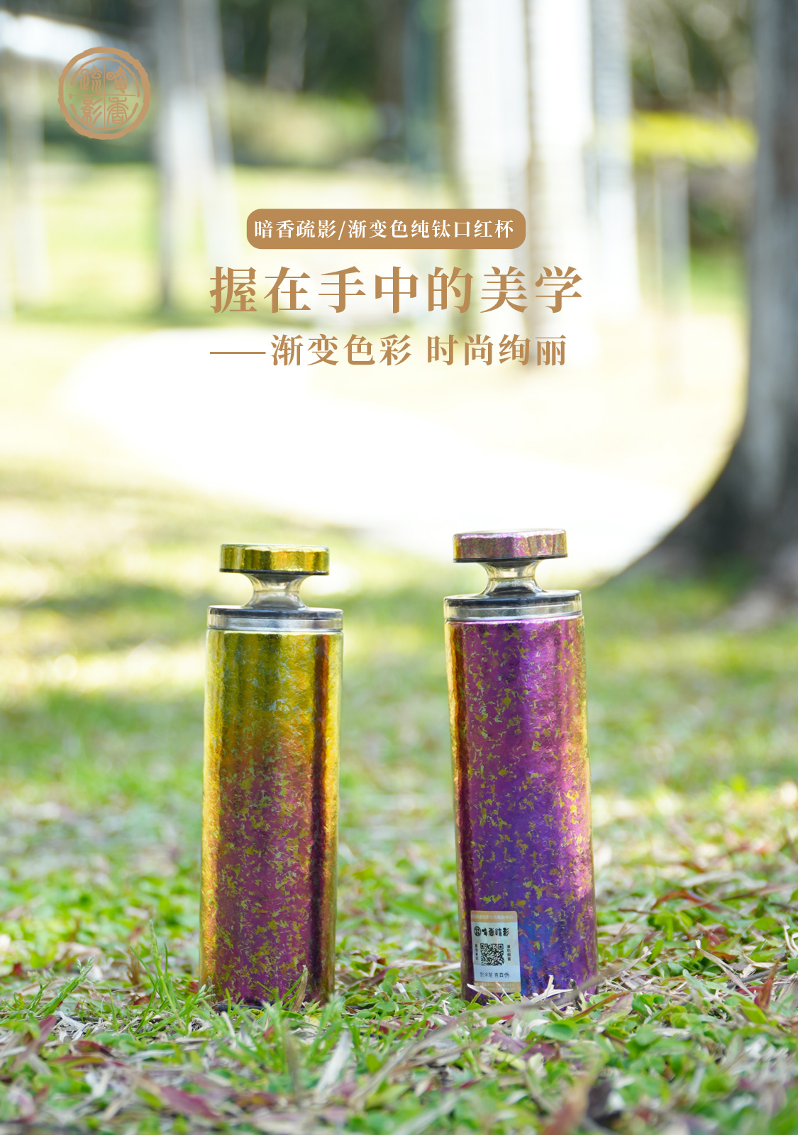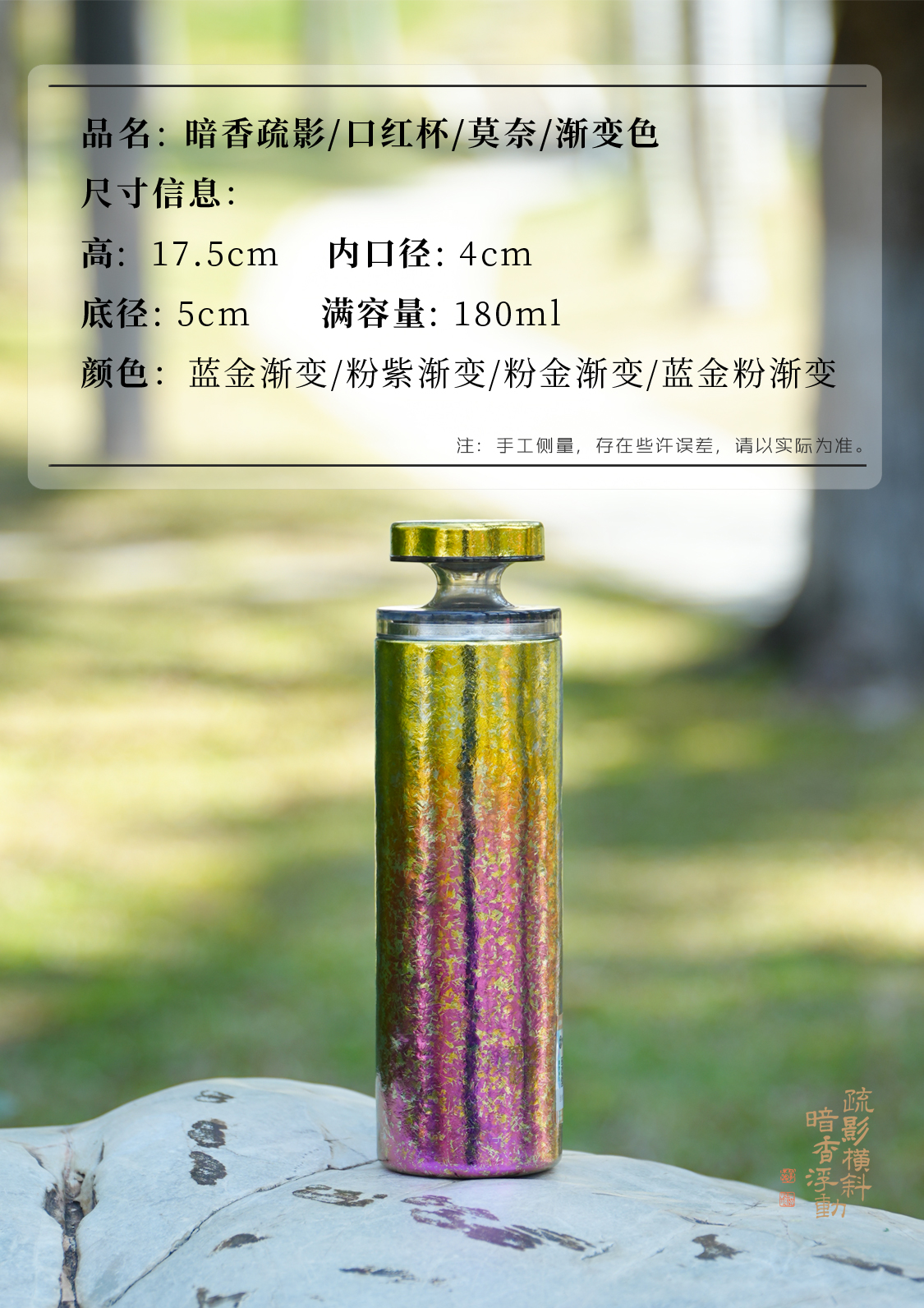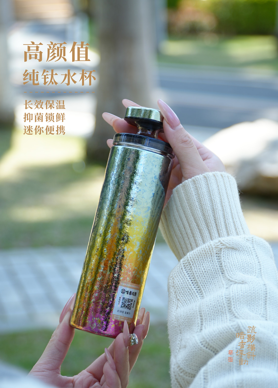 暗香疏影/口红杯/莫奈/纯钛高颜值迷你保温杯便携小巧钛杯双层真空水杯女神口红杯
