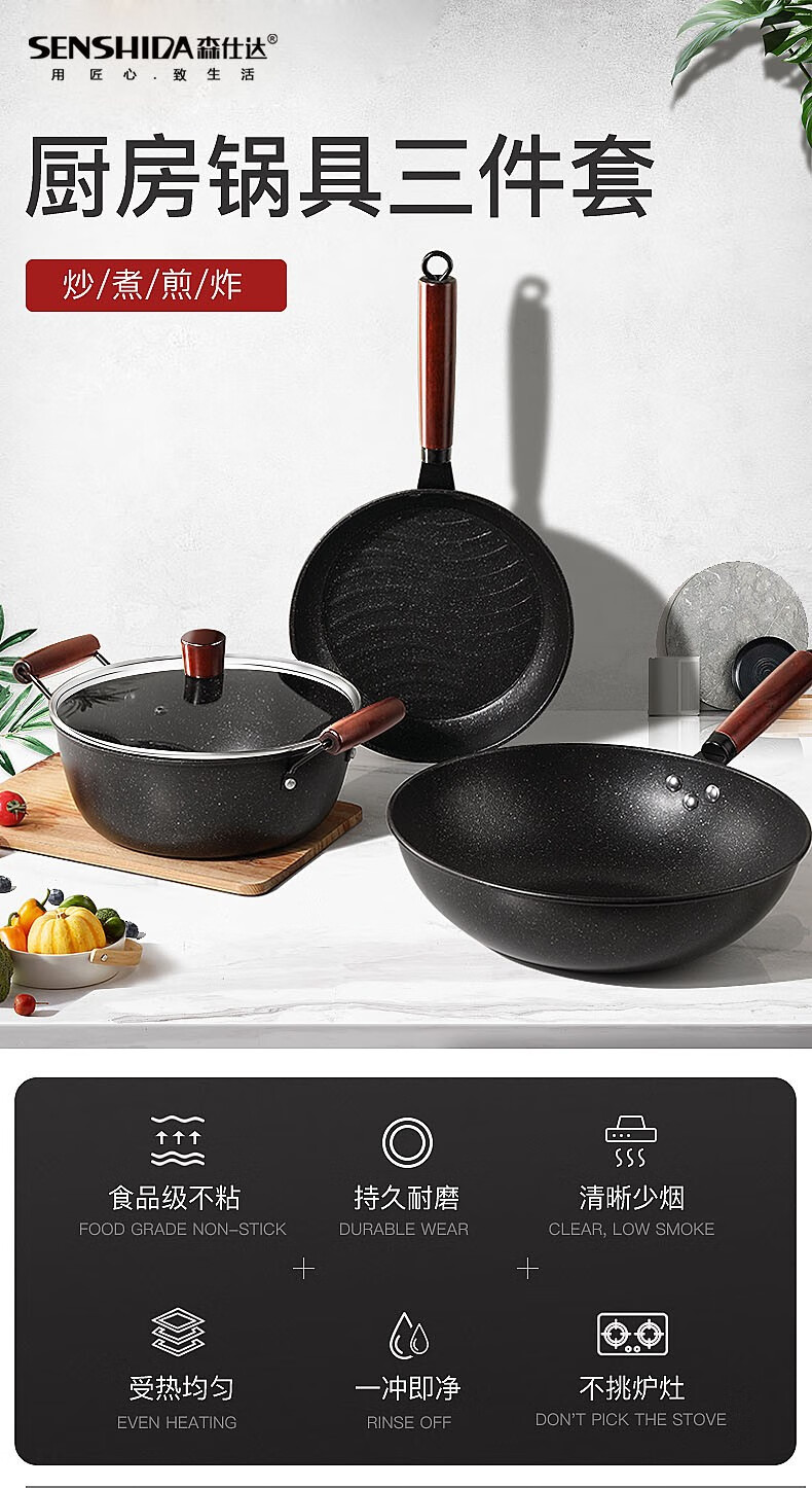 森仕达(SENSHIDA) 森仕达莱德麦饭石套装锅(三件套)A款