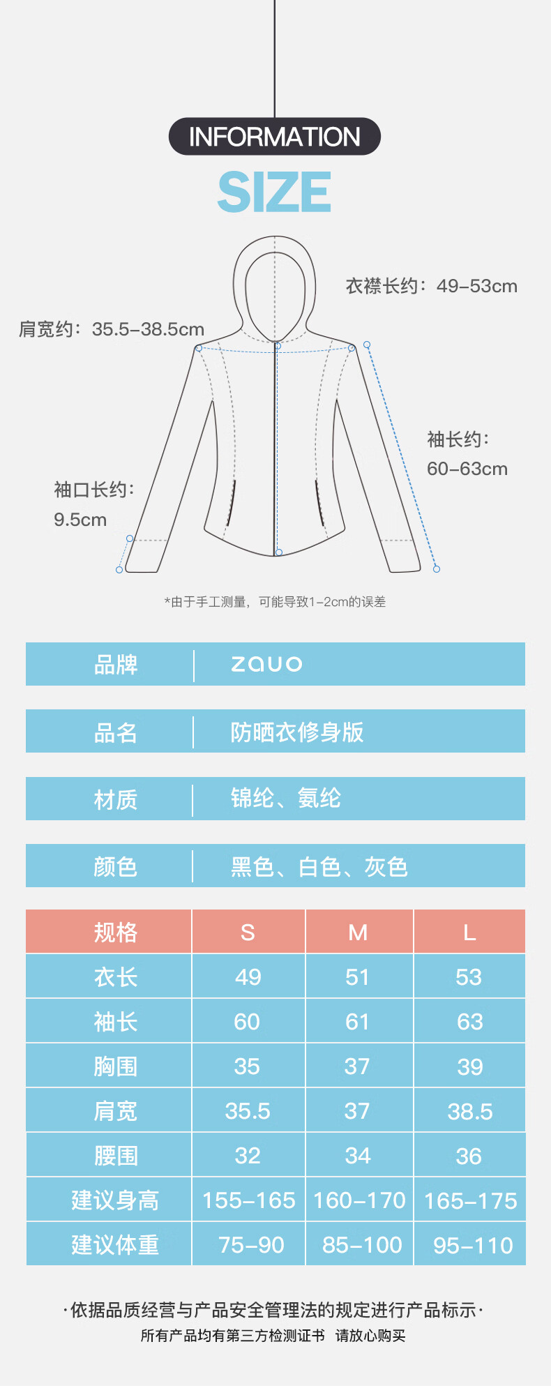 韩国ZAUO修身防晒衣 BBL