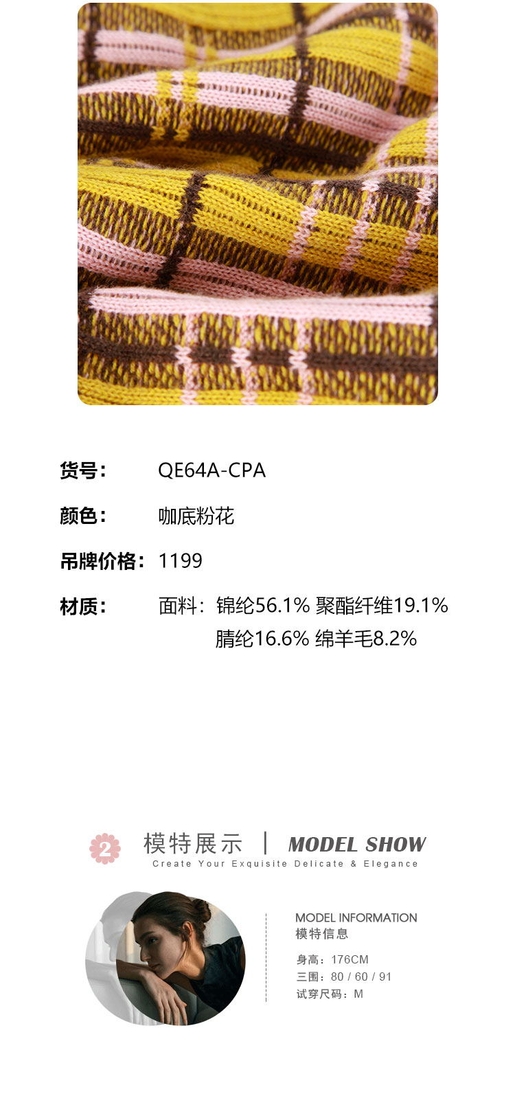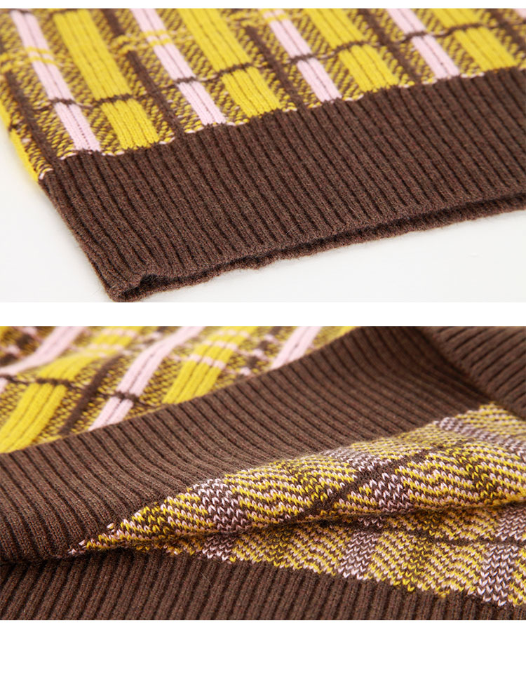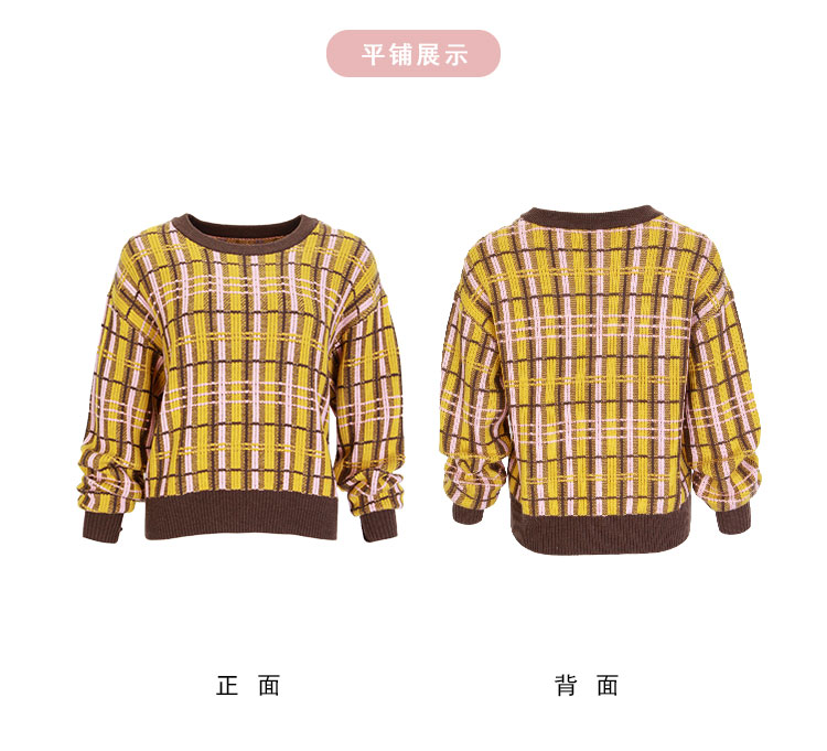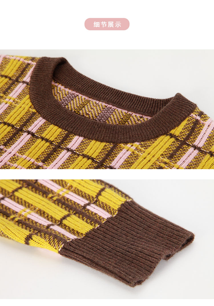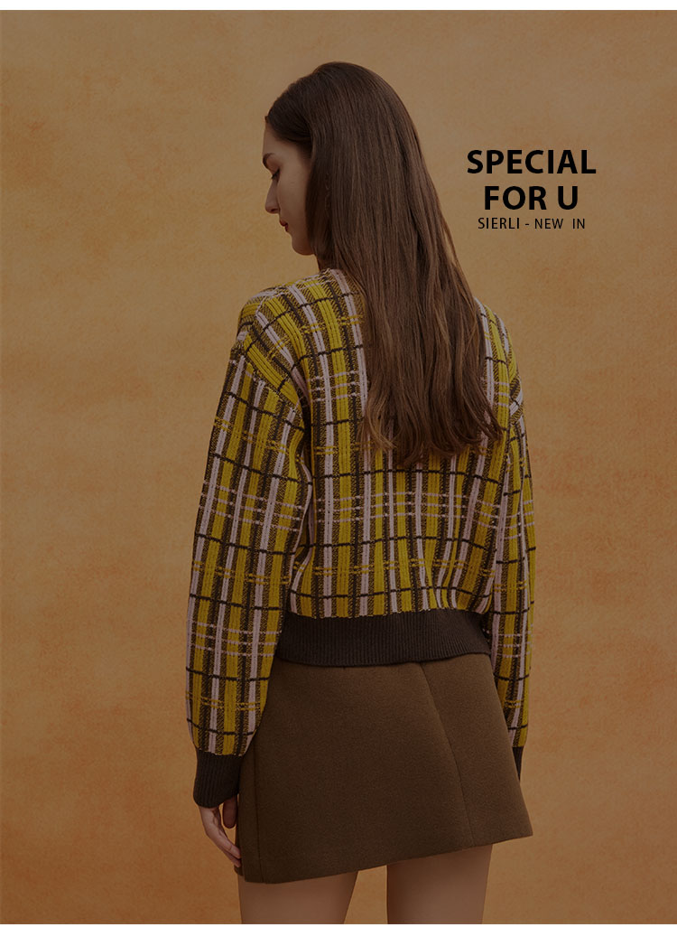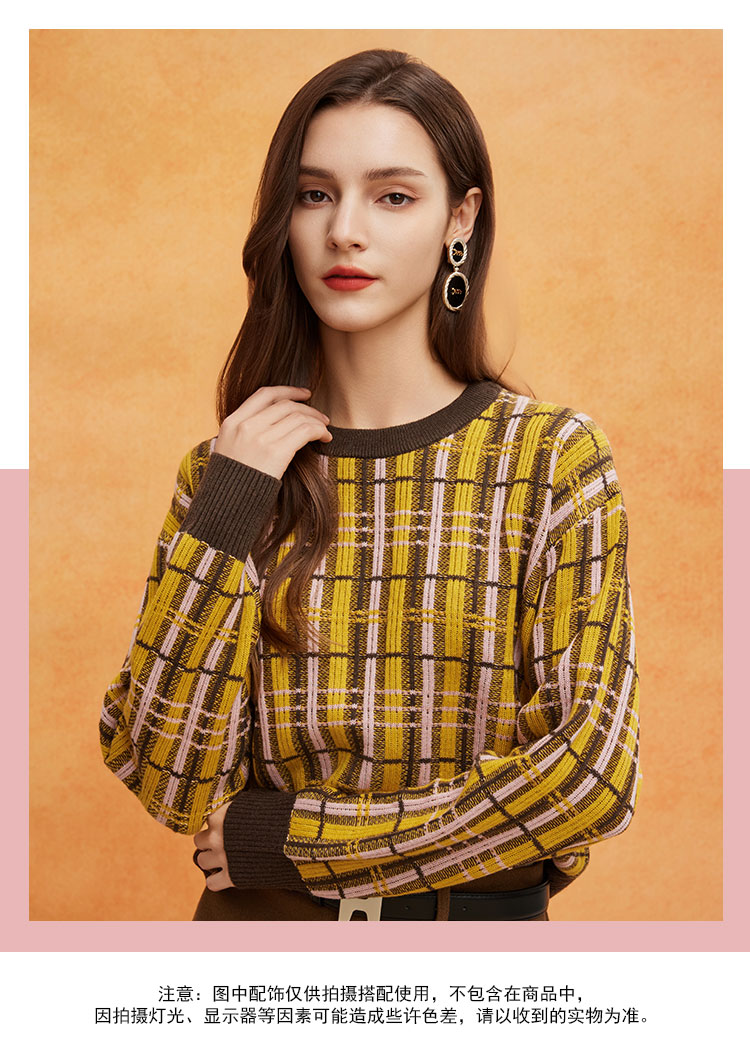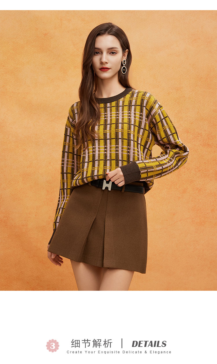 QE64A瑟俪(斯尔丽高端)舒适柔软低圆领撞色超细羊毛长袖毛衣针织衫