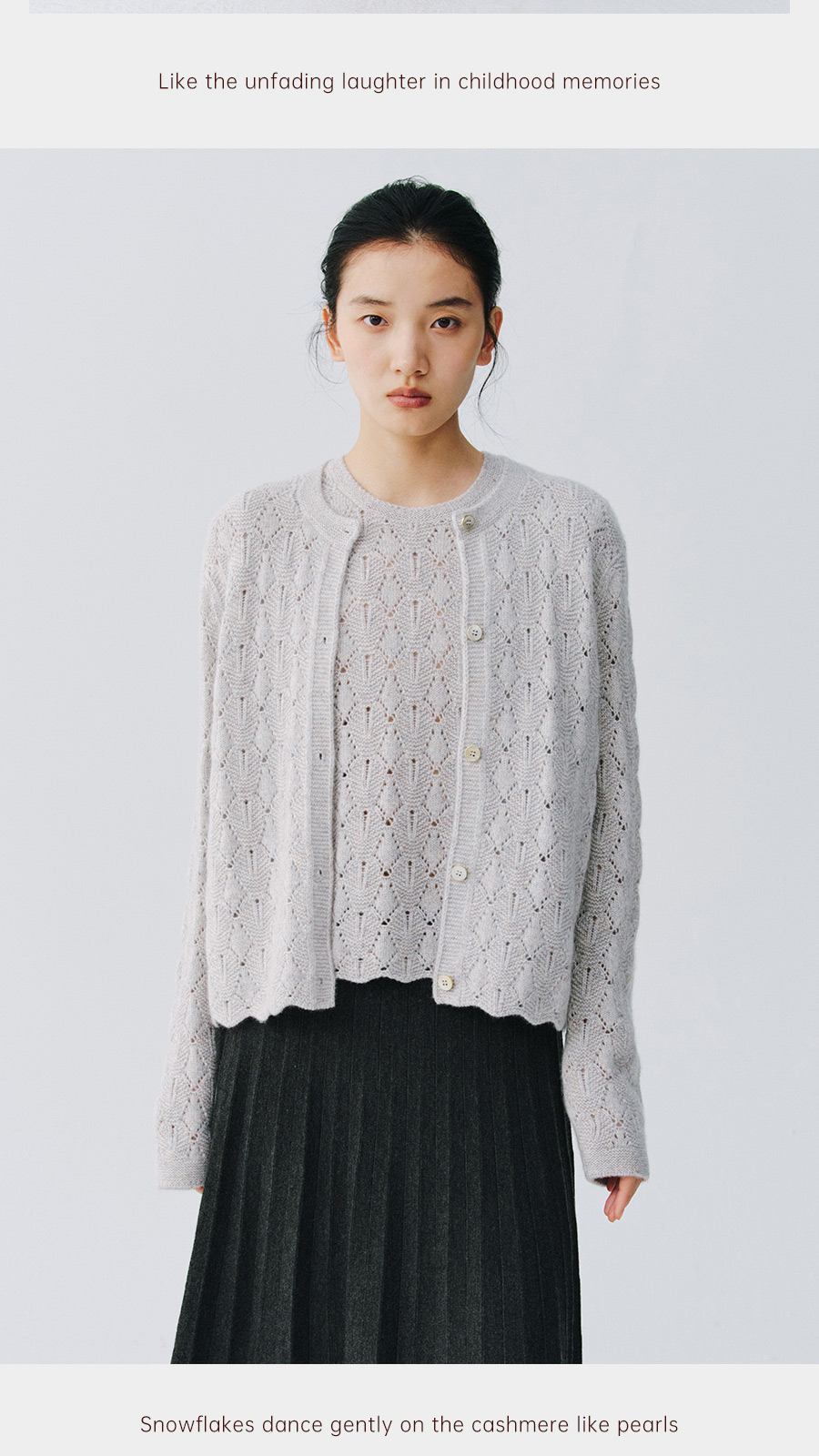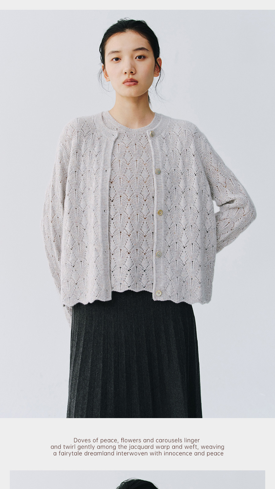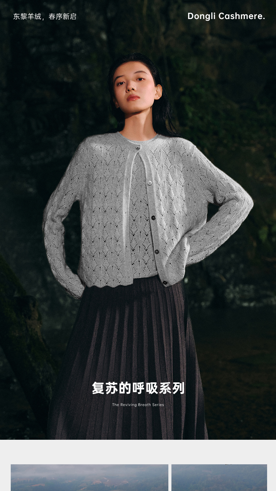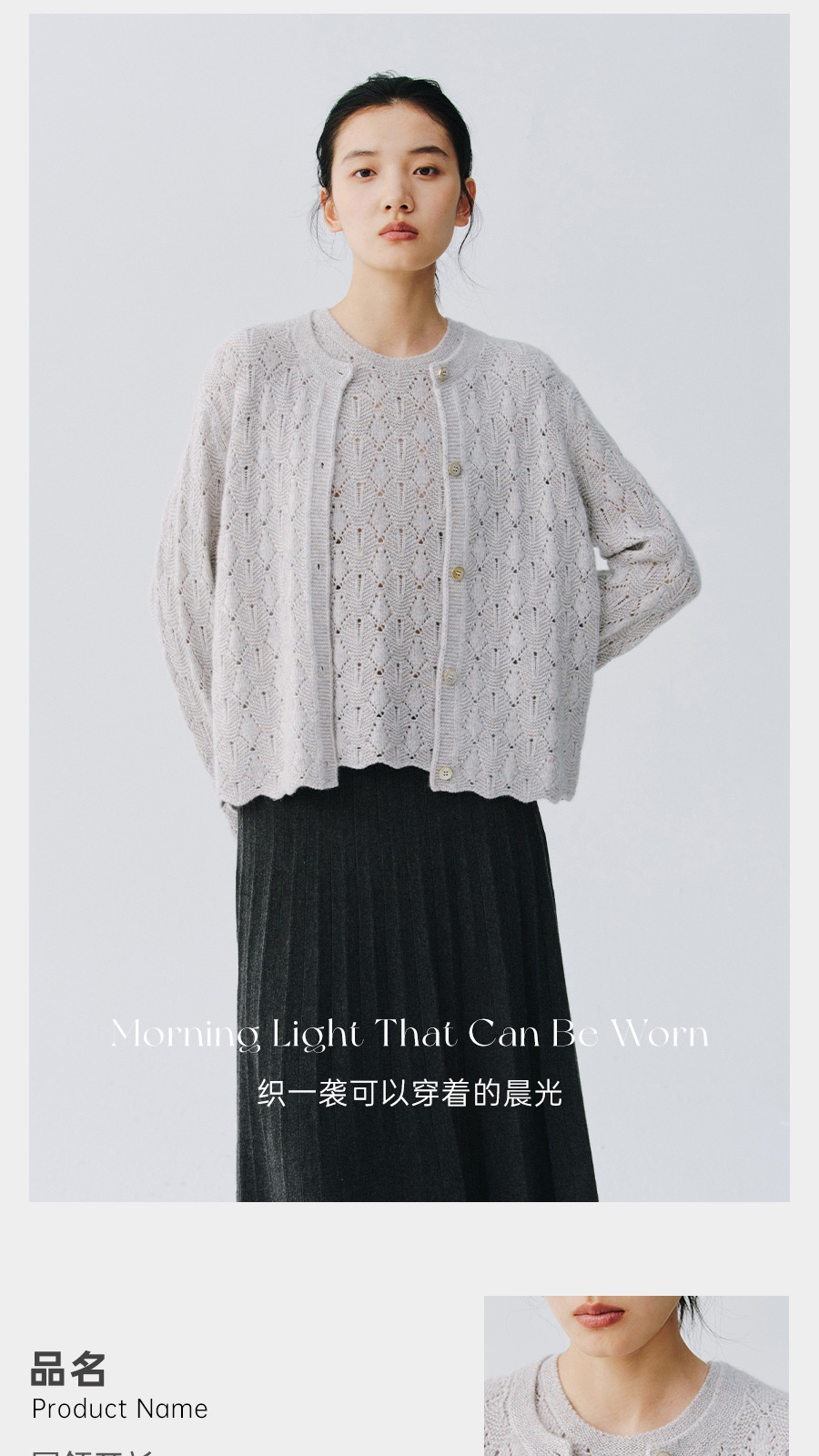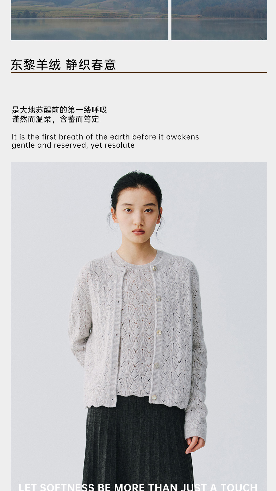 东黎 • 复苏的呼吸 山羊绒女士轻盈透气镂空圆领开衫 6030