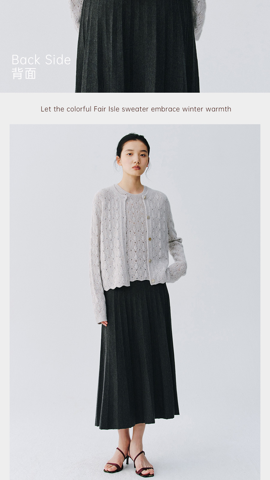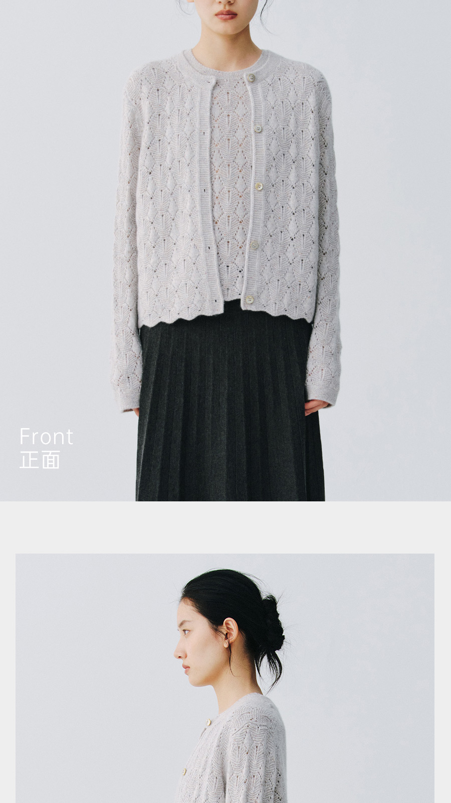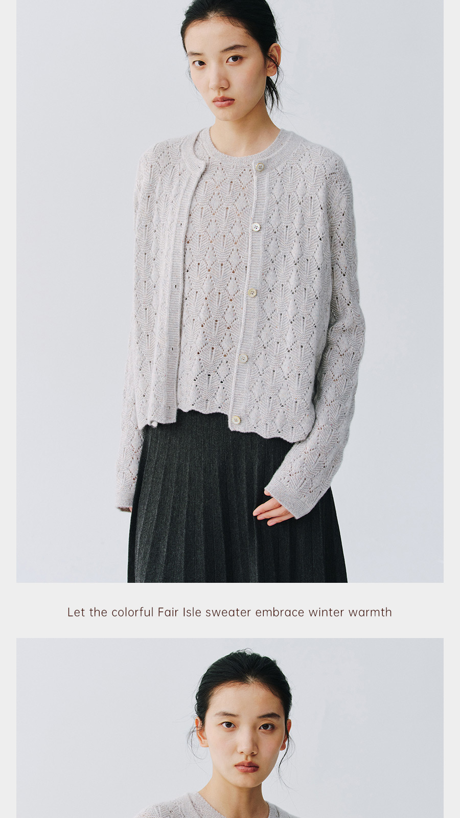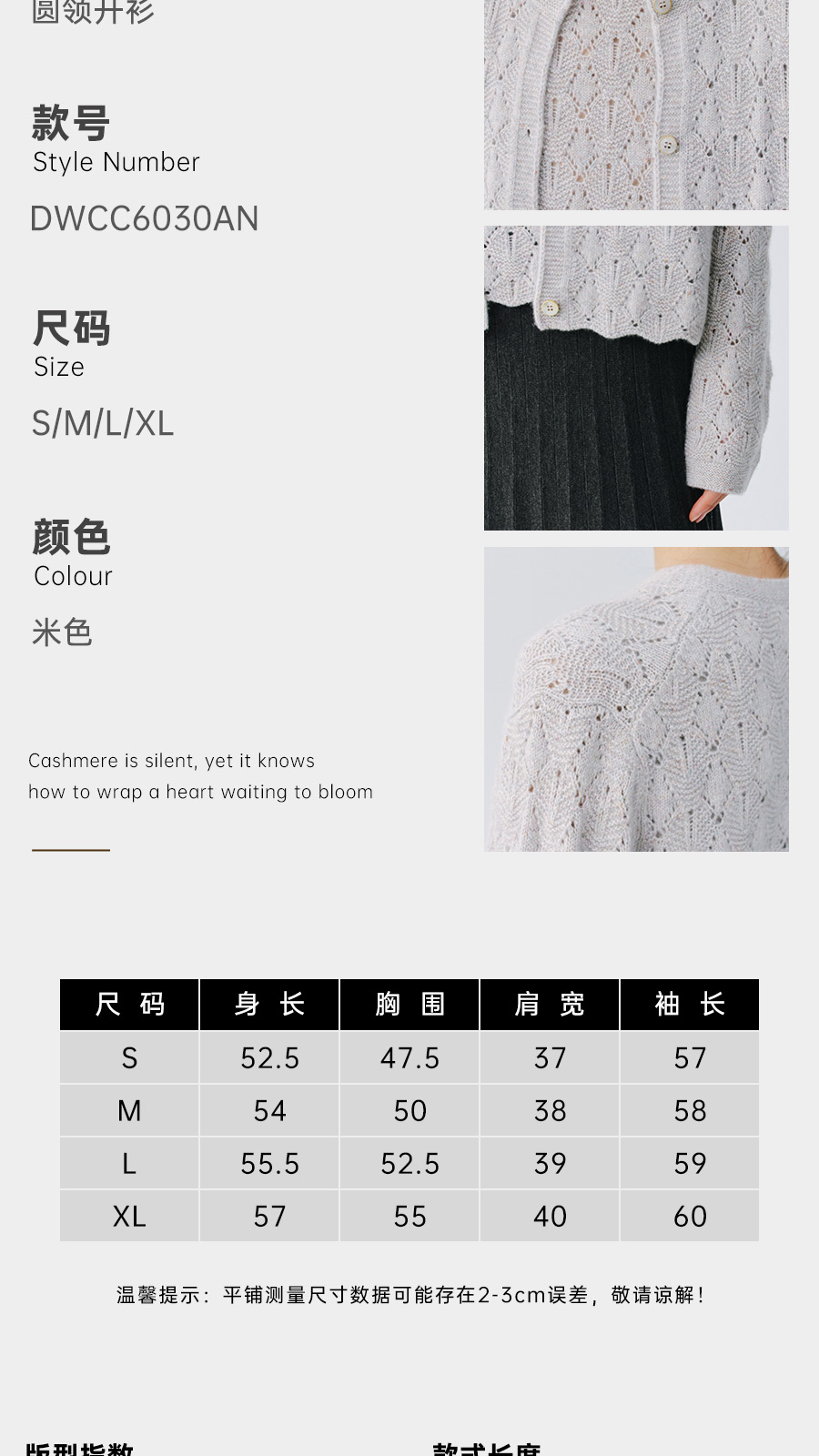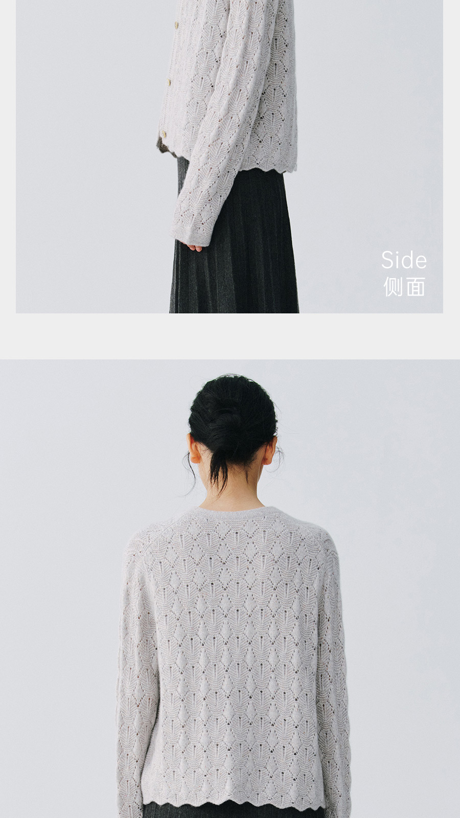 东黎 • 复苏的呼吸 山羊绒女士轻盈透气镂空圆领开衫 6030