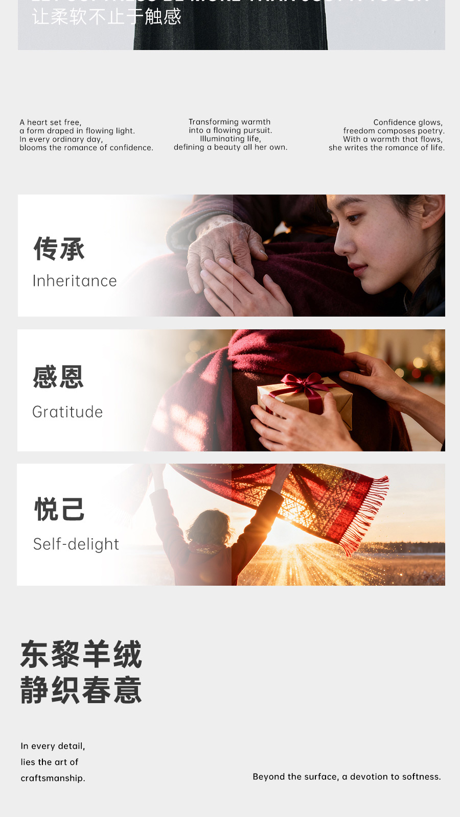 东黎羊绒是赤峰东荣集团自主品牌,自有牧场/羊绒制品全产业链优势,实现了羊绒从“牧场”到“商场”的华丽转变。
