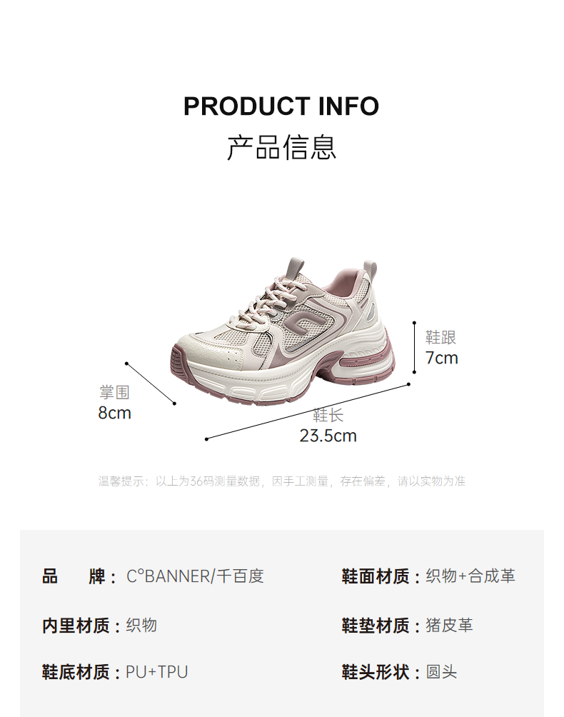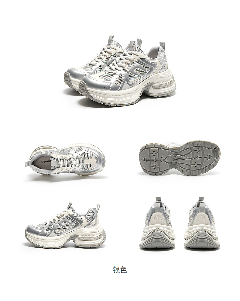 千百度银色厚底老爹鞋女款网面透气增高运动休闲鞋A25391604