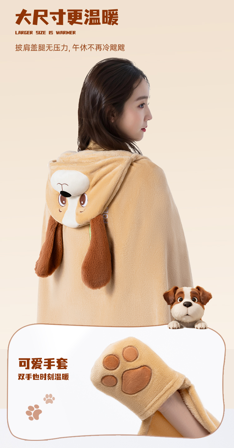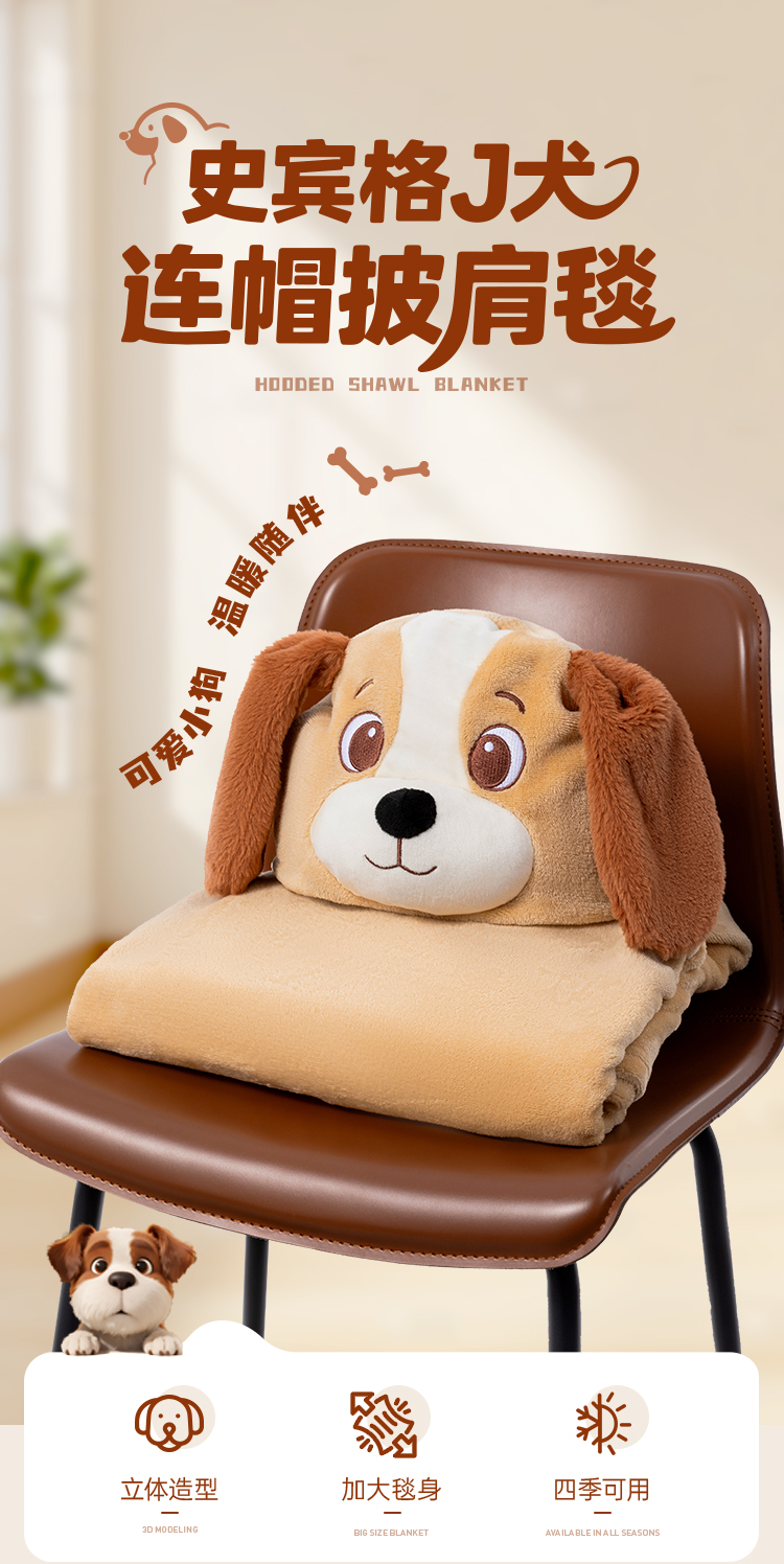 【实付满199送钥匙扣】【史宾格J犬带帽披肩毯】办公室工位披肩毛毯被子创意午睡毯居家空调毯子
