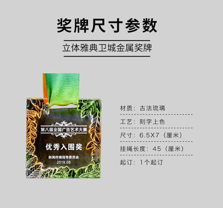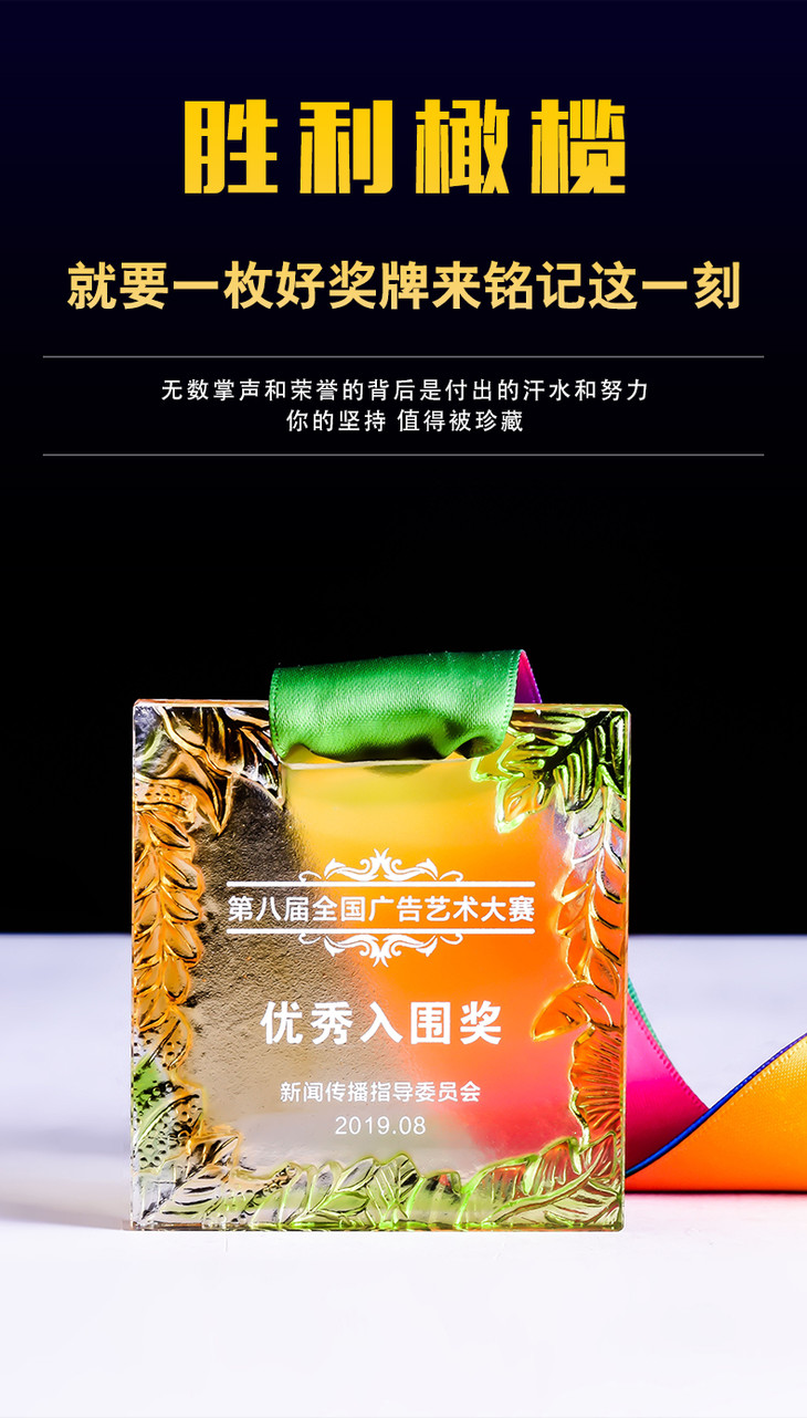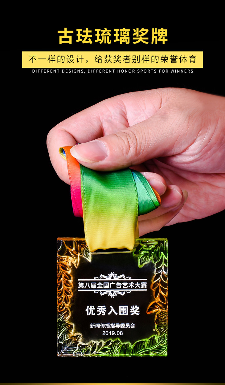 创意琉璃橄榄枝挂牌定制定做艺术马拉松比赛运动会荣誉奖牌制作