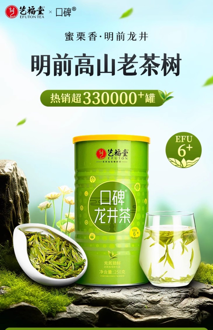 【第2件半价送水晶杯】艺福堂茶叶 明前口碑龙井茶 钱塘产 2025年新茶 口碑龙井250gEFU6+