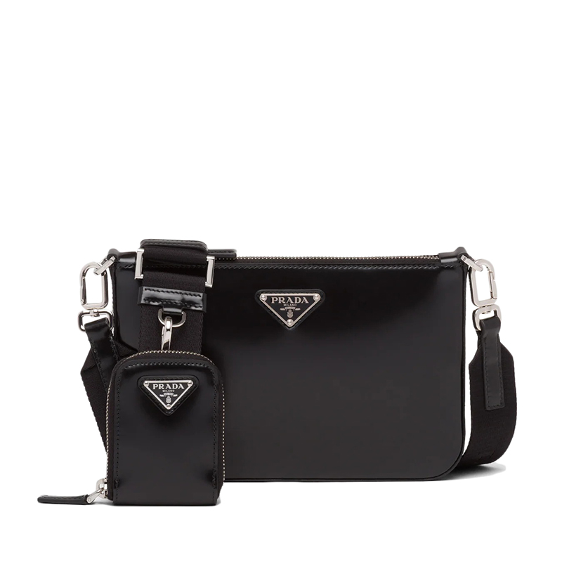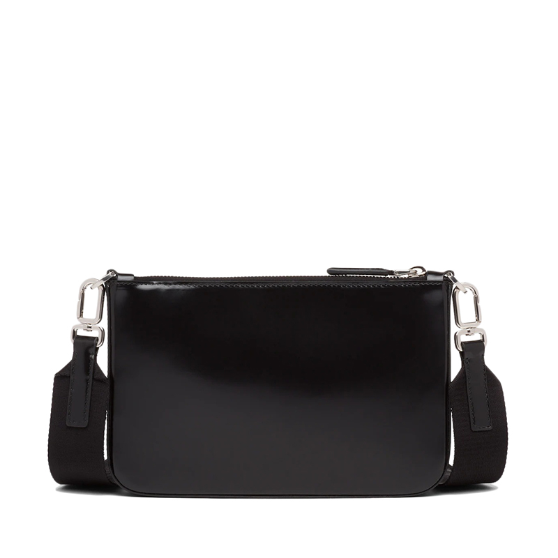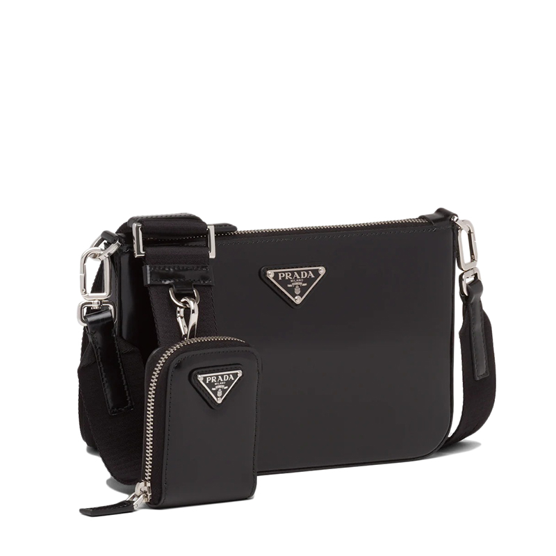 【包税】PRADA/普拉达 21年秋冬新款 男士黑色亮面皮革配可拆卸尼龙肩带可拆卸皮革小袋斜跨单肩包2VH129_ZO6_F0002_V_OOO