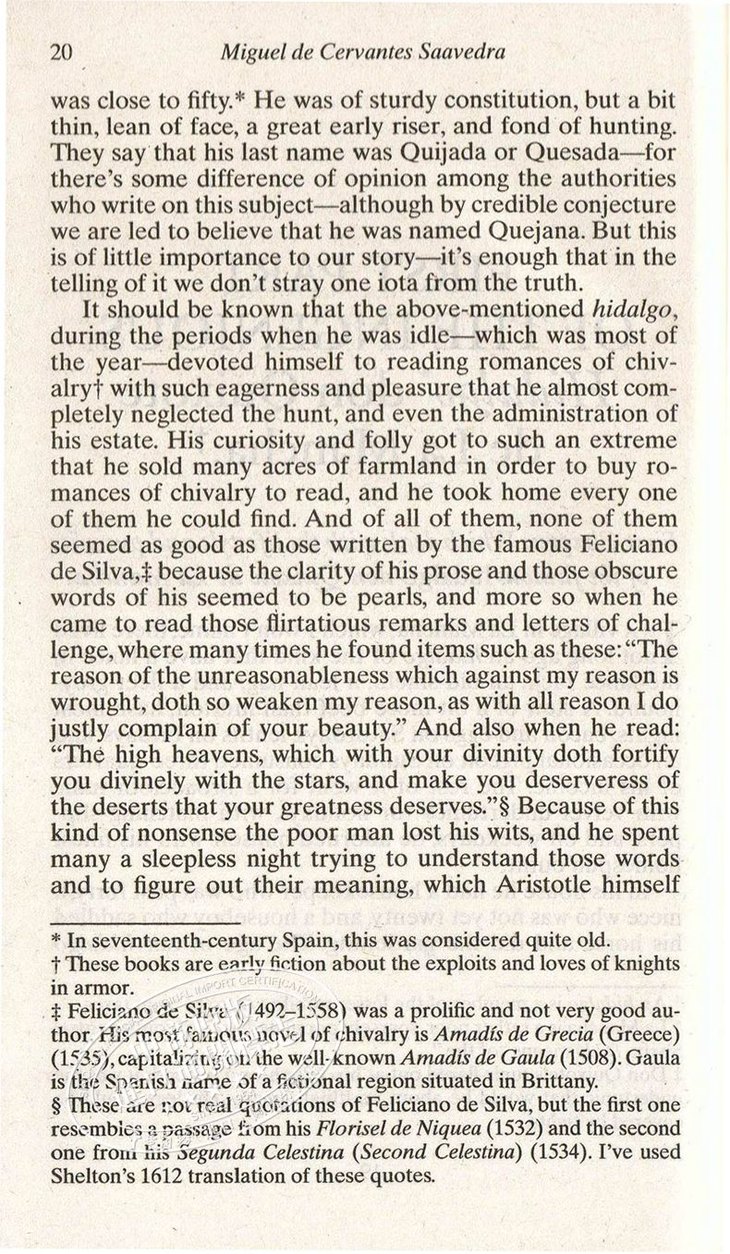 In a new translation that "comes closest, among the modern translations, to the simple, intimate, direct style that characterizes Cervantes' narrative,"