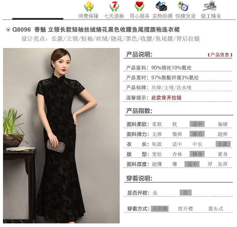 【香魅】新款烧花鱼尾摆宴会旗袍XGT-Q8096