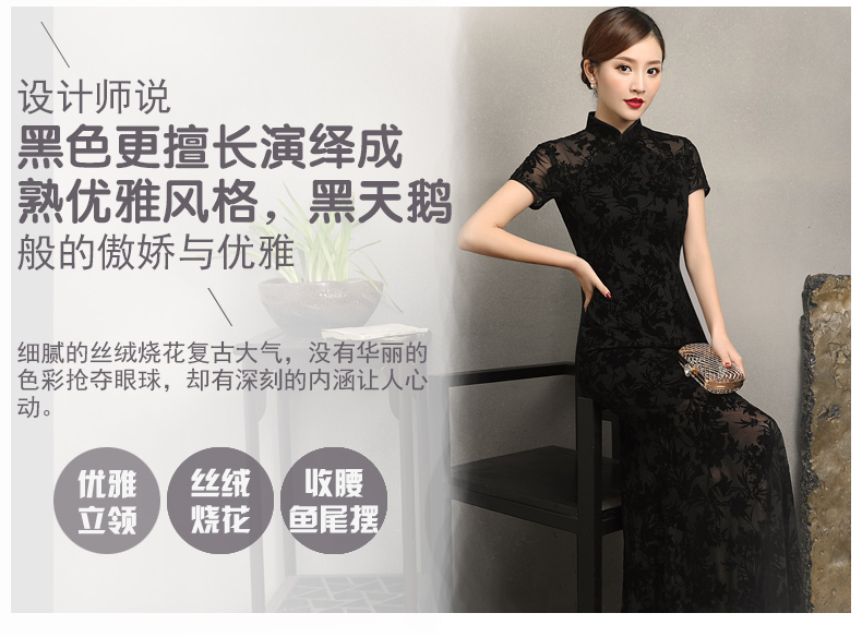 曼丽绒长款温婉少女,毛茸茸日常文艺风气质旗袍MLS-6821