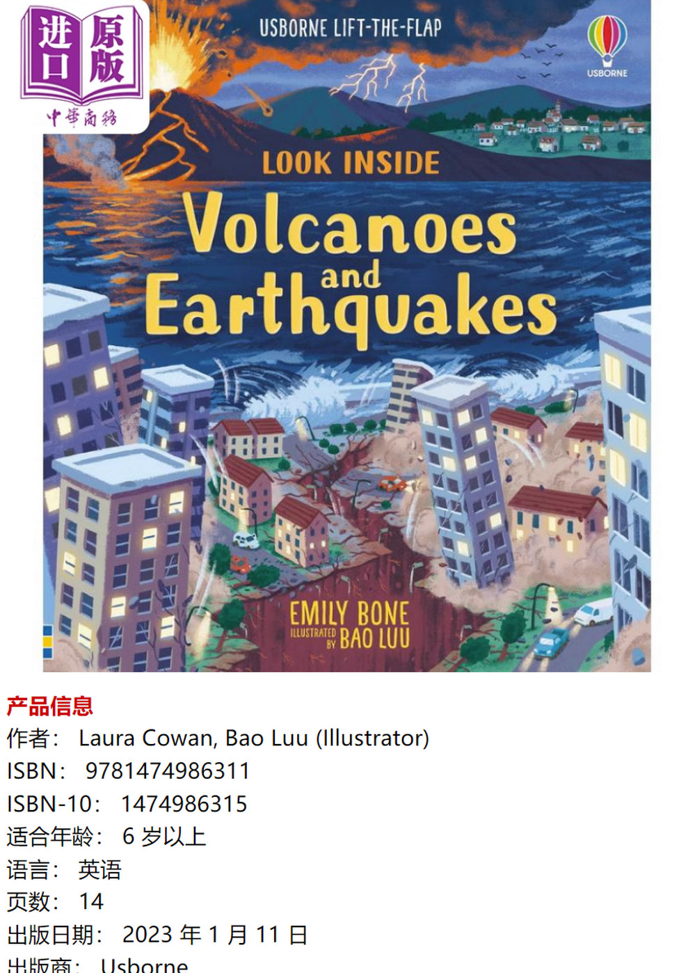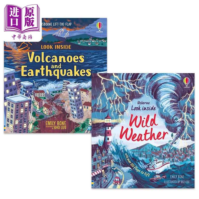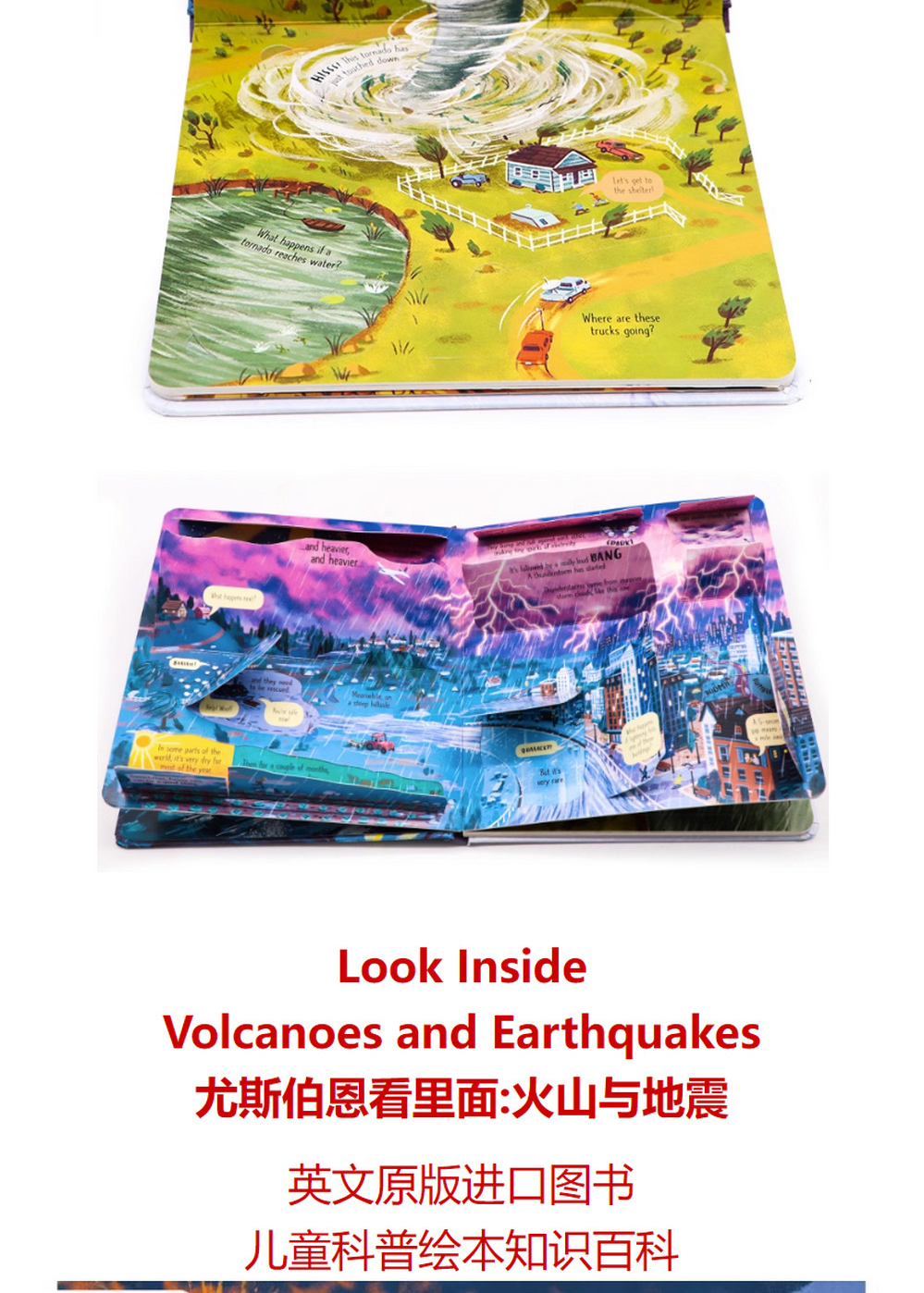 【中商原版】Usborne Look Inside 尤斯伯恩看里面 纸板书绘本2册套装 火山地震Volcanoes Earthquakes 恶劣天气Wild Weather