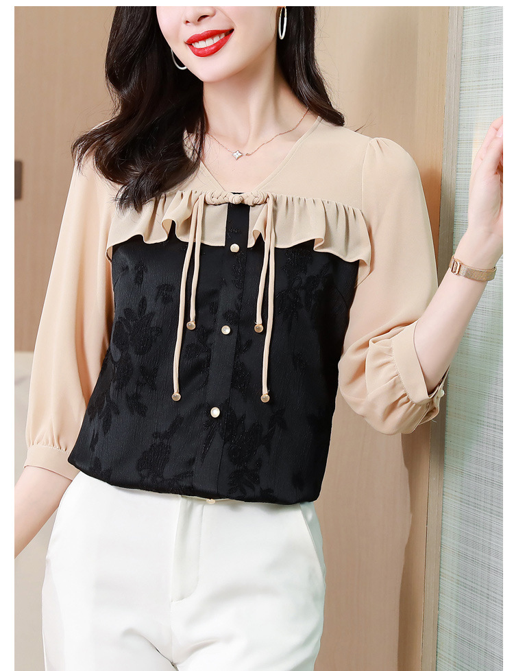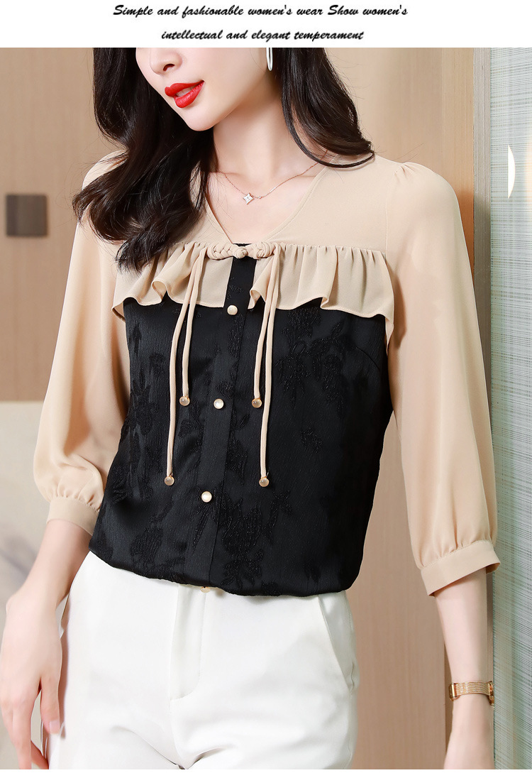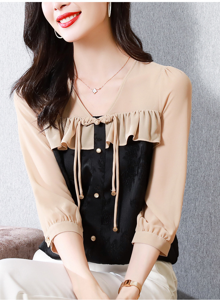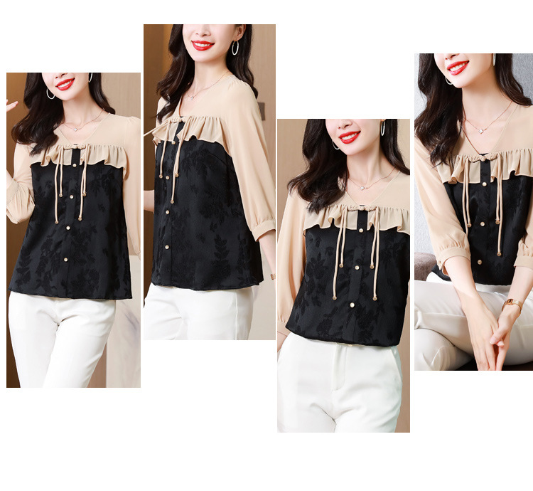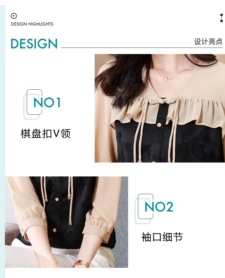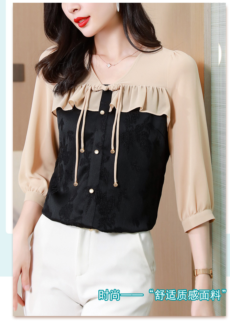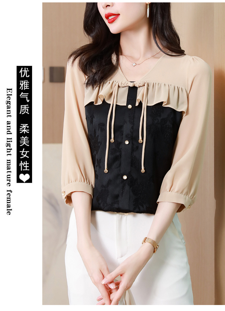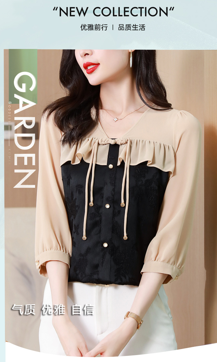设计感国风,盘扣七分袖雪纺衫KQL-B43N8319
