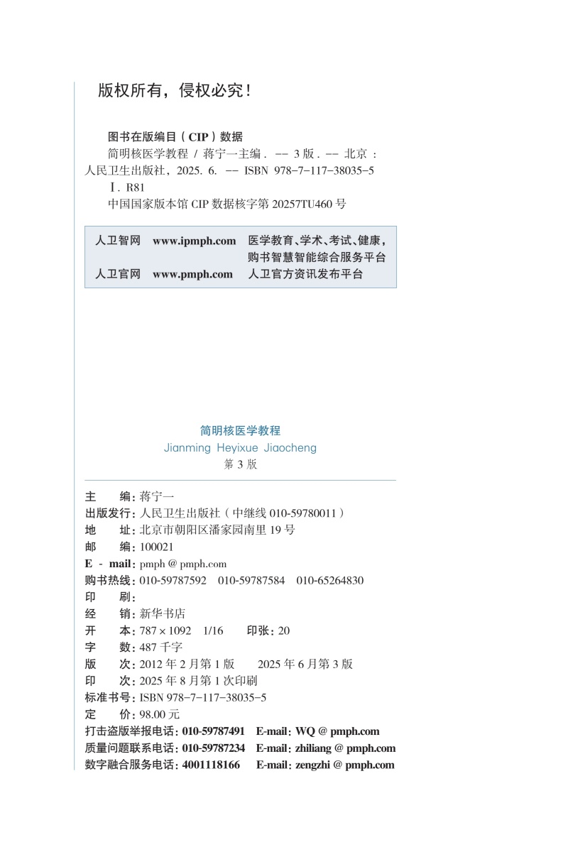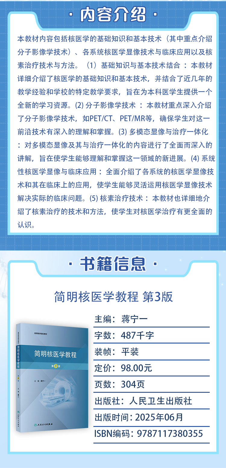 简明核医学教程 第3三版 高等医学院校教材 蒋宁一 主编 内容包括核医学的基础知识和基本技术等 9787117380355 人民卫生出版社