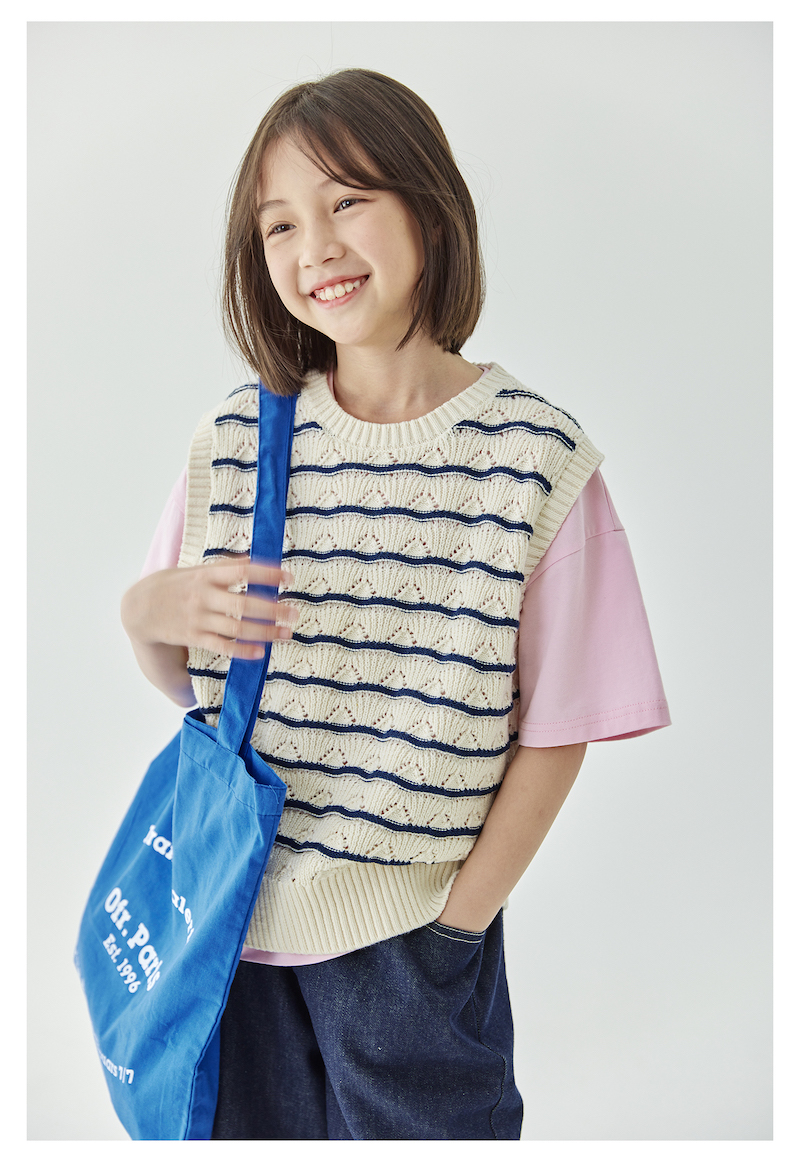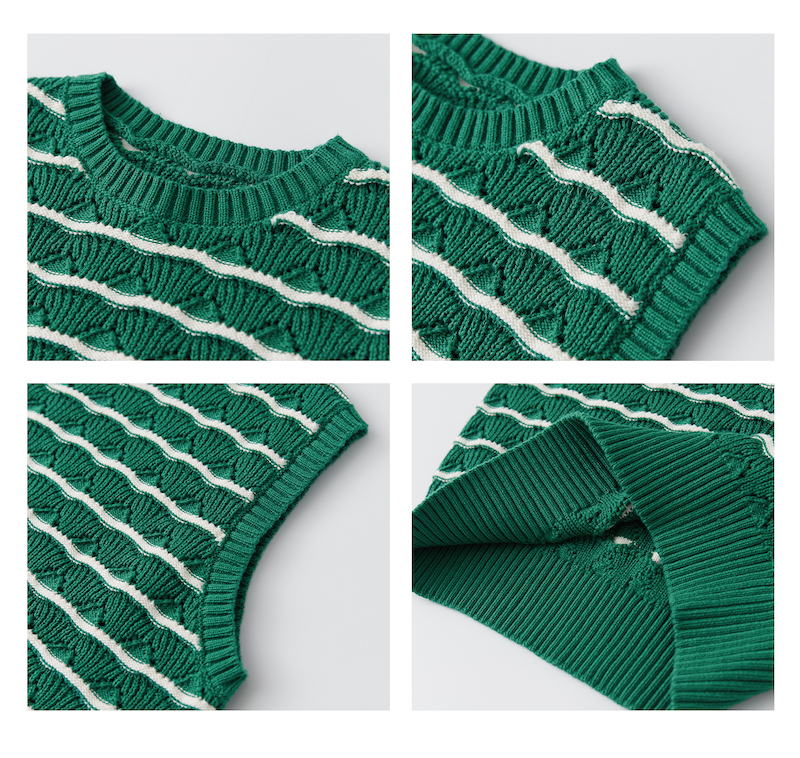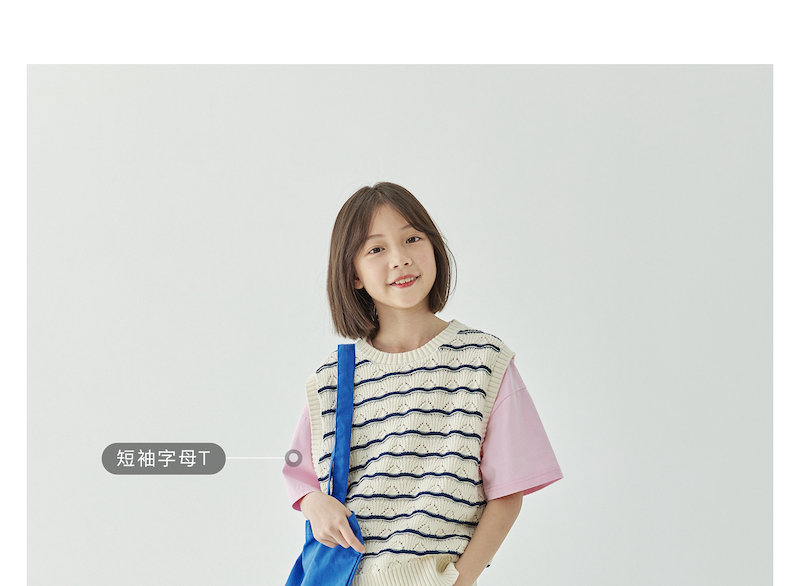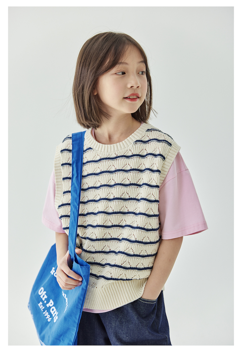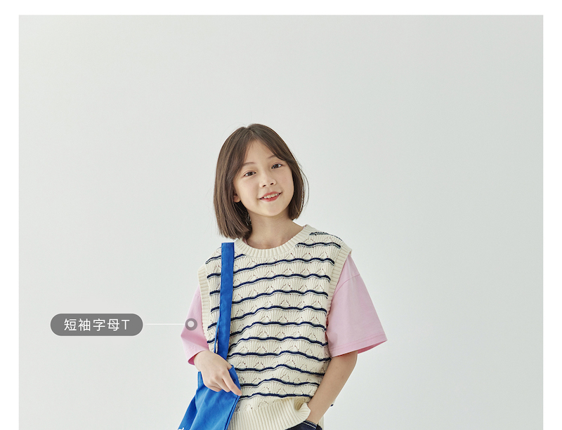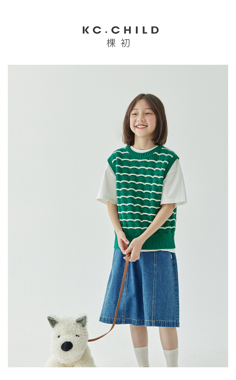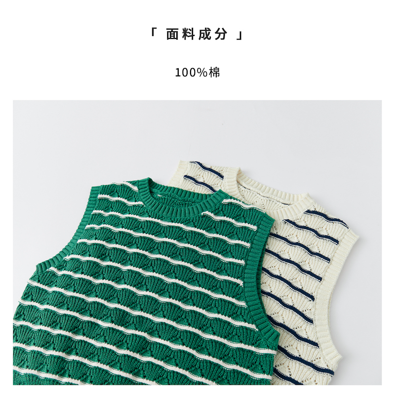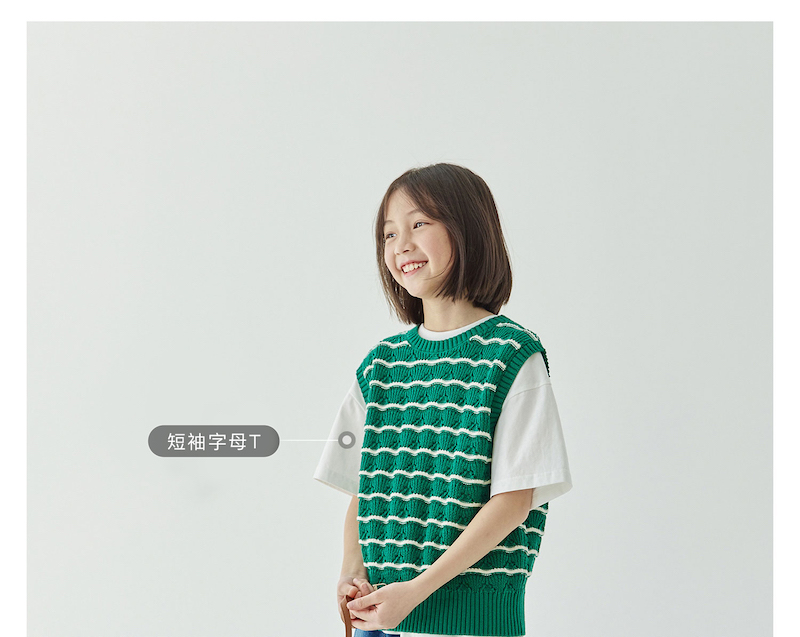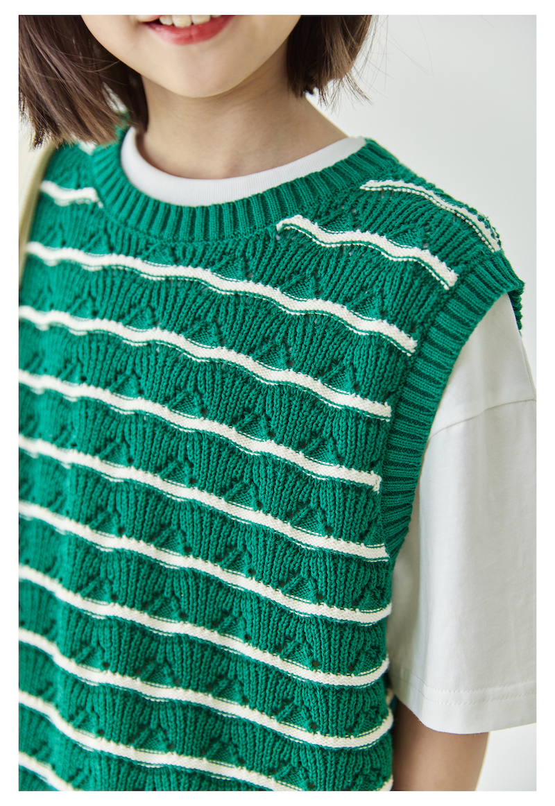 棵初春款儿童波浪纹针织背心马甲母女亲子款条纹撞色坎肩