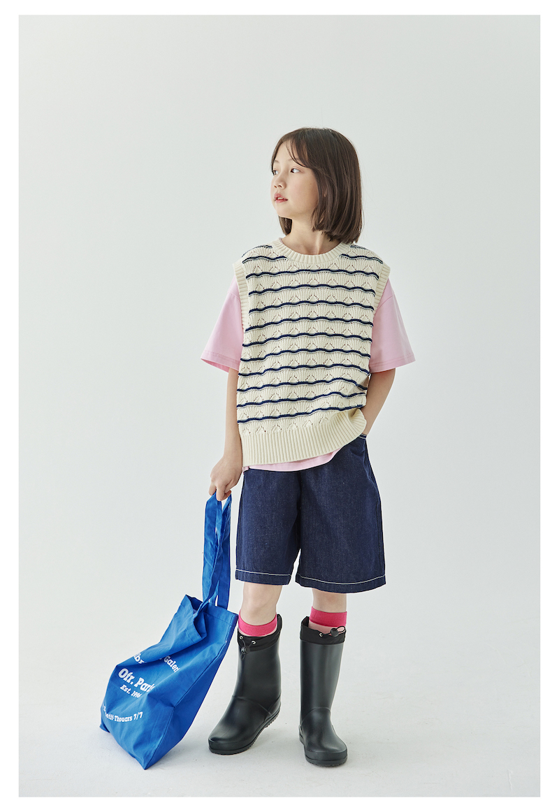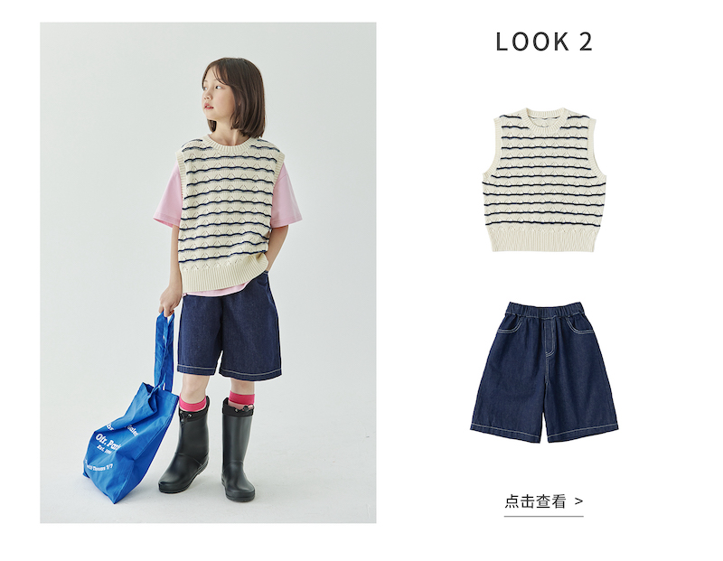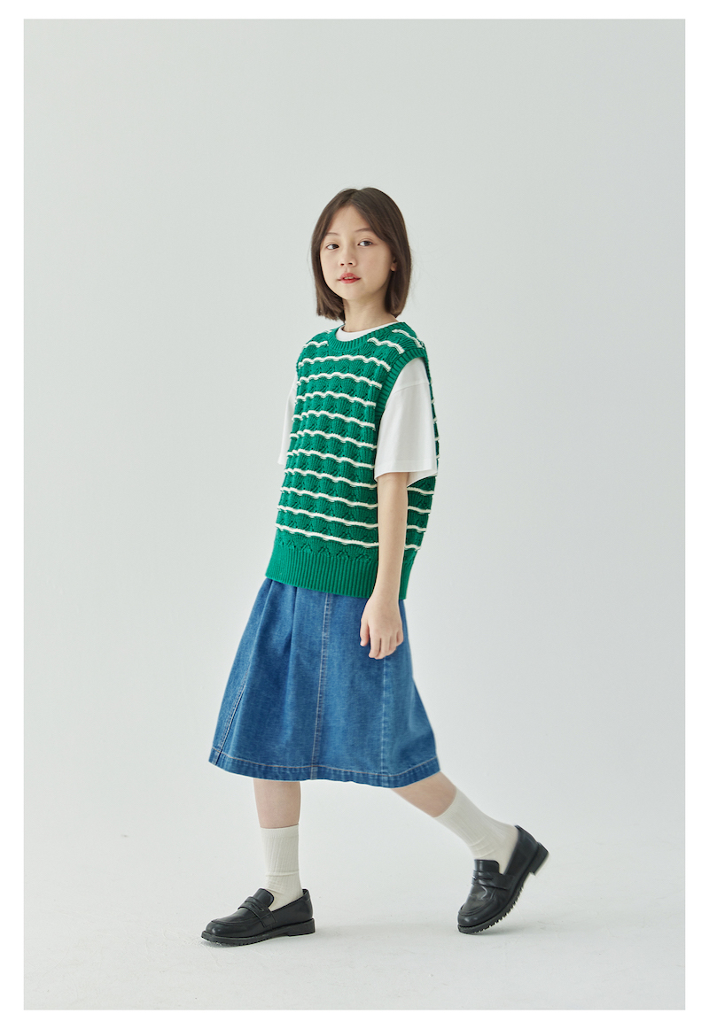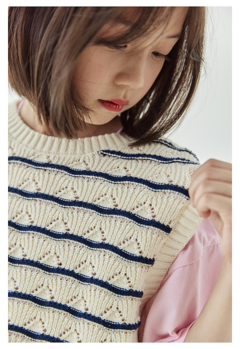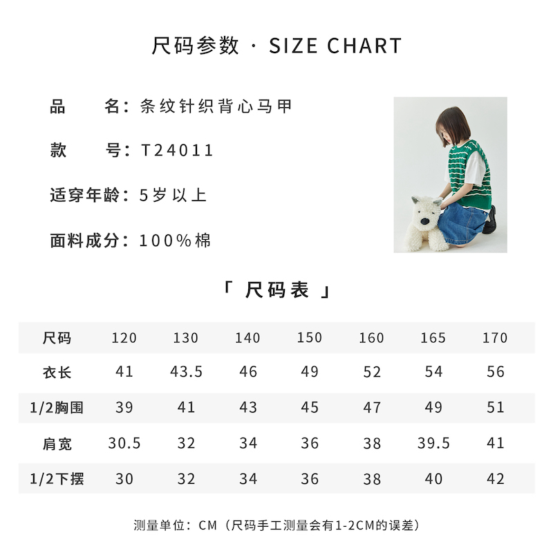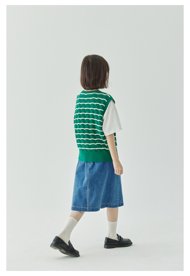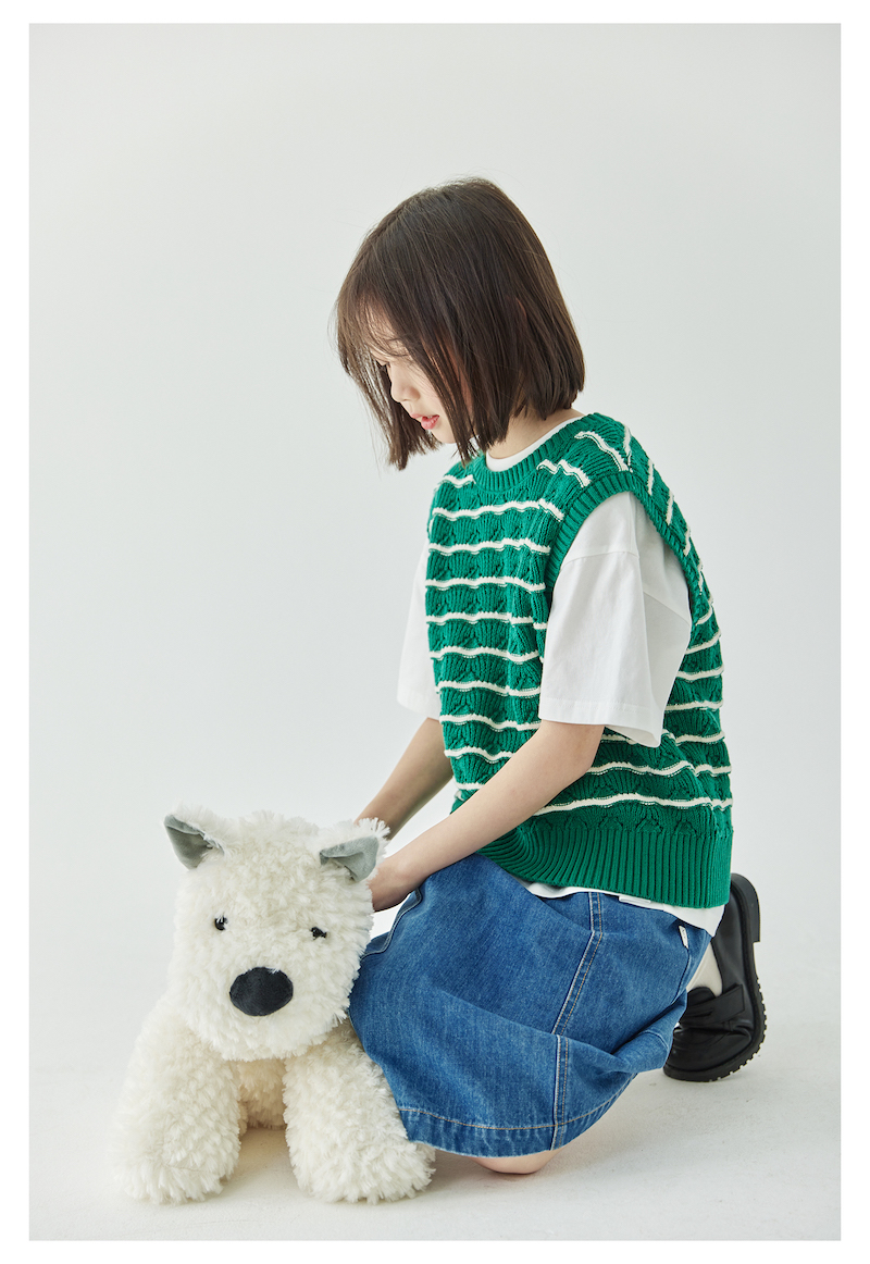棵初春款儿童波浪纹针织背心马甲母女亲子款条纹撞色坎肩