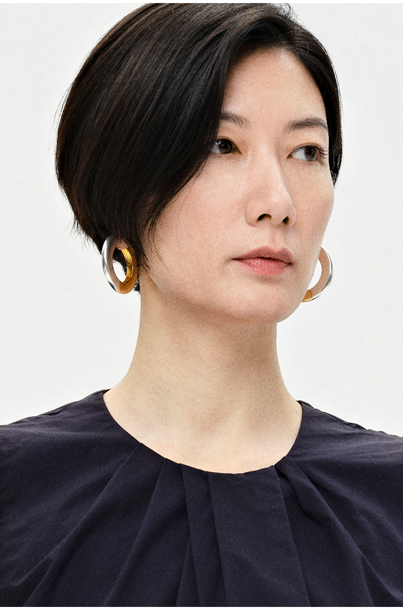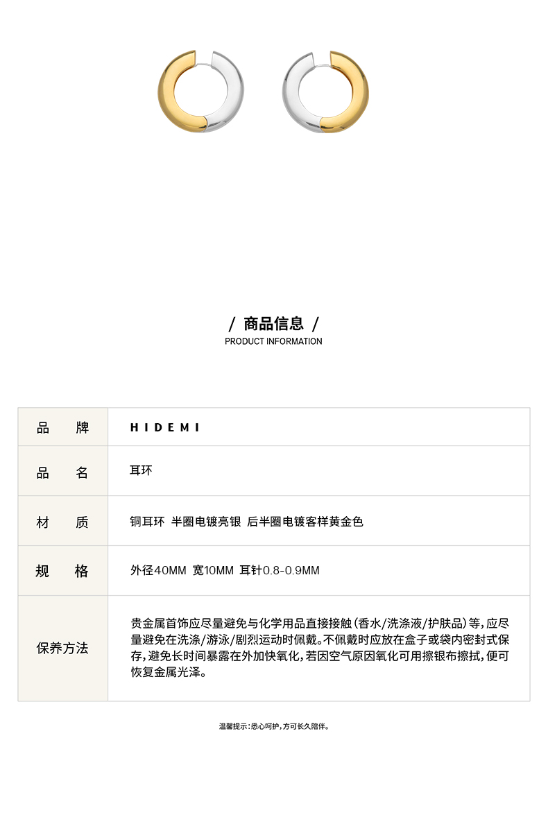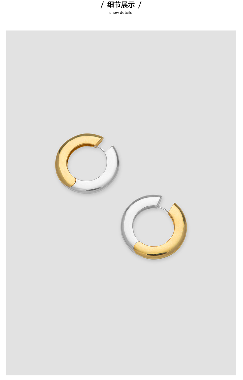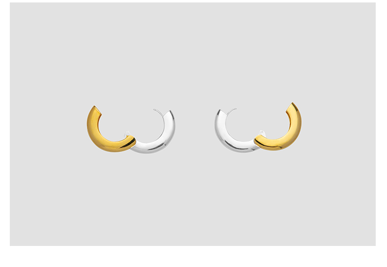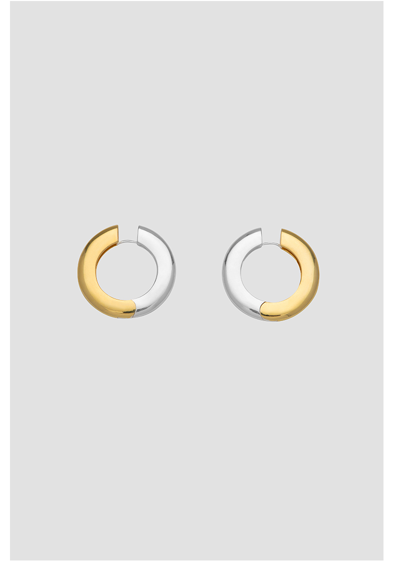 HIDEMI简约设计感宽版圆形金银双色耳环