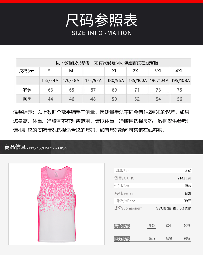 多威六边形背心男夏季新款专业马拉松跑步无袖T恤2142328