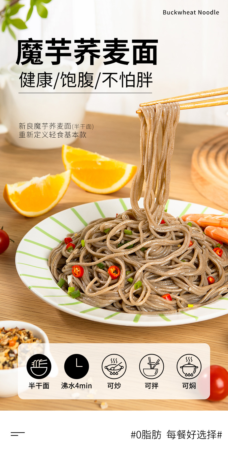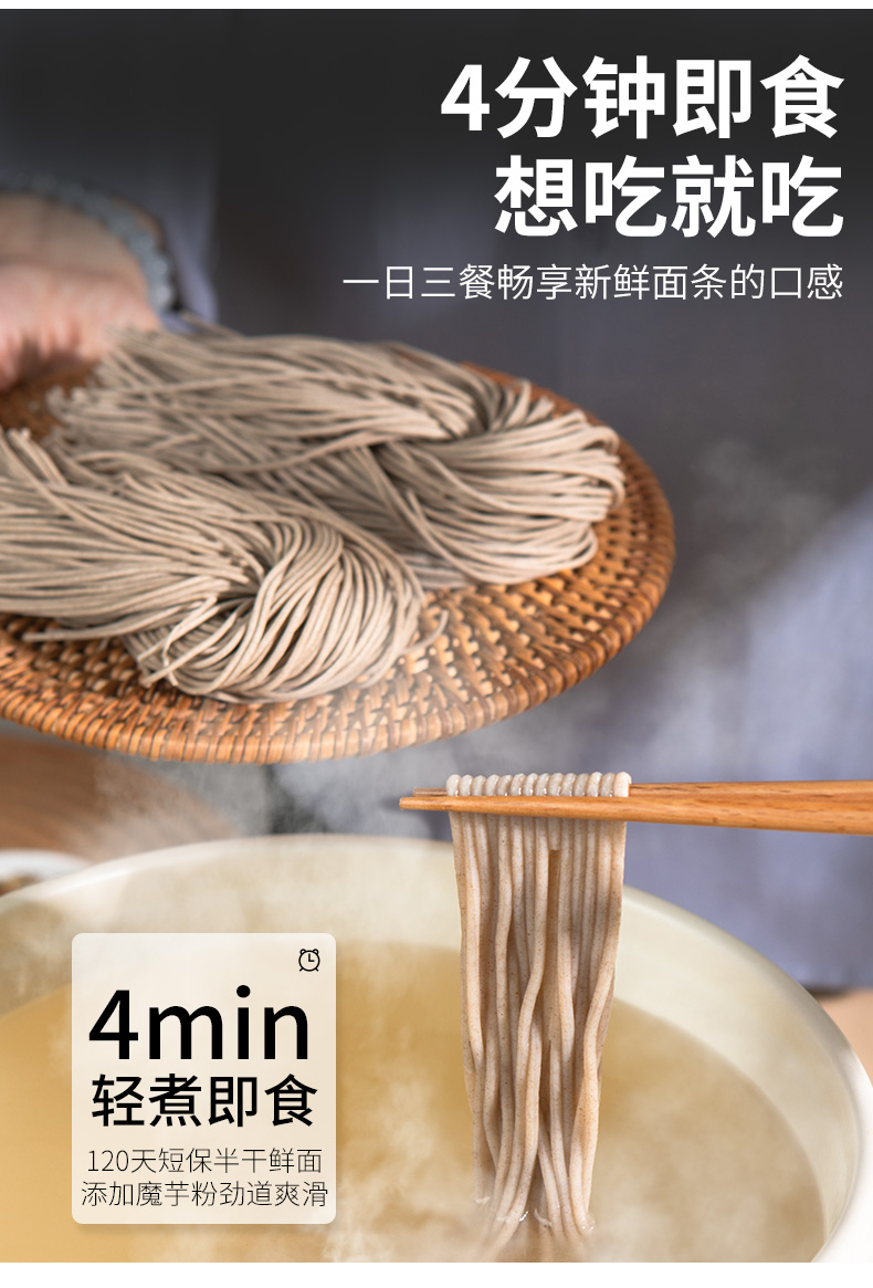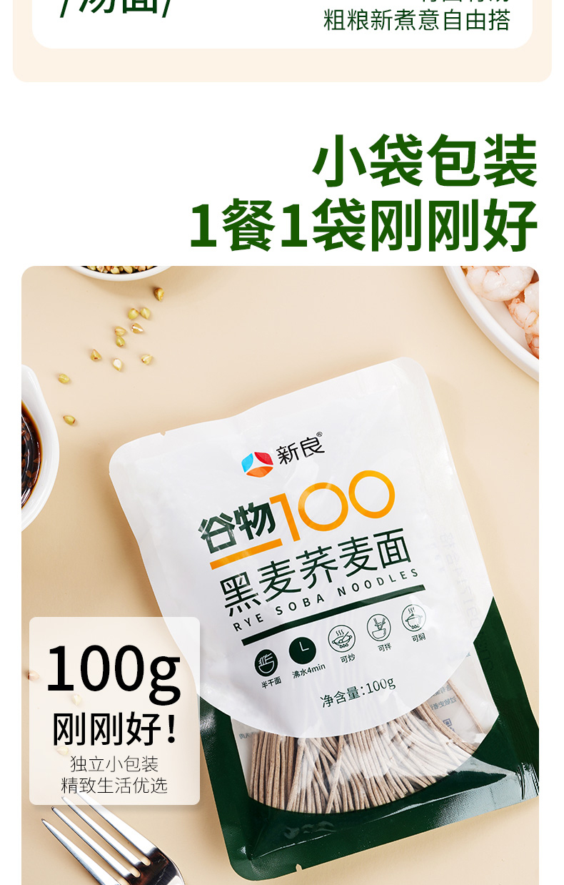 新良魔芋荞麦面黑麦荞麦面100g魔芋面低脂荞麦面0脂肪半干鲜面黑麦面条