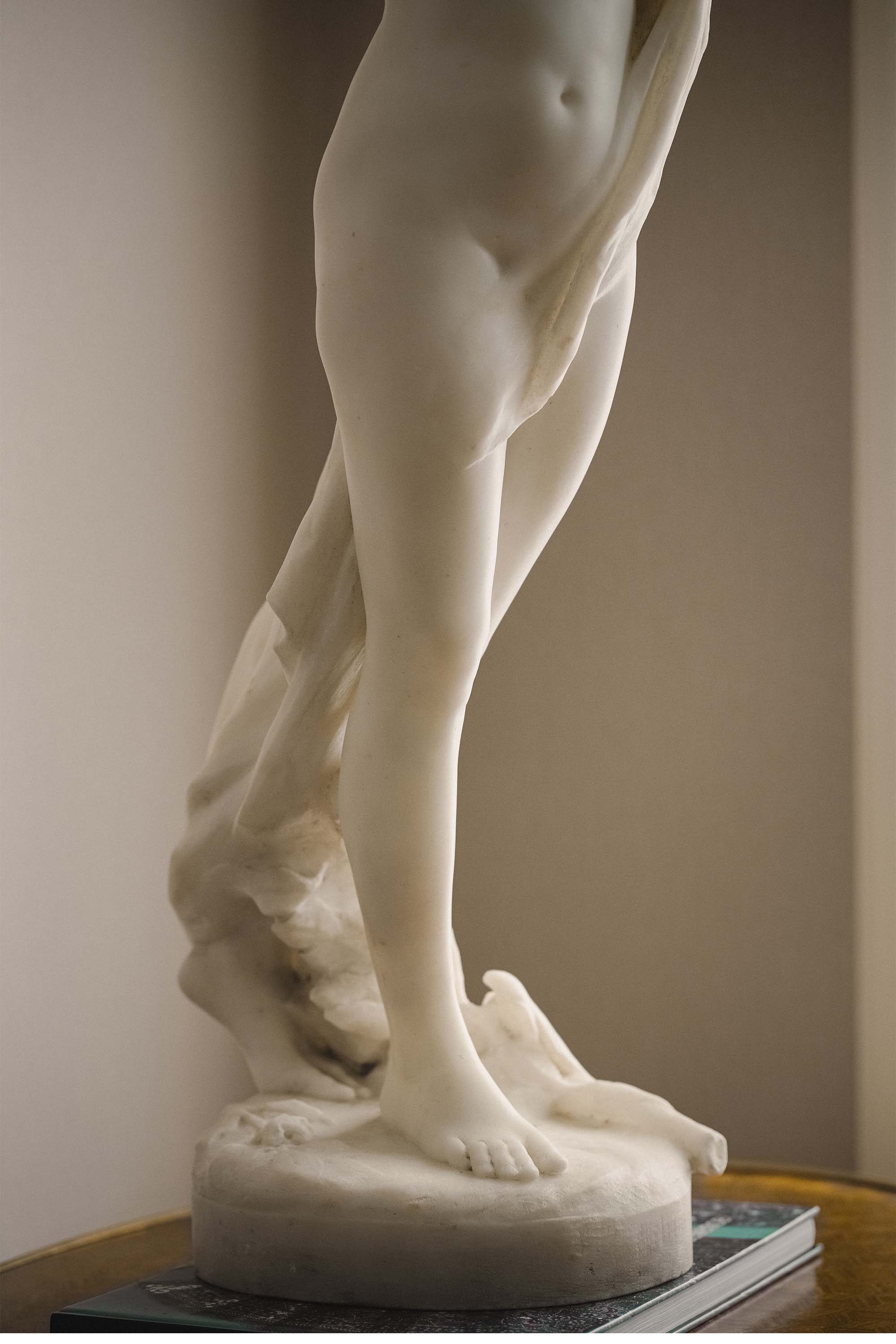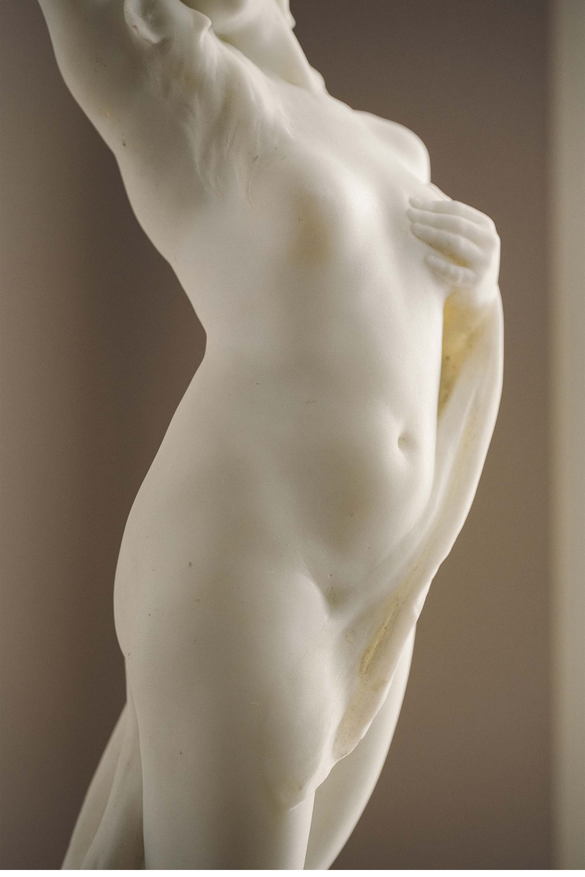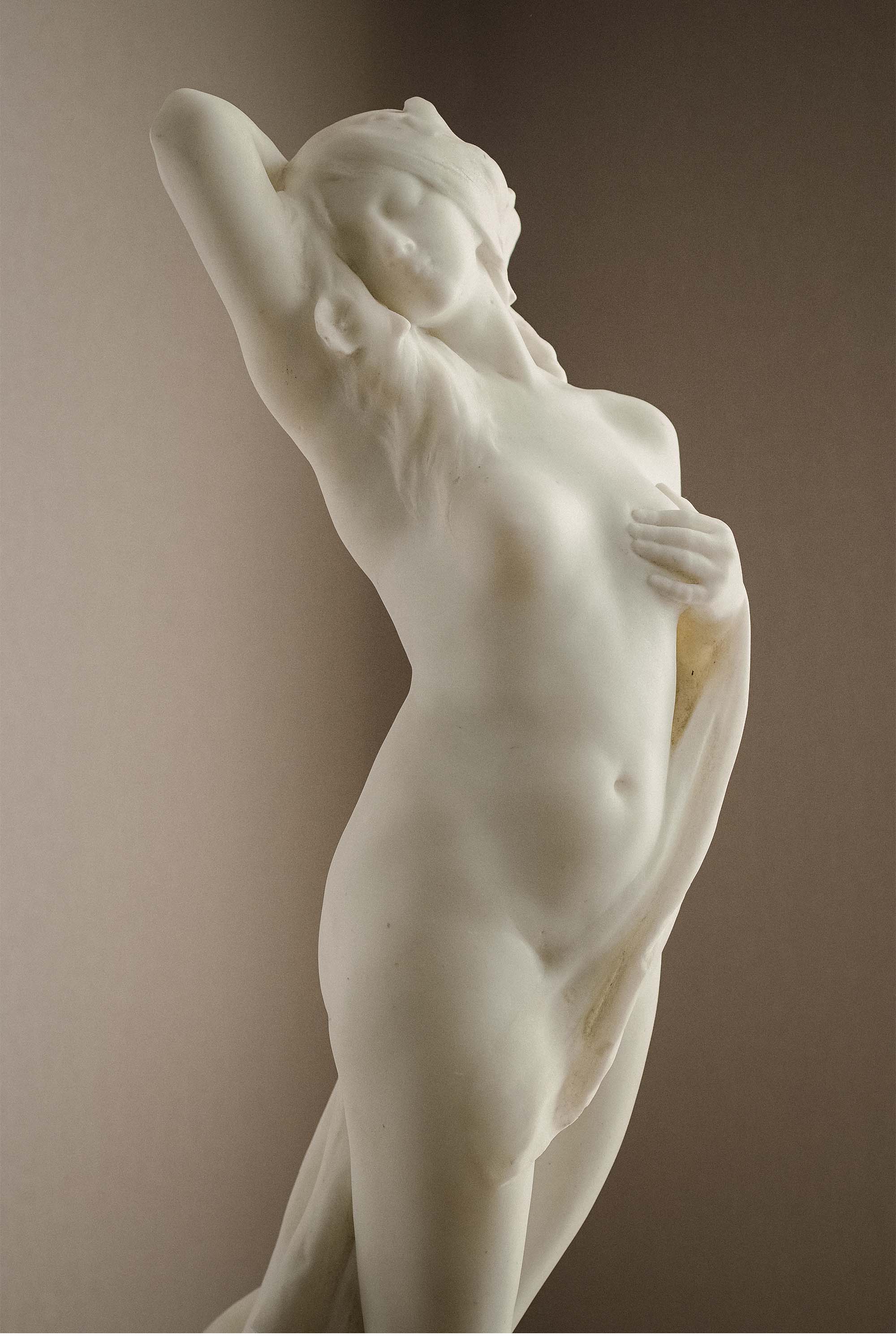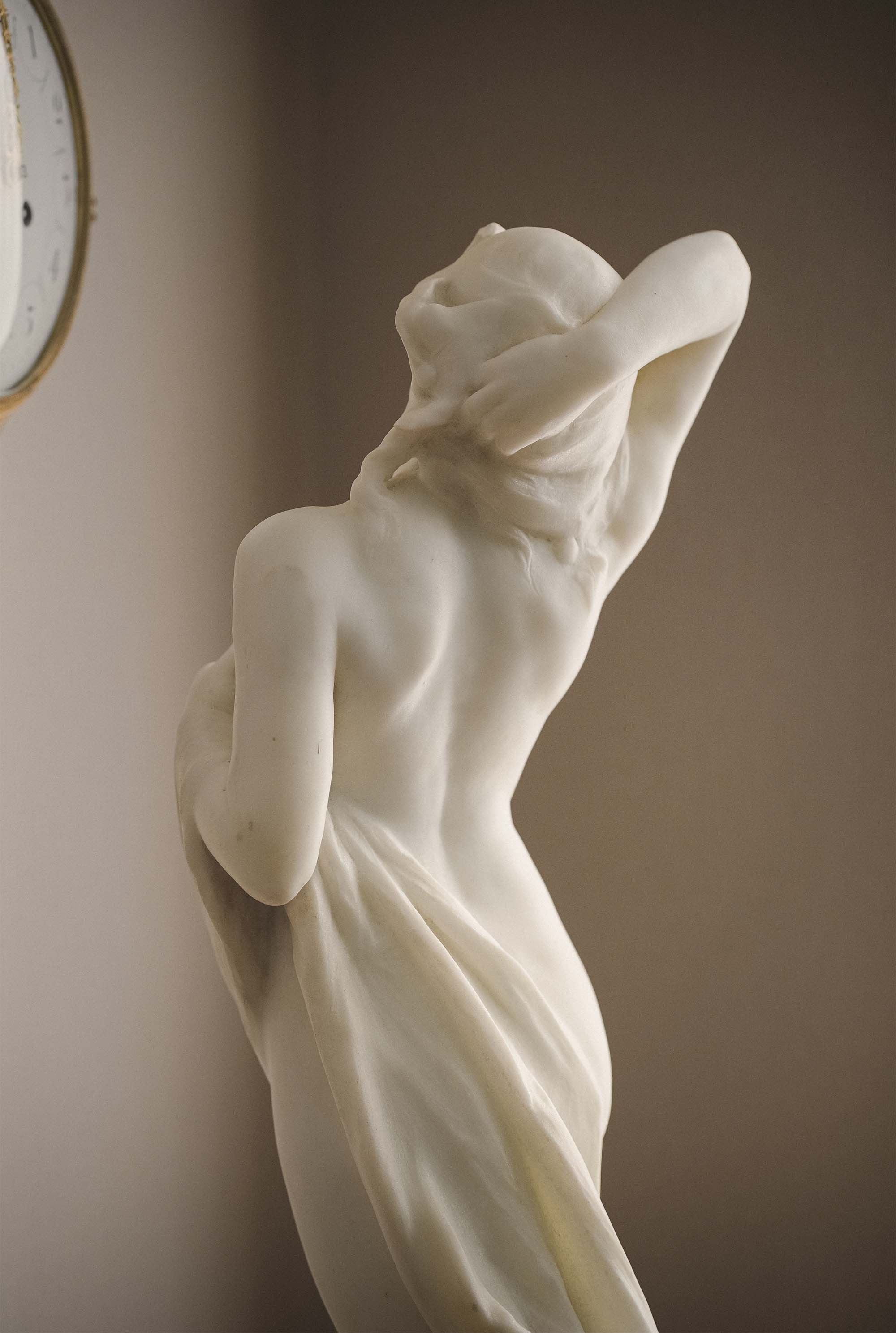 1900年代墨西哥雕塑家Jesús Fructuoso Contreras签名创作女性人物主题卡拉拉大理石雕塑《觉醒》