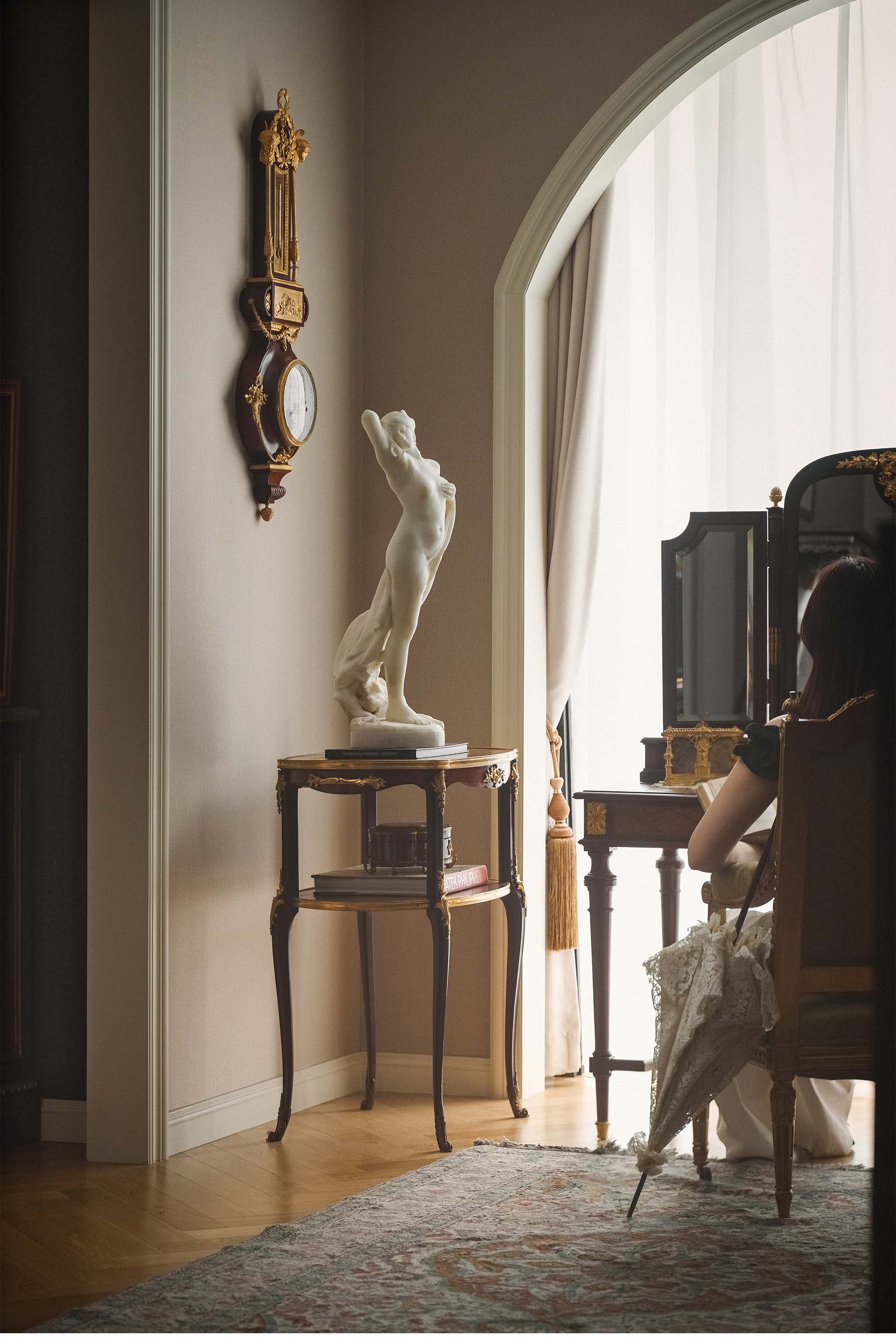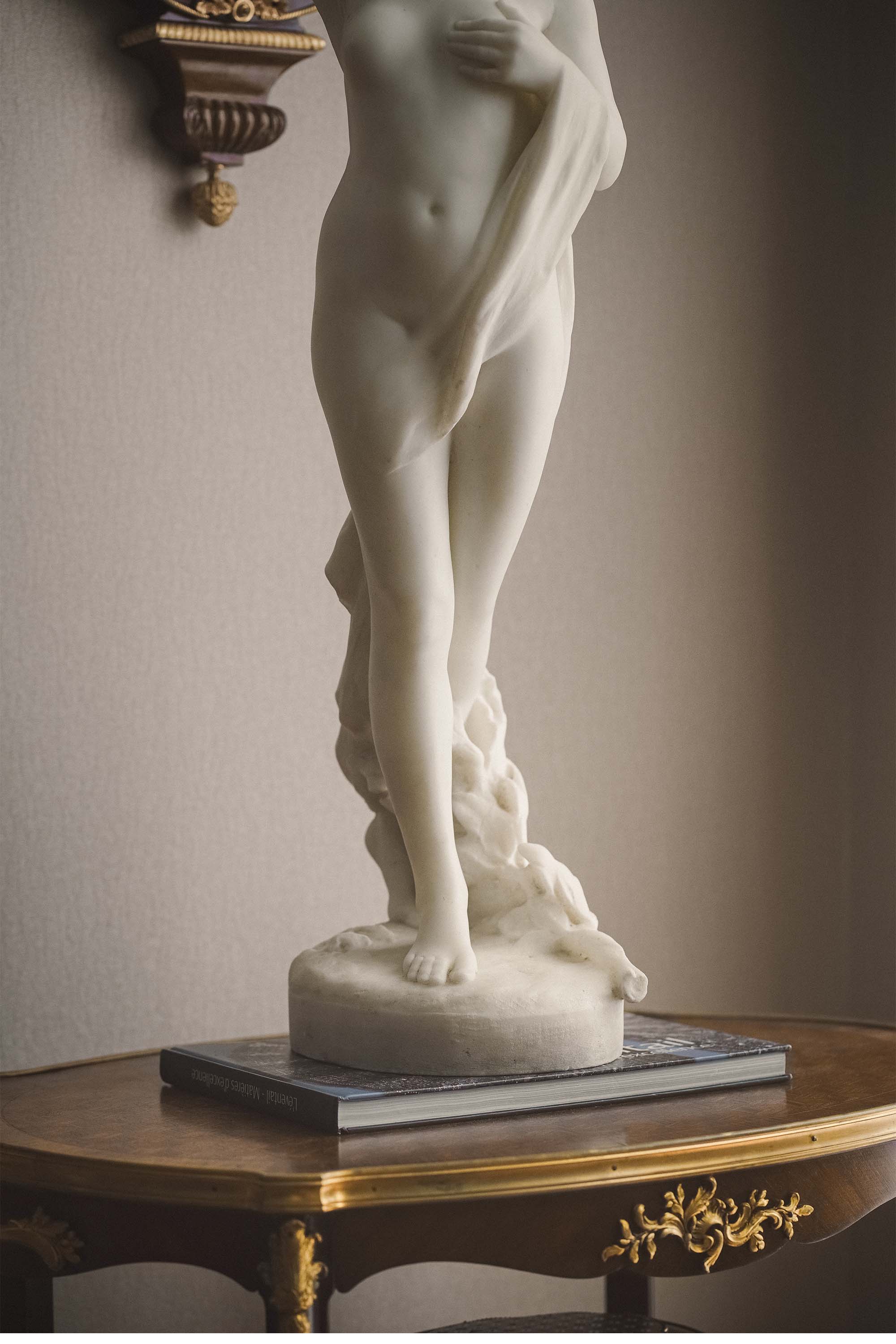 独角鹿西洋古董 1900年代墨西哥雕塑家Jesús Fructuoso Contreras签名创作女性人物主题卡拉拉大理石雕塑《觉醒》
