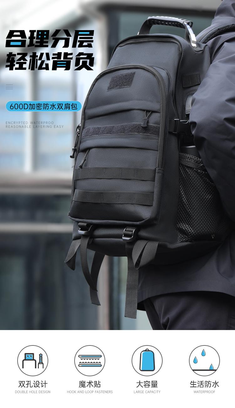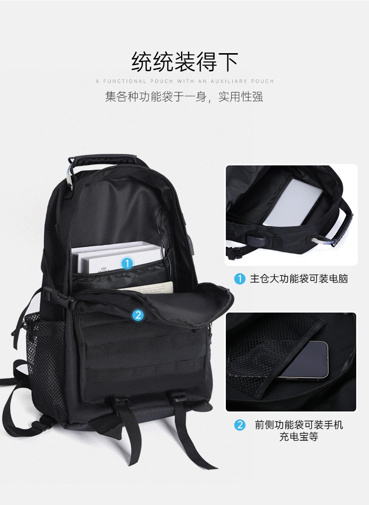【600D加密防水双肩包】大容量防水勤务收纳包 外置USB插口双肩背包
