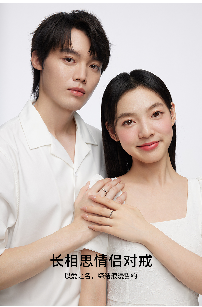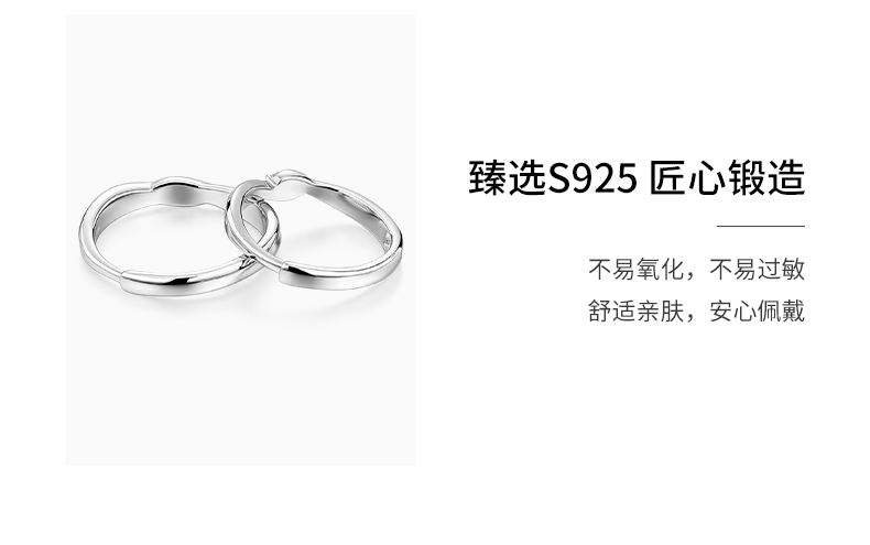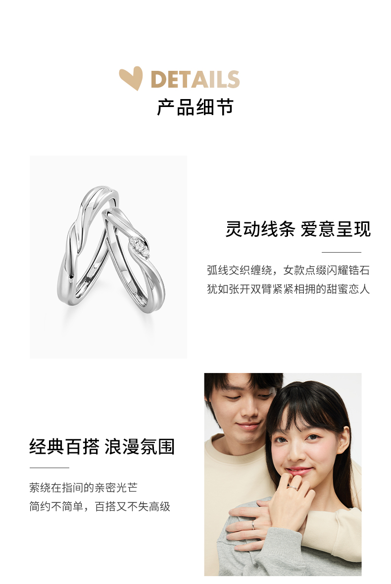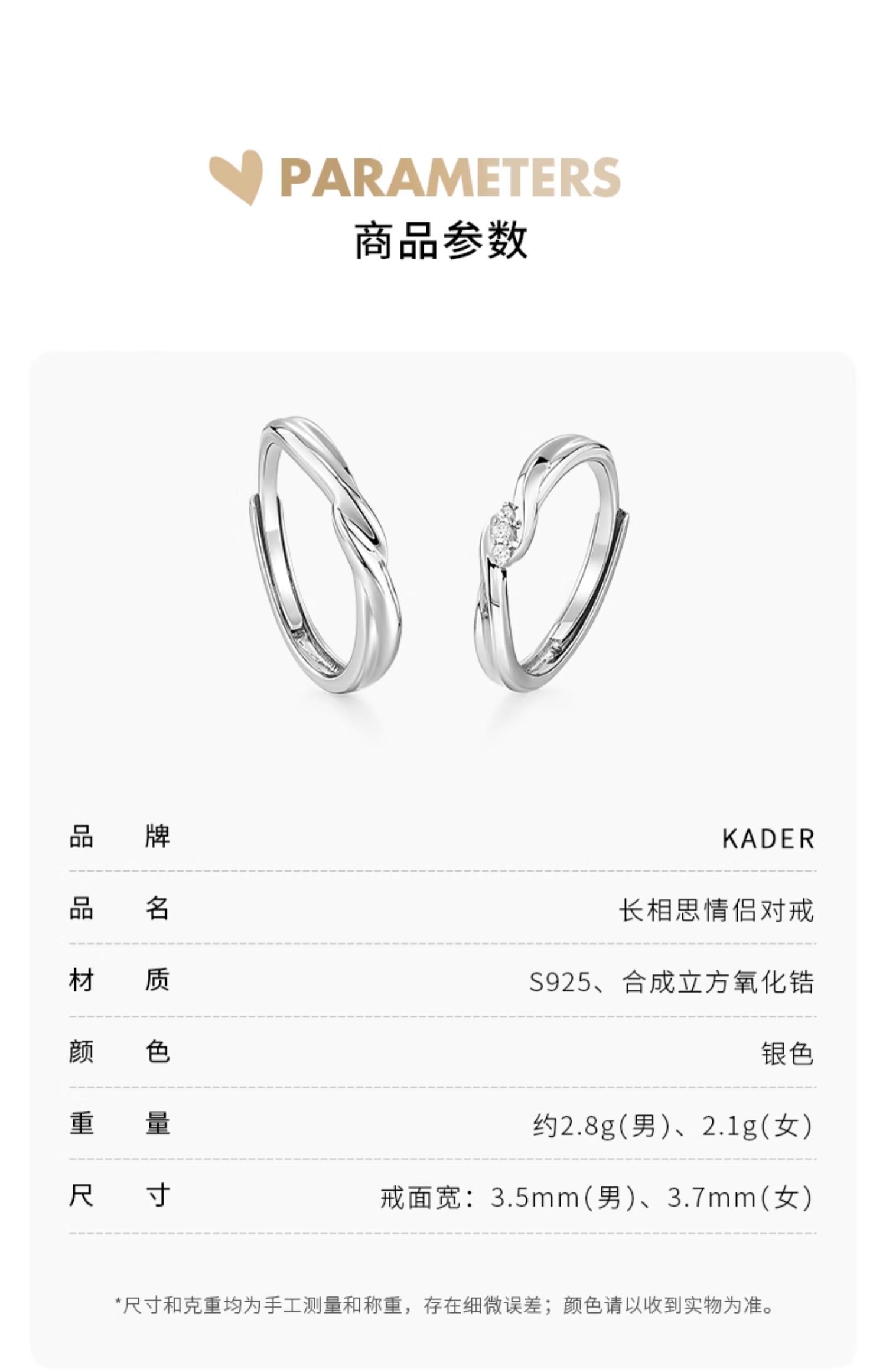 KADER卡蒂罗 共渡爱河 单戒 情侣戒指 女 925银 纯银对戒 开口戒指 情侣礼物