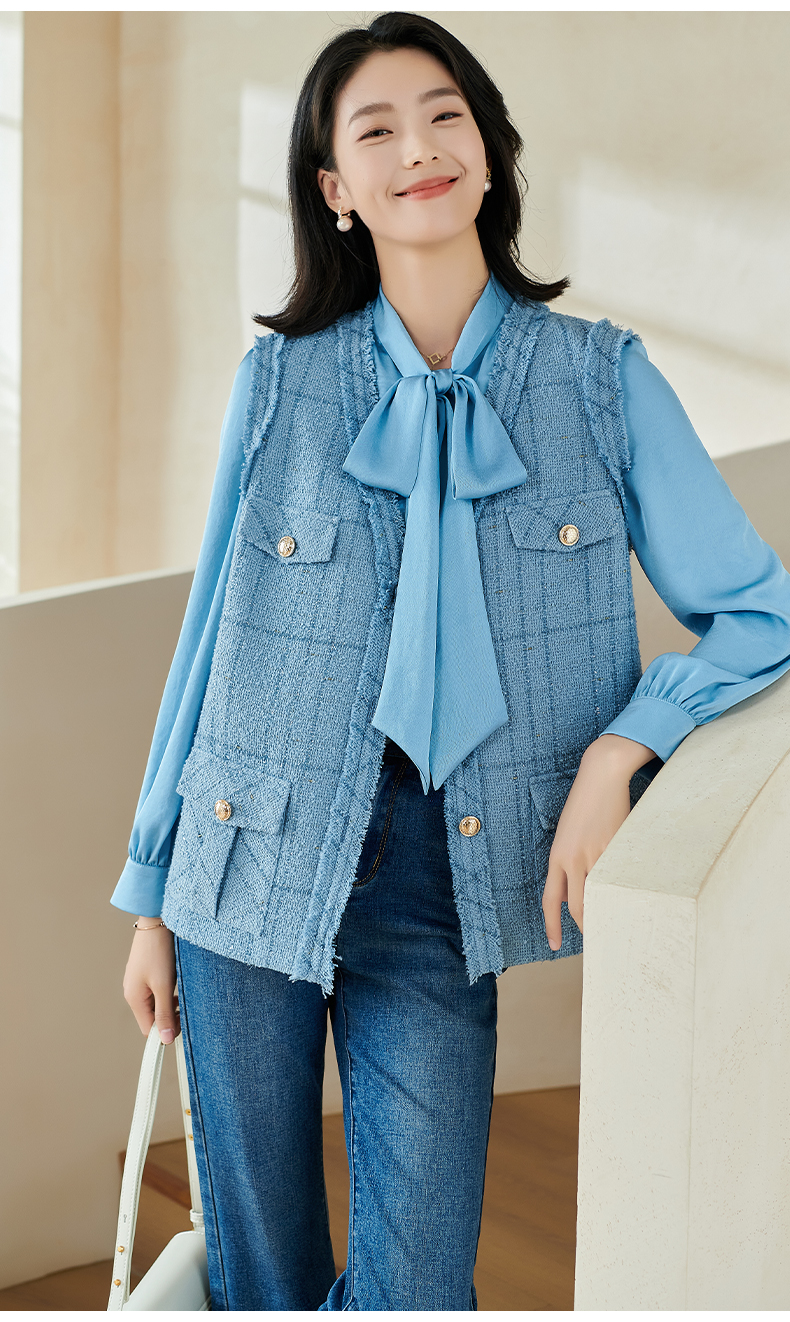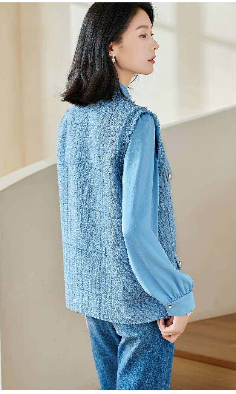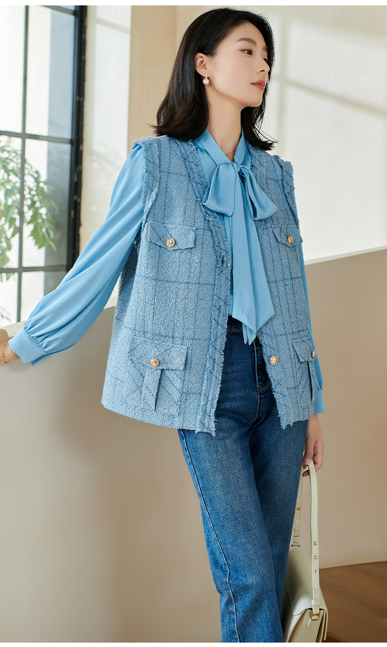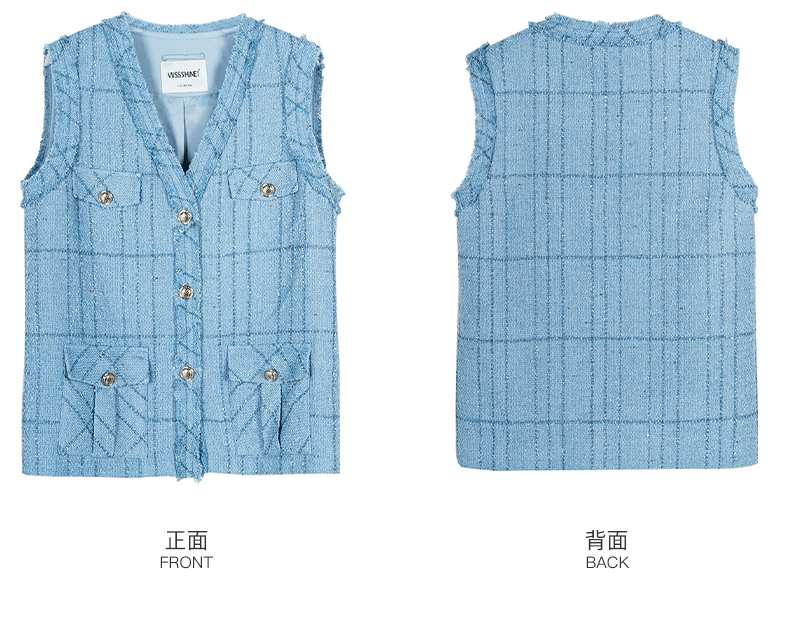 米思阳2026春季新款小香风时尚格纹马夹宽松v领无袖保暖上衣0100