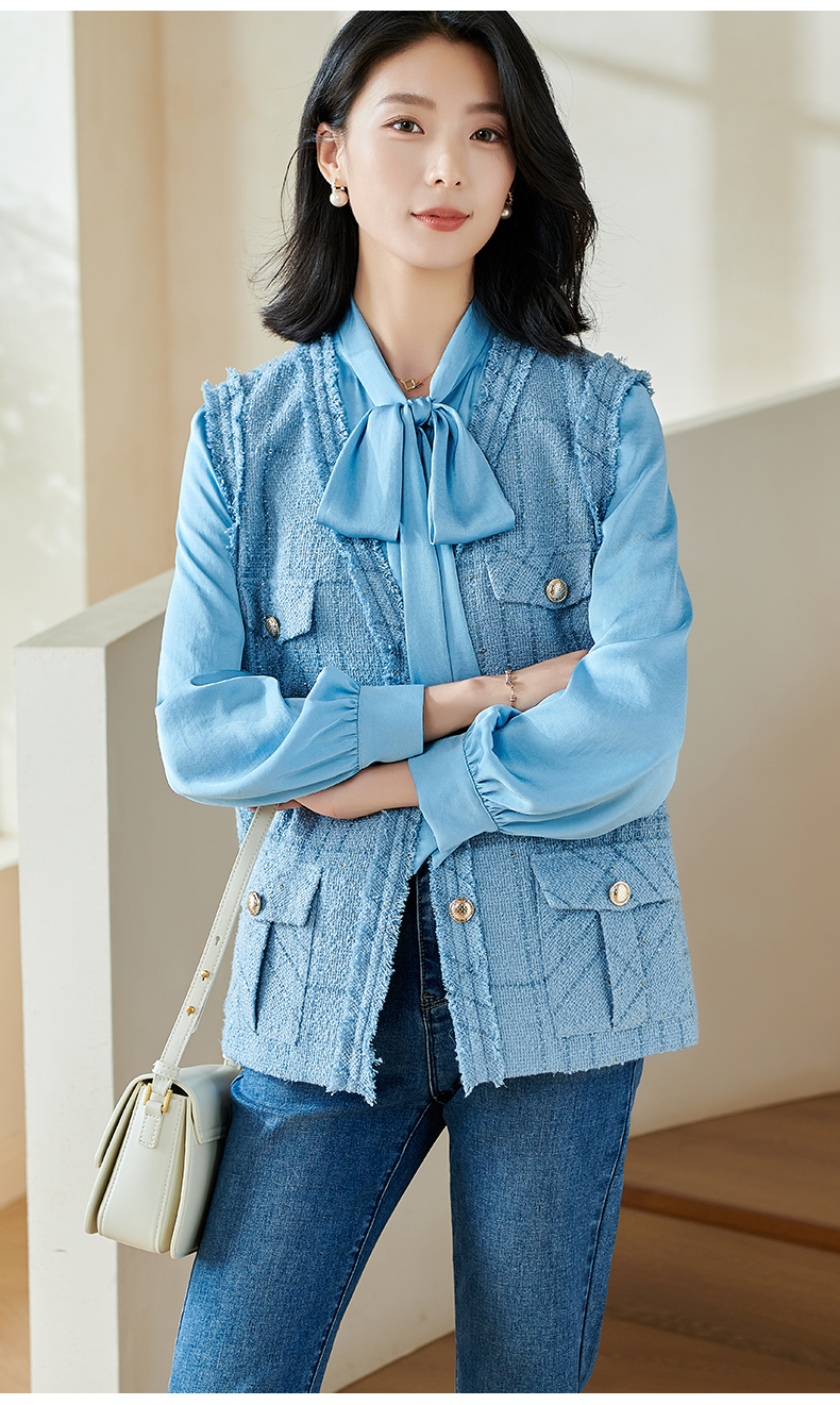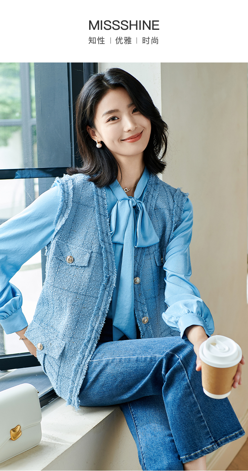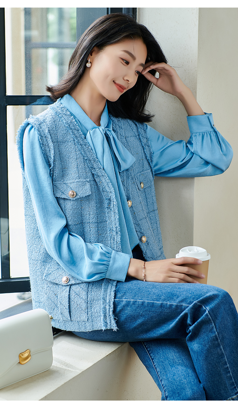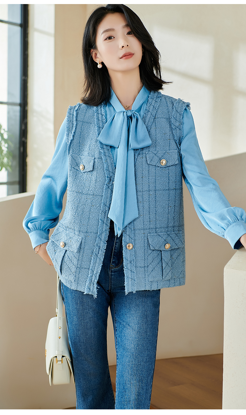 米思阳2026春季新款小香风时尚格纹马夹宽松v领无袖保暖上衣0100