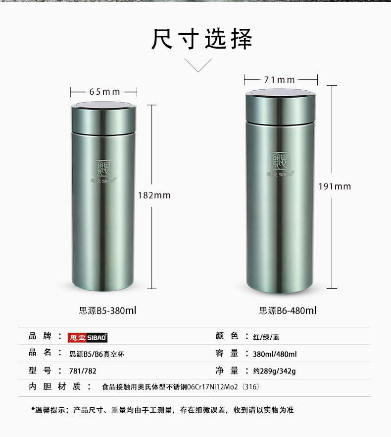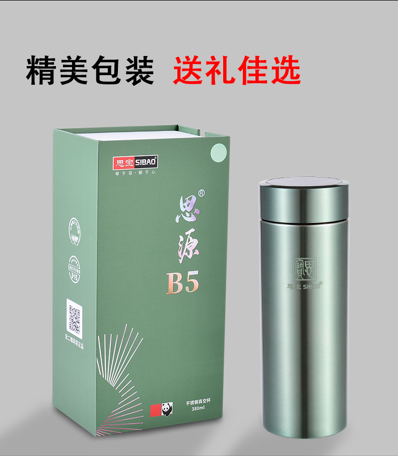 思宝官方旗舰店思源B5/B6真空保温杯带盖水杯304不锈钢家用水杯
