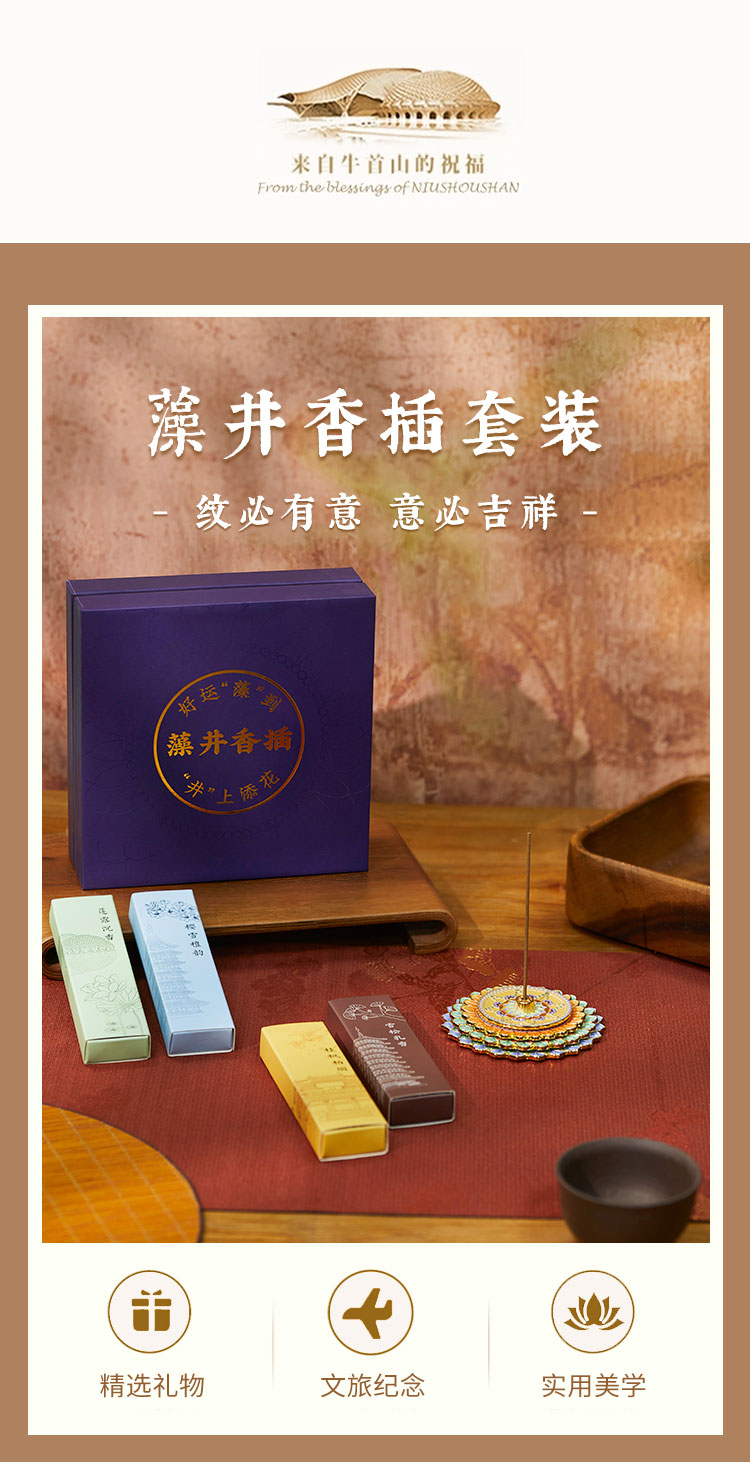 牛首山文创藻井香插线香套装可分层磁吸冰箱贴精美礼盒南京创意伴手礼