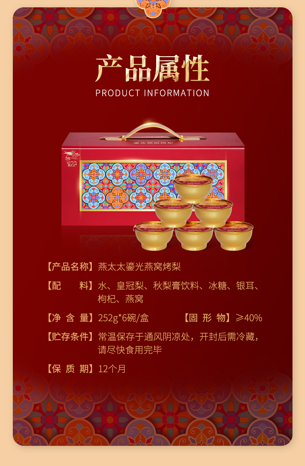 燕太太鎏光燕窝烤梨礼盒装(252g*6碗)