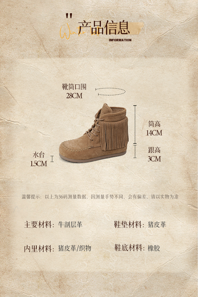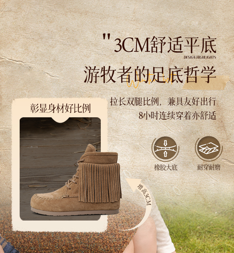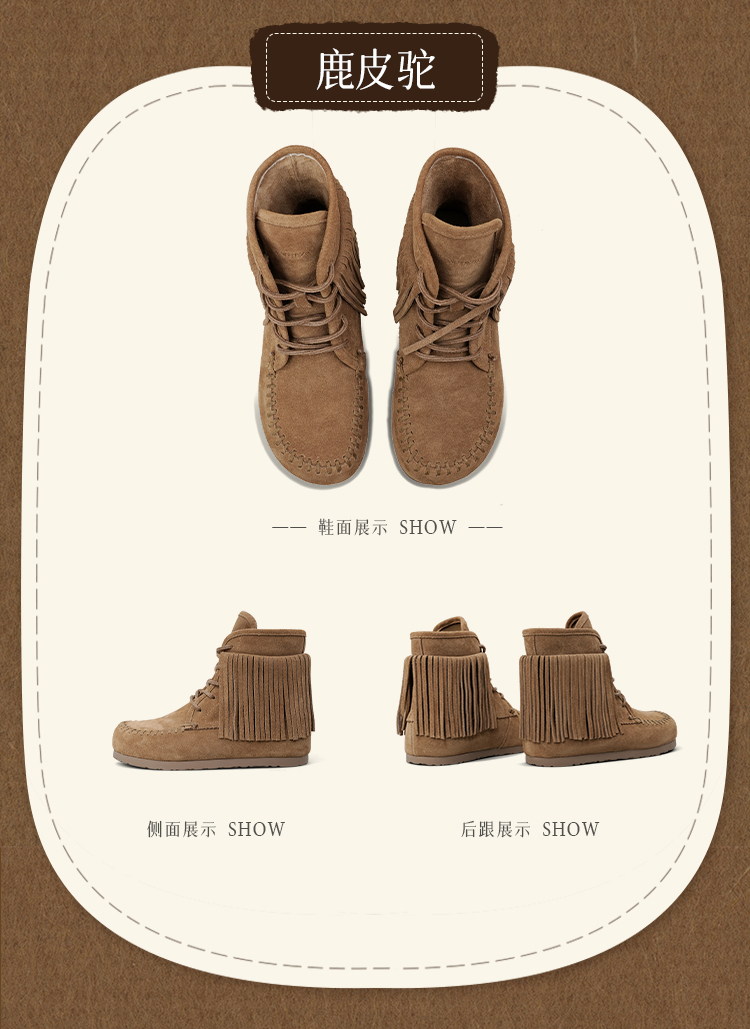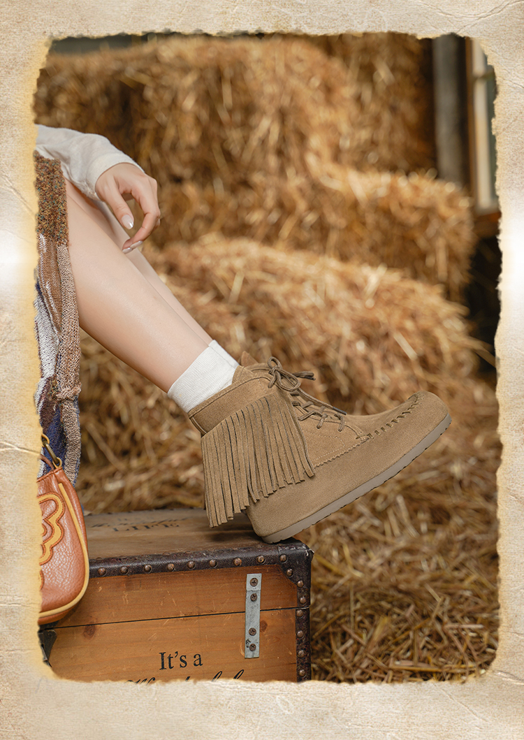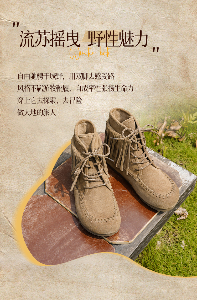 Safiya/索菲娅2025流苏游牧风系带休闲绒面复古百搭中筒西部靴SFD4116419