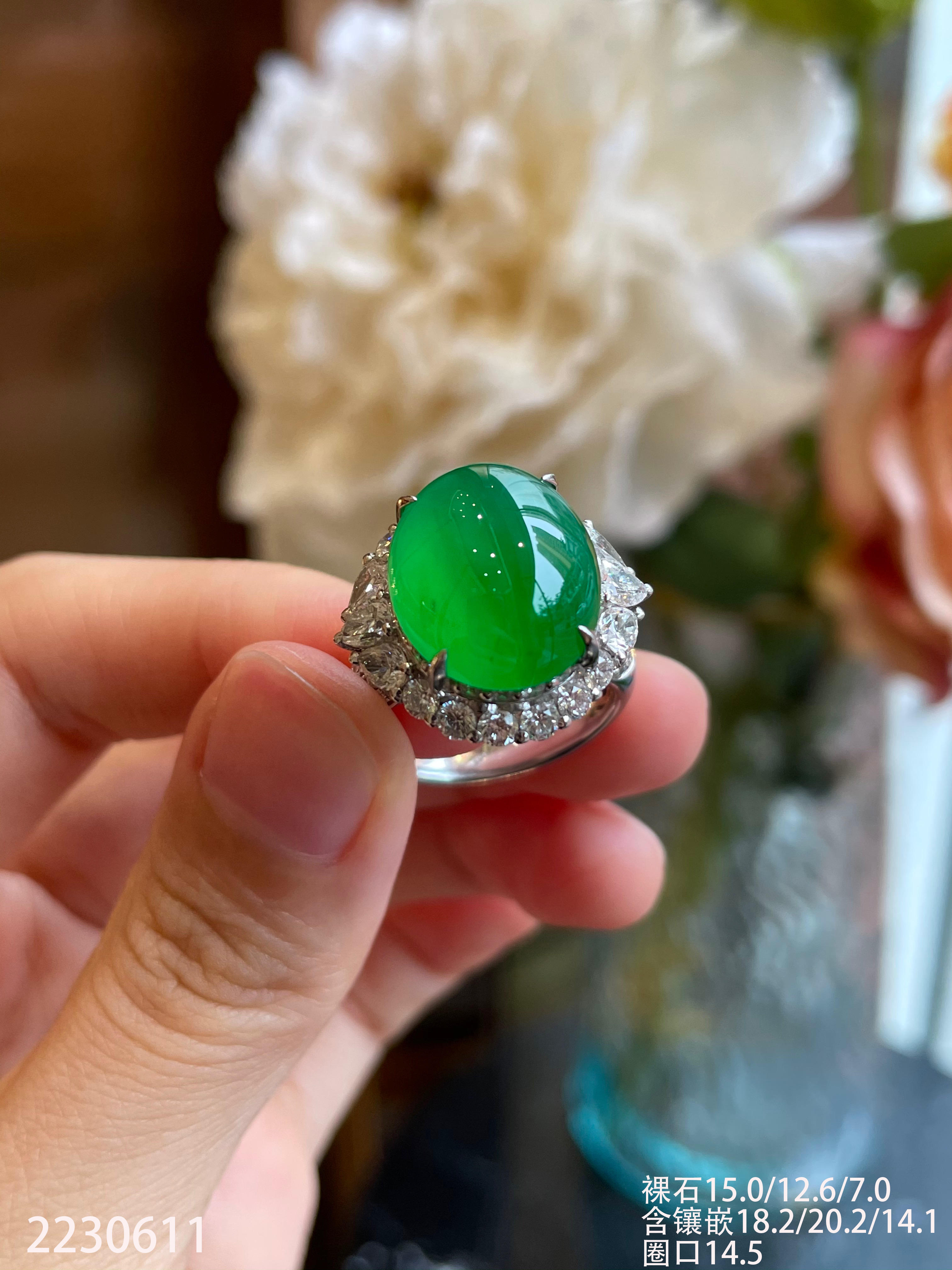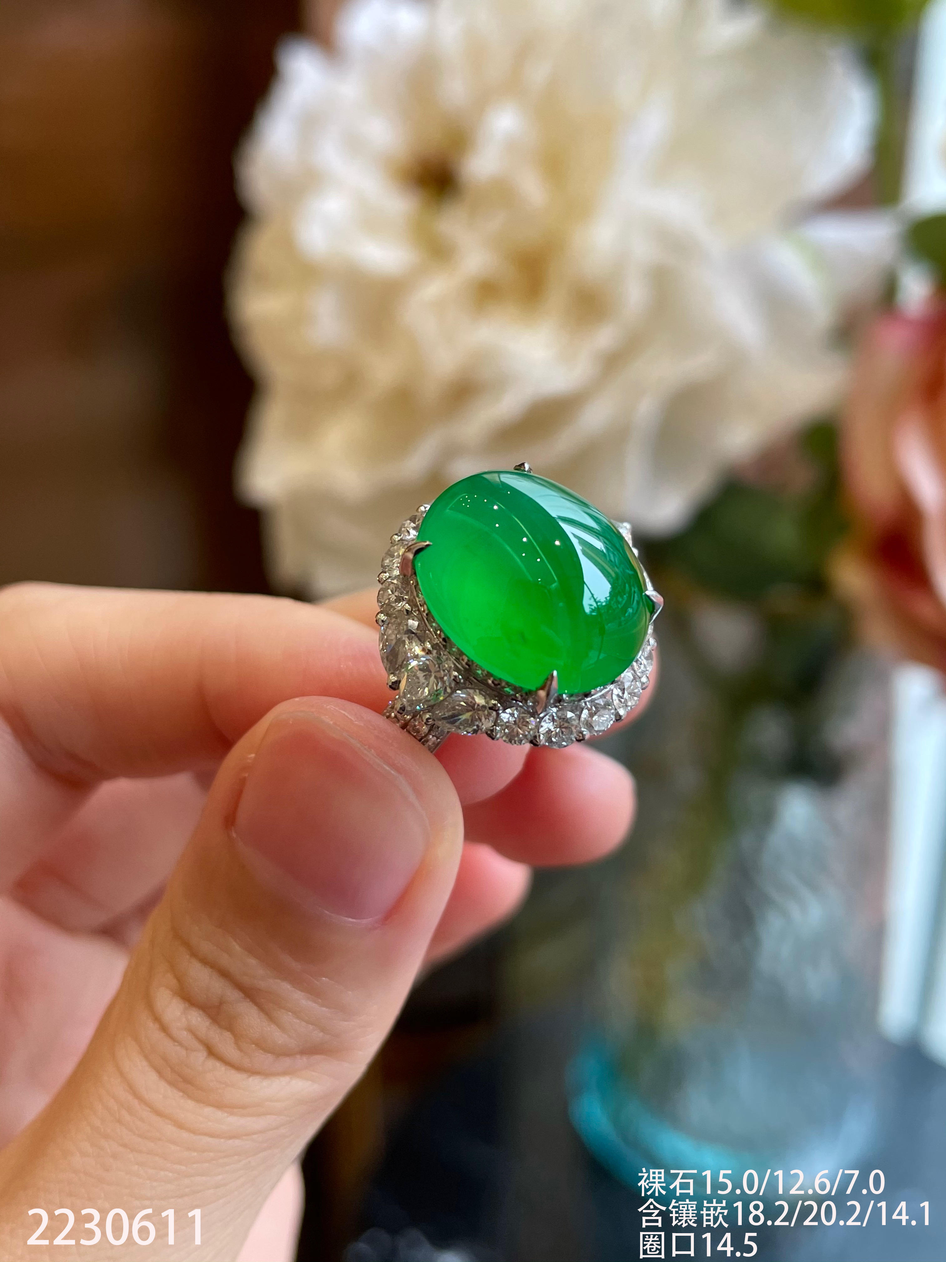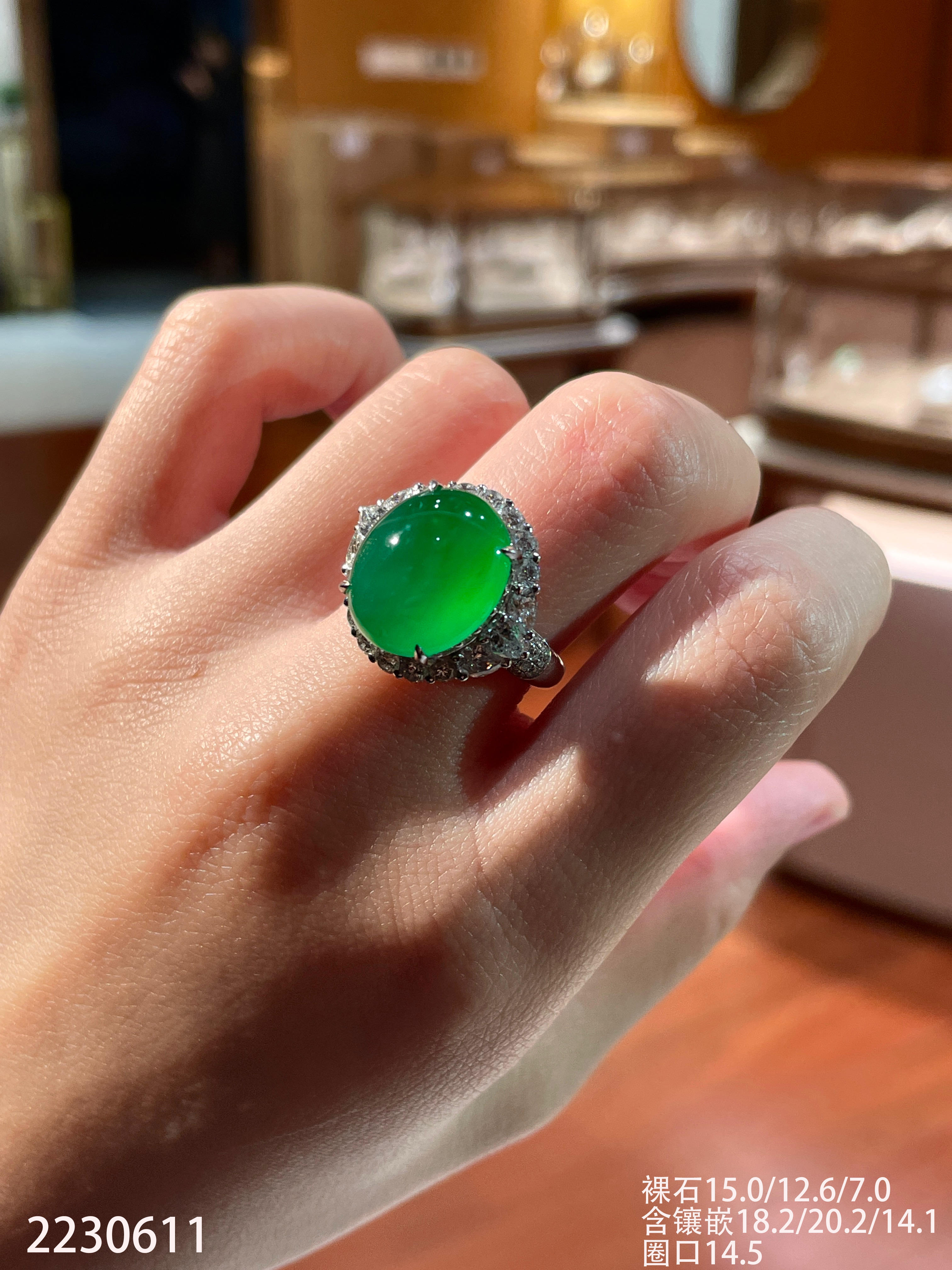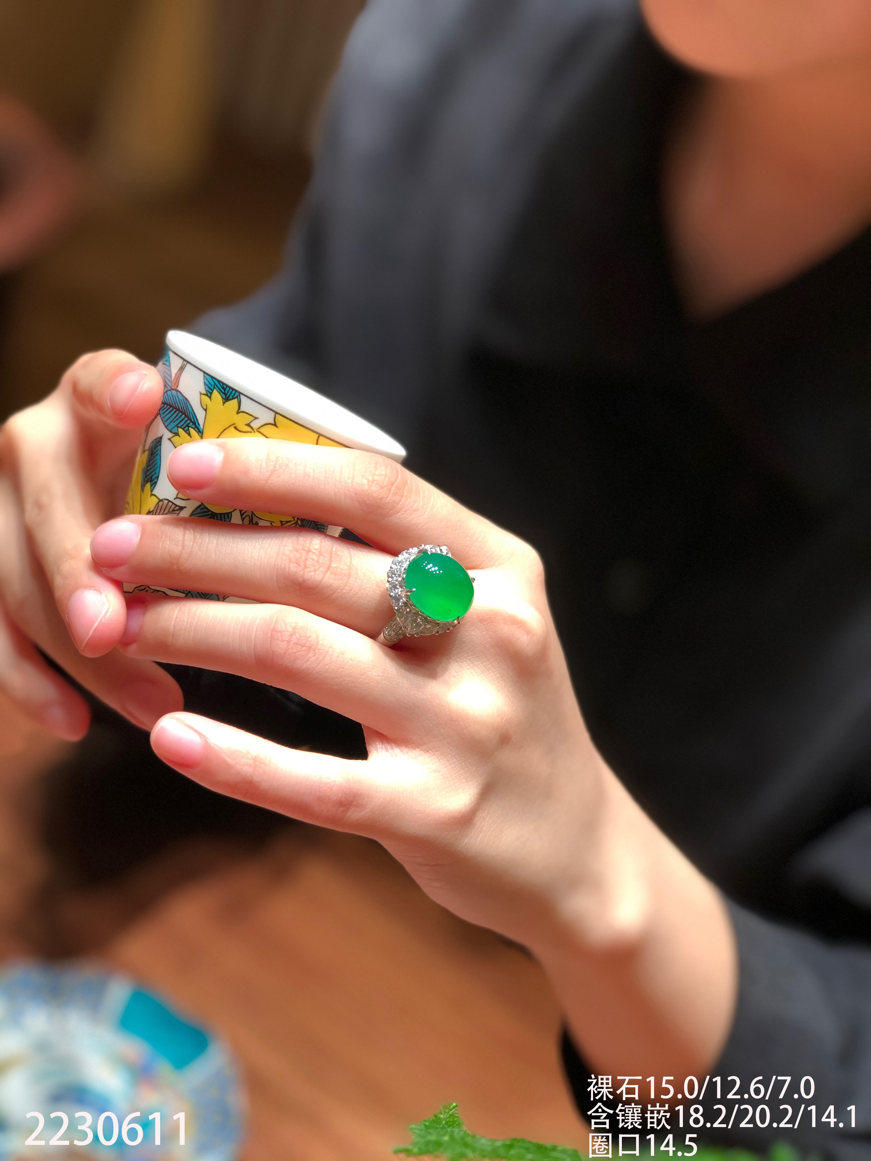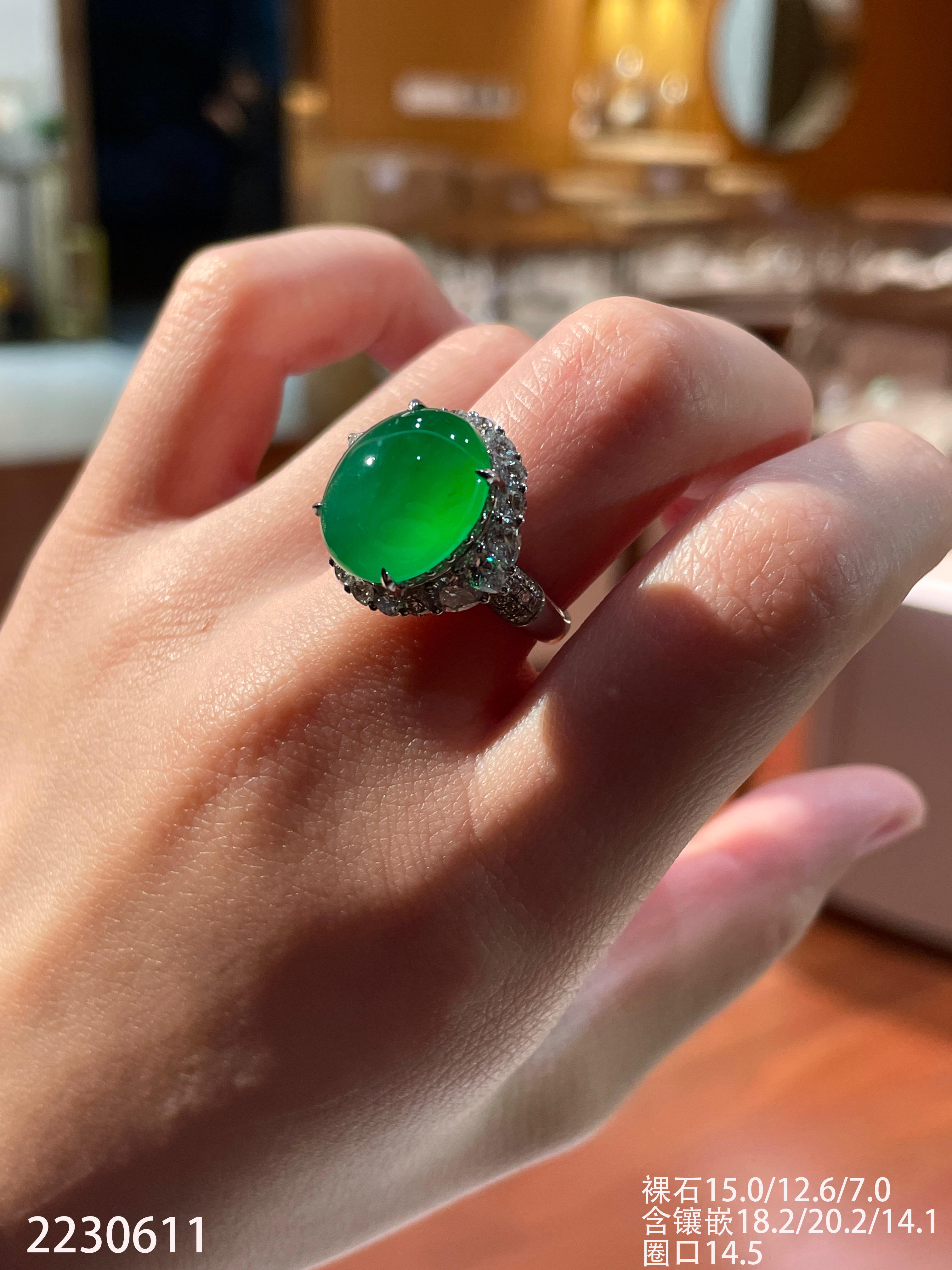 近玻璃木纳艳绿蛋面戒指【2230611】具体价格微信咨询