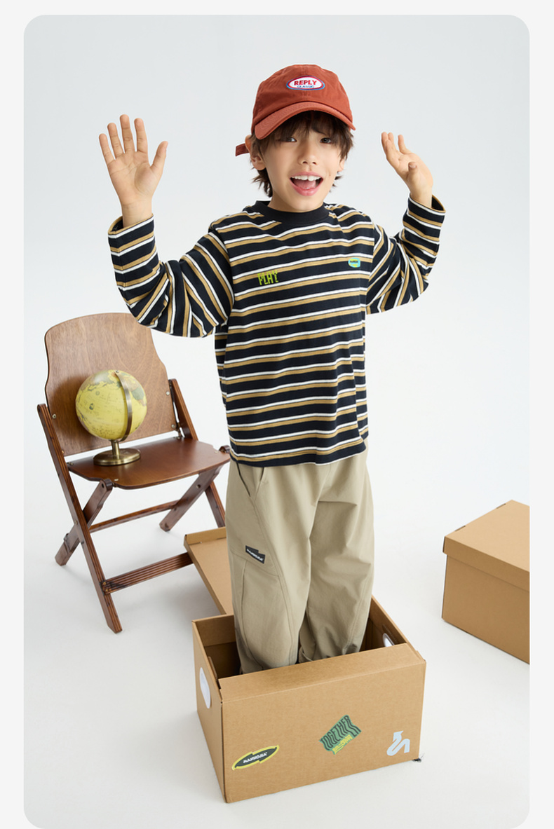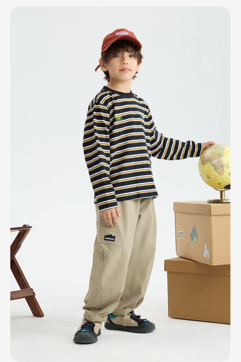 MANHOJIA【条纹控】儿童长袖T恤复古条纹纯棉亲肤柔软打底T恤