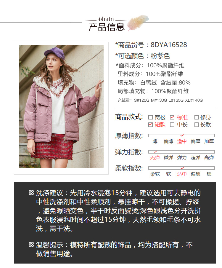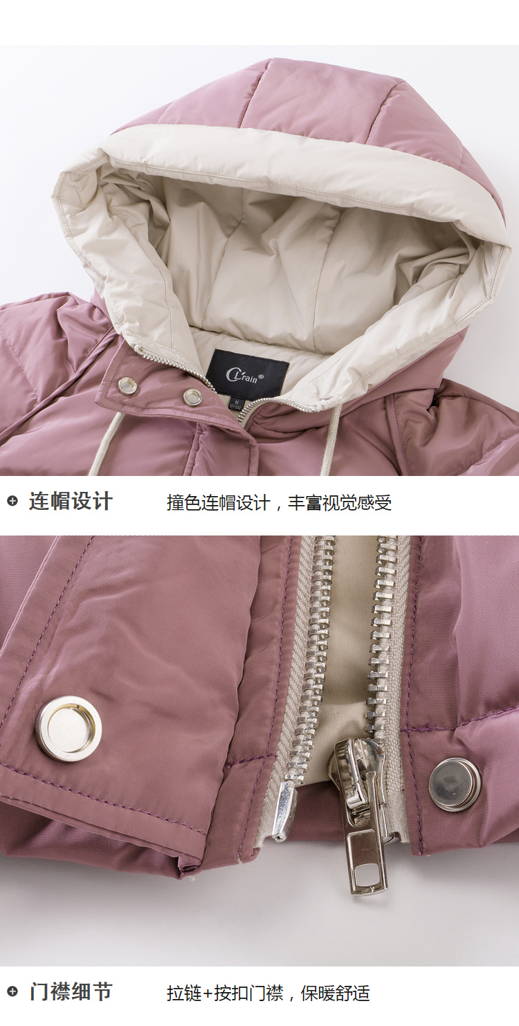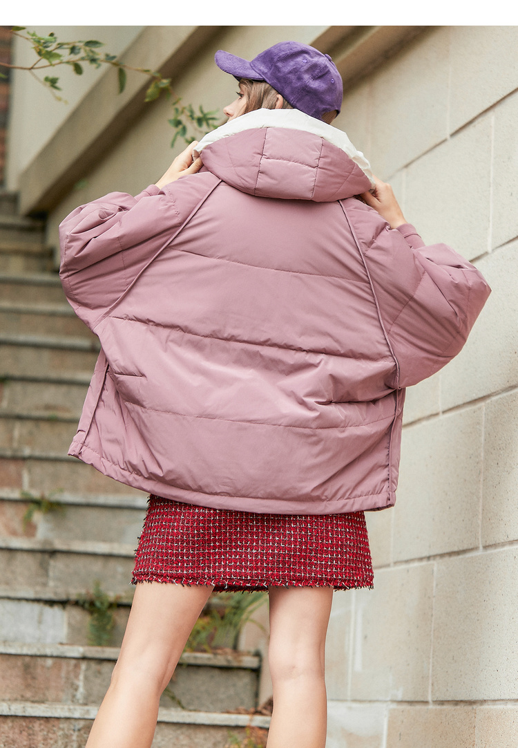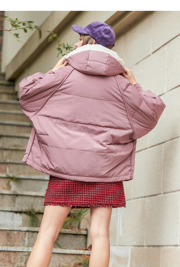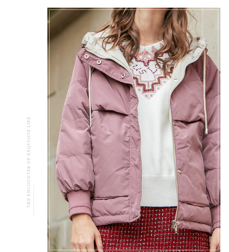 欧芮儿粉紫色连帽羽绒服女2019新款冬复古百搭短款外套百搭