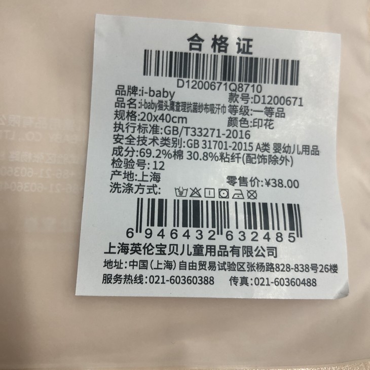 i-baby纱布吸汗巾幼儿园宝宝婴幼儿垫背巾儿童纯棉隔汗巾