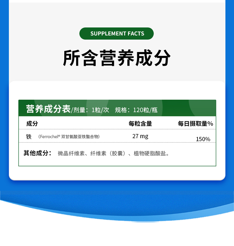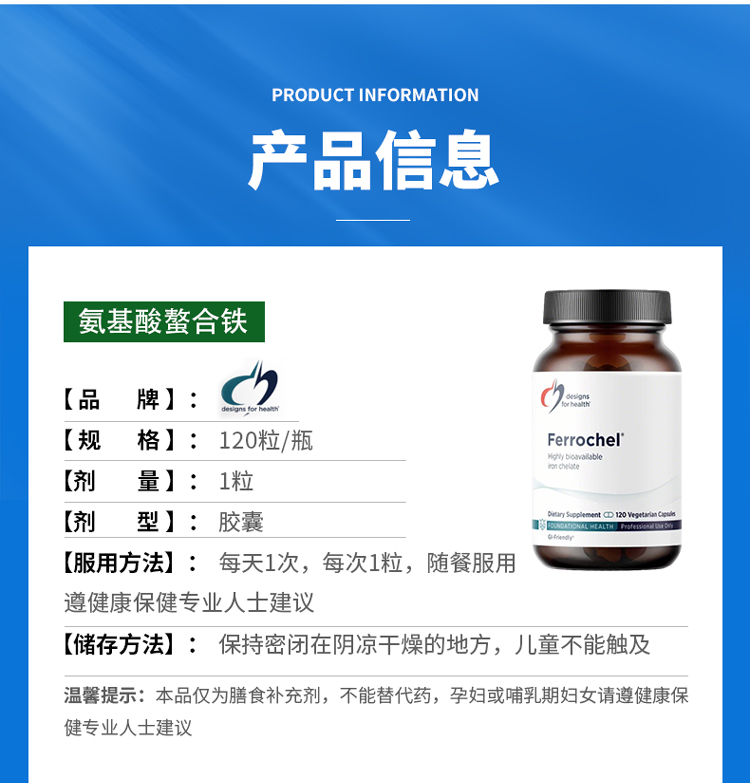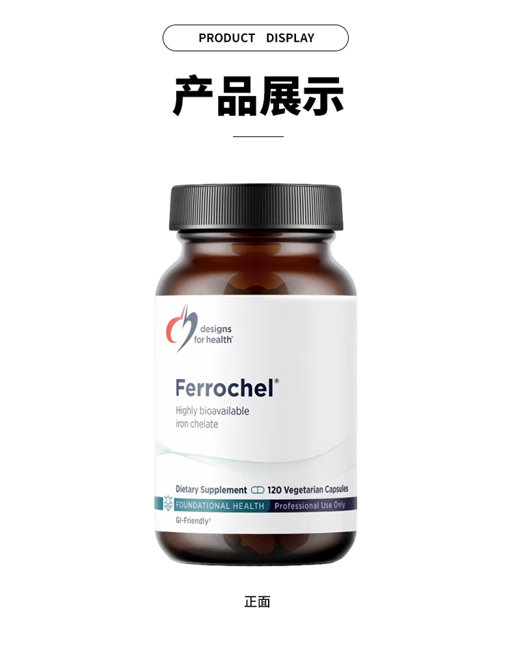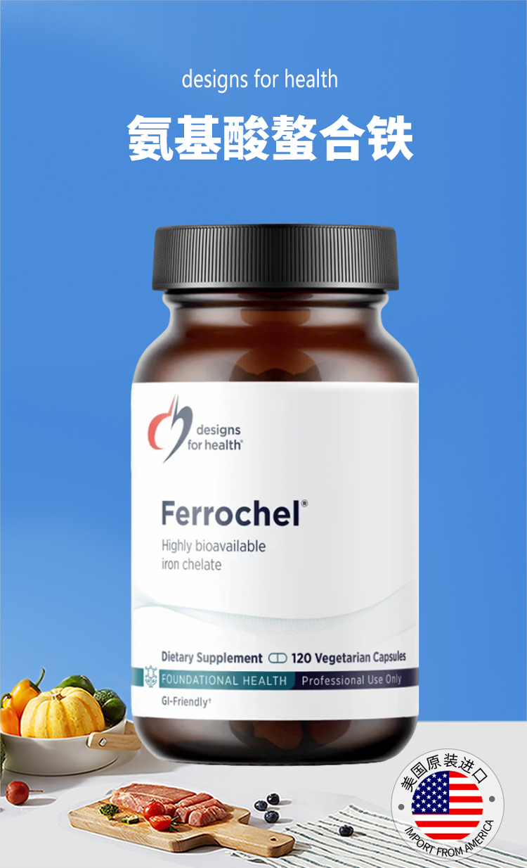 【效期至27年6月】氨基酸螯合铁胶囊 Designs for health Ferrochel® Iron Chelate caps 120粒/瓶