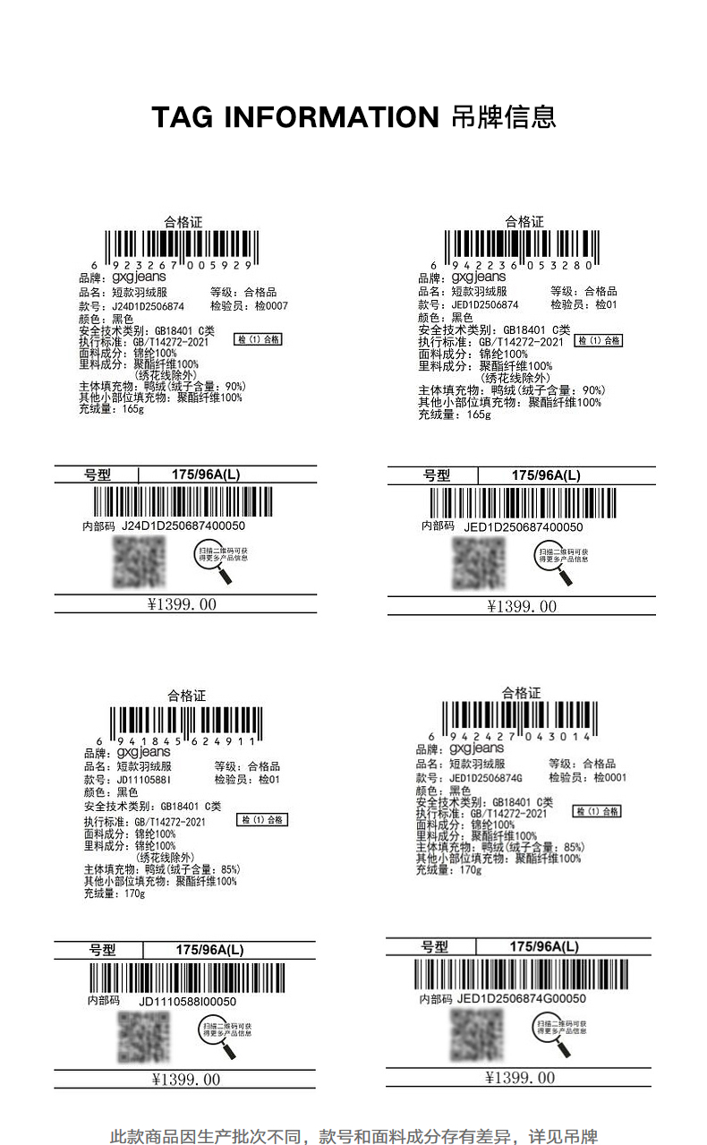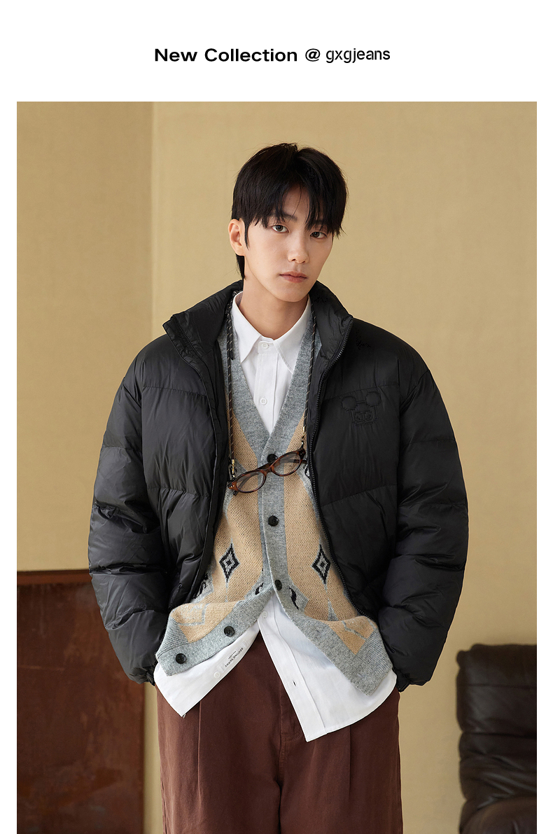 gxg.jeans男装冬季黑色短款立领羽绒服男青年J24D1D2506874