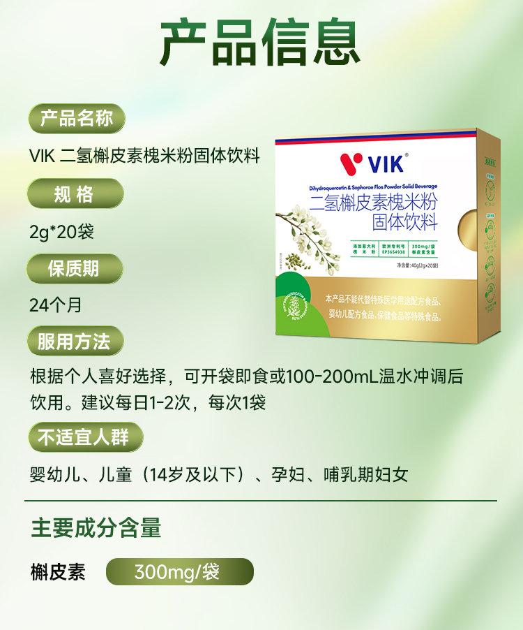 VIK 二氢槲皮素槐米粉固体饮料 每条300mg高含量 20条/盒