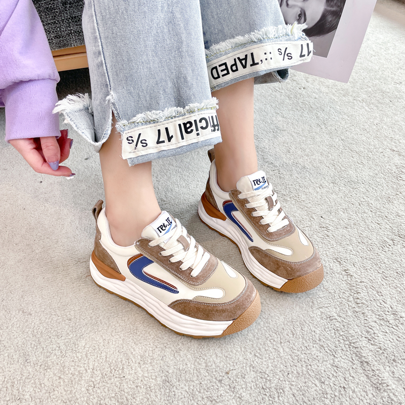 豪行春季新款22109602休闲系带老爹鞋女轻便时尚百搭厚底增高鞋女