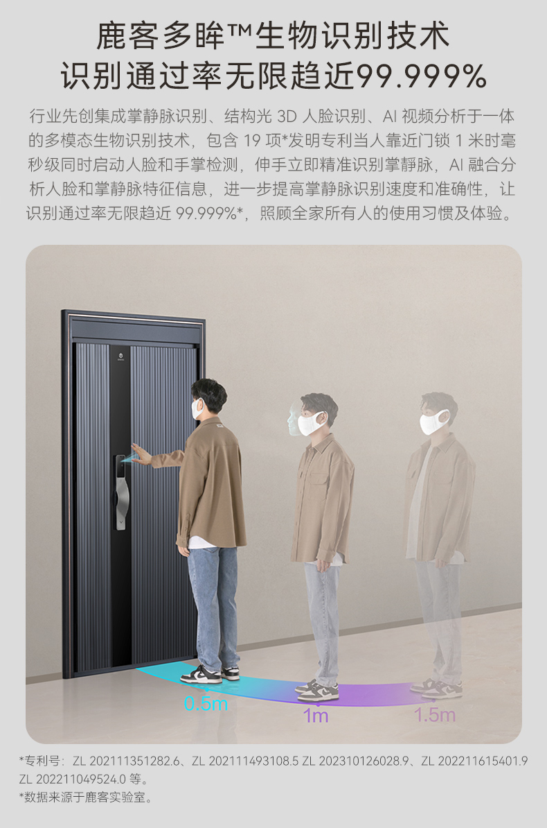 2026【鹿客员工内购】鹿客智能门锁掌静脉锁掌心锁 人脸识别猫眼大屏指纹锁密码锁魅影S7