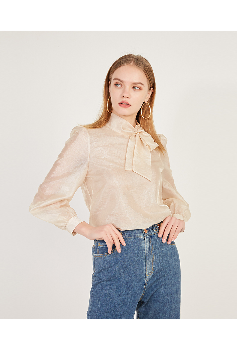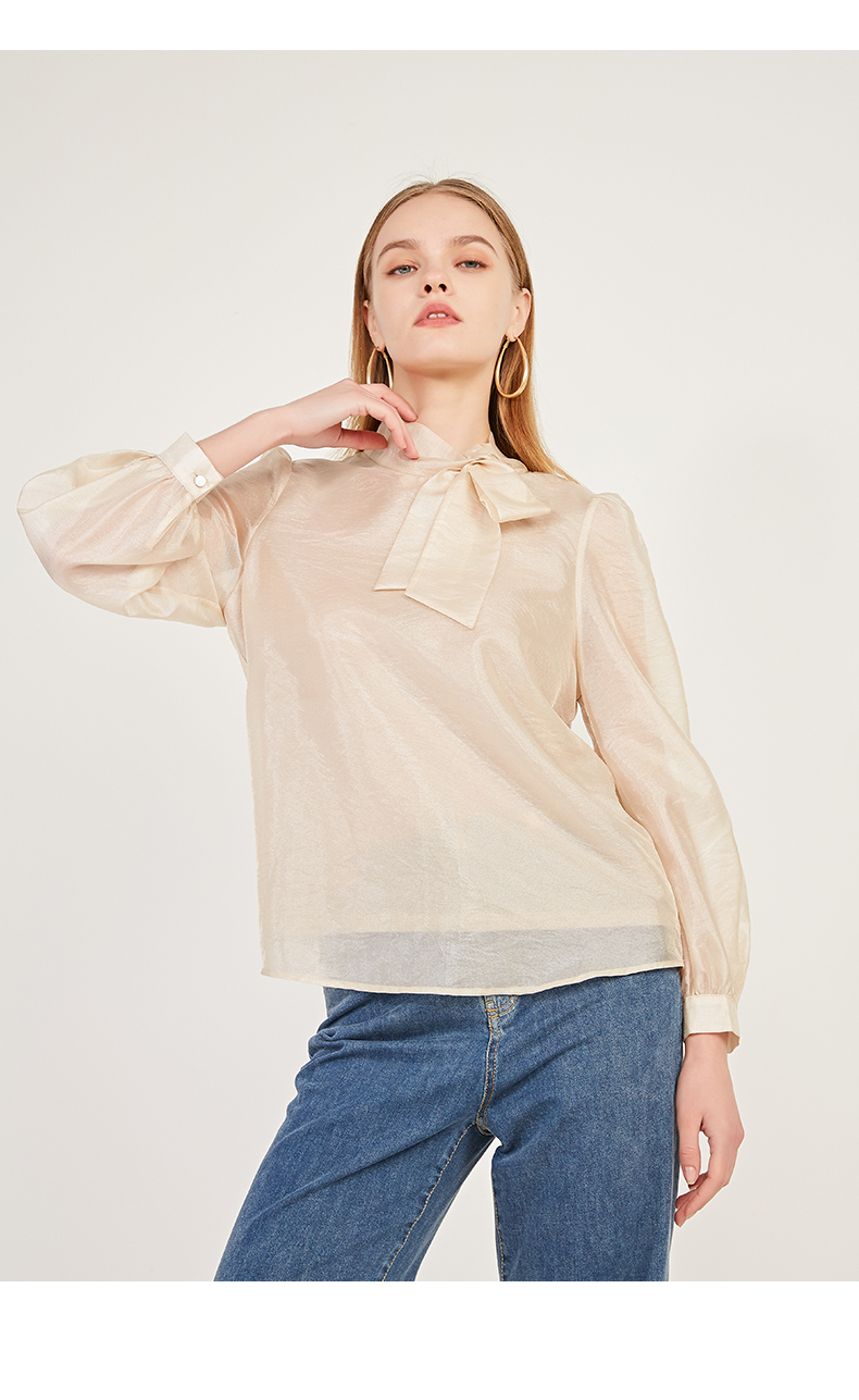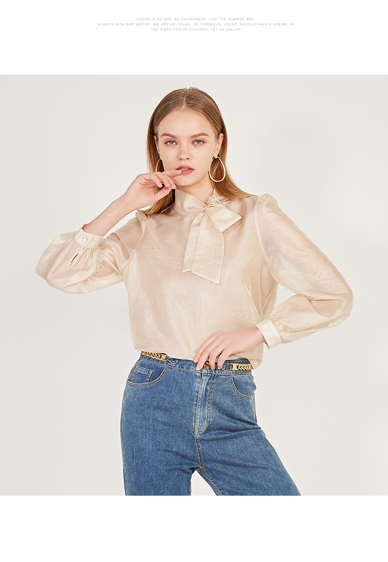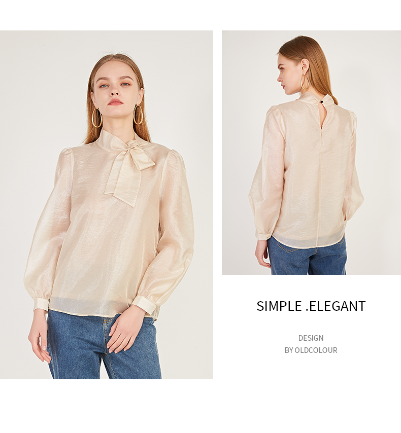 oldcolour2021春季休闲气质长袖宽松蝴蝶结领套头衬衫女N12013216