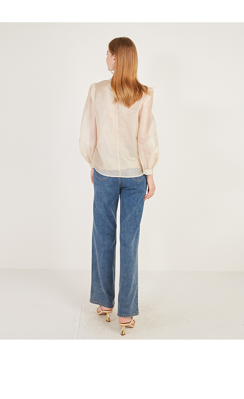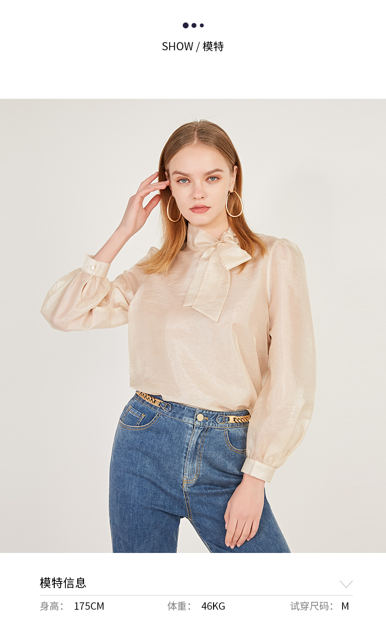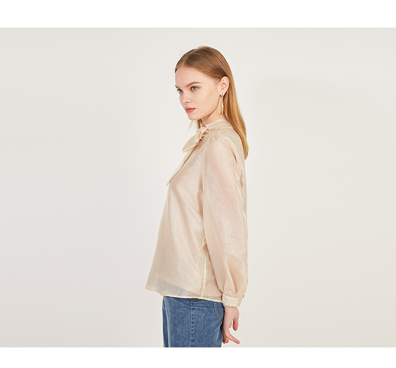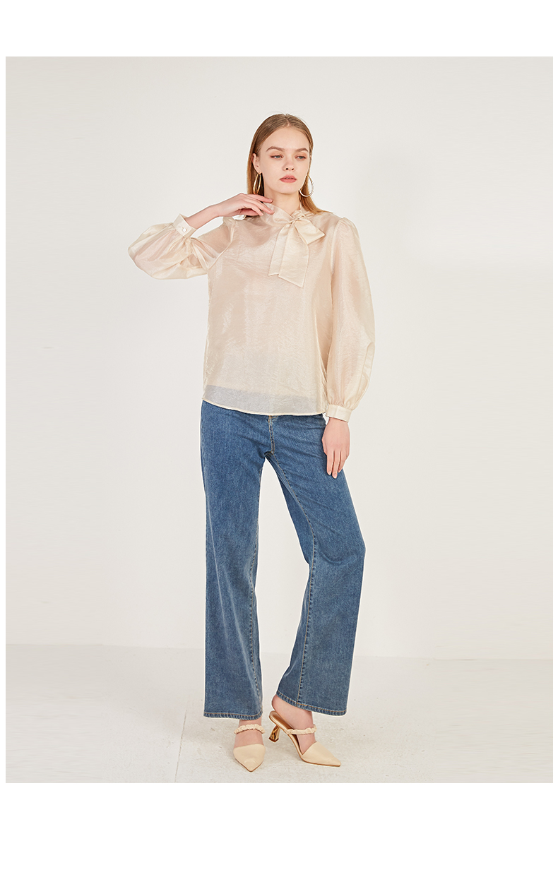 oldcolour2021春季休闲气质长袖宽松蝴蝶结领套头衬衫女N12013216
