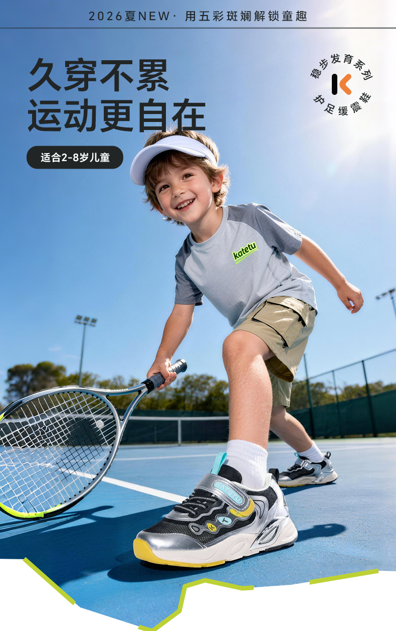 卡特兔儿童运动鞋男童2026年夏篮球鞋防滑耐磨网眼透气女童跑步鞋